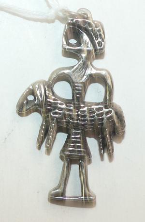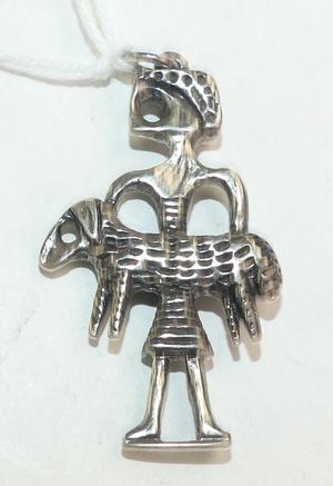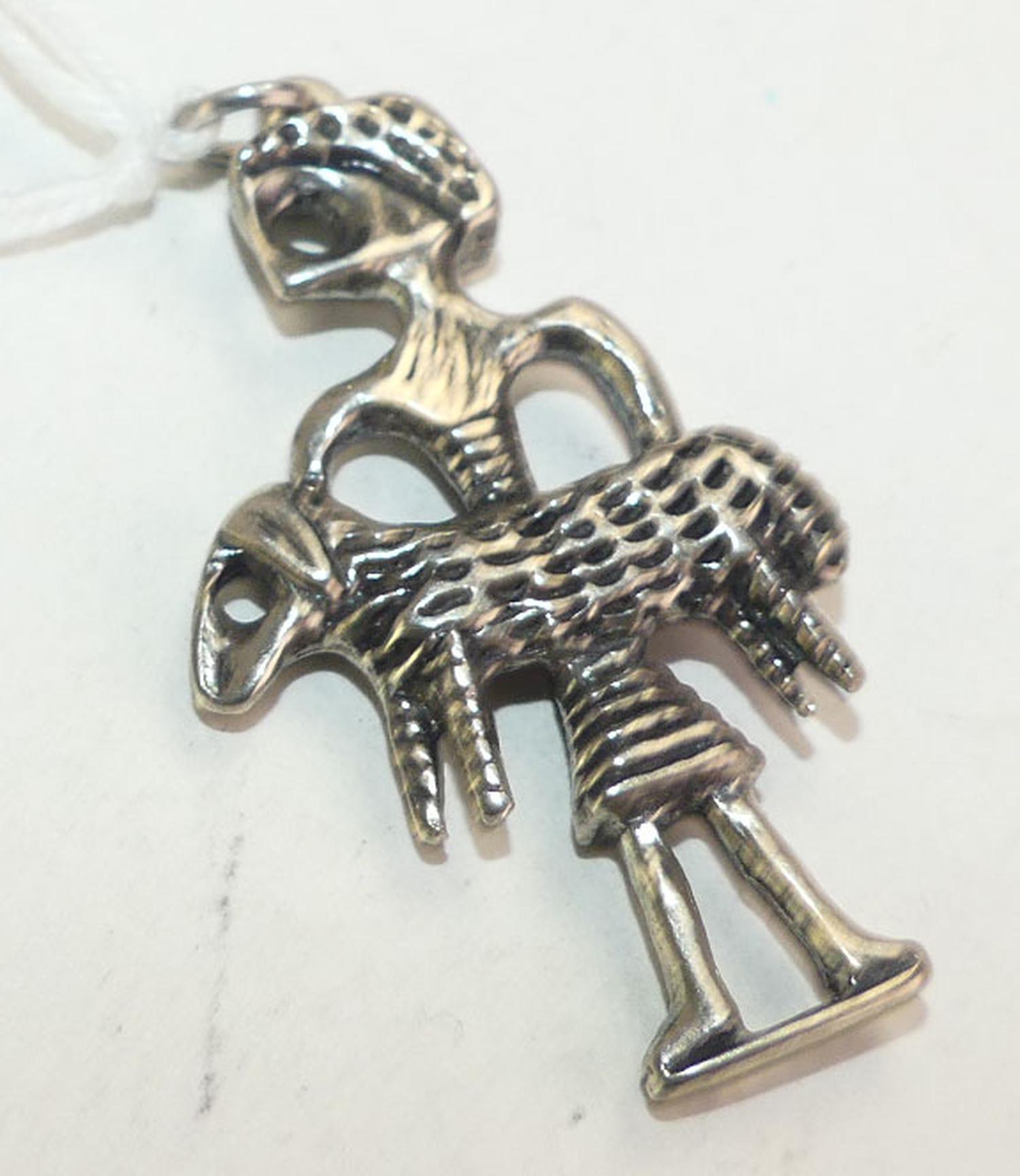 vintage aharon bezalel silver brutalist aries goat pendant, isreal, height 1 7/8"