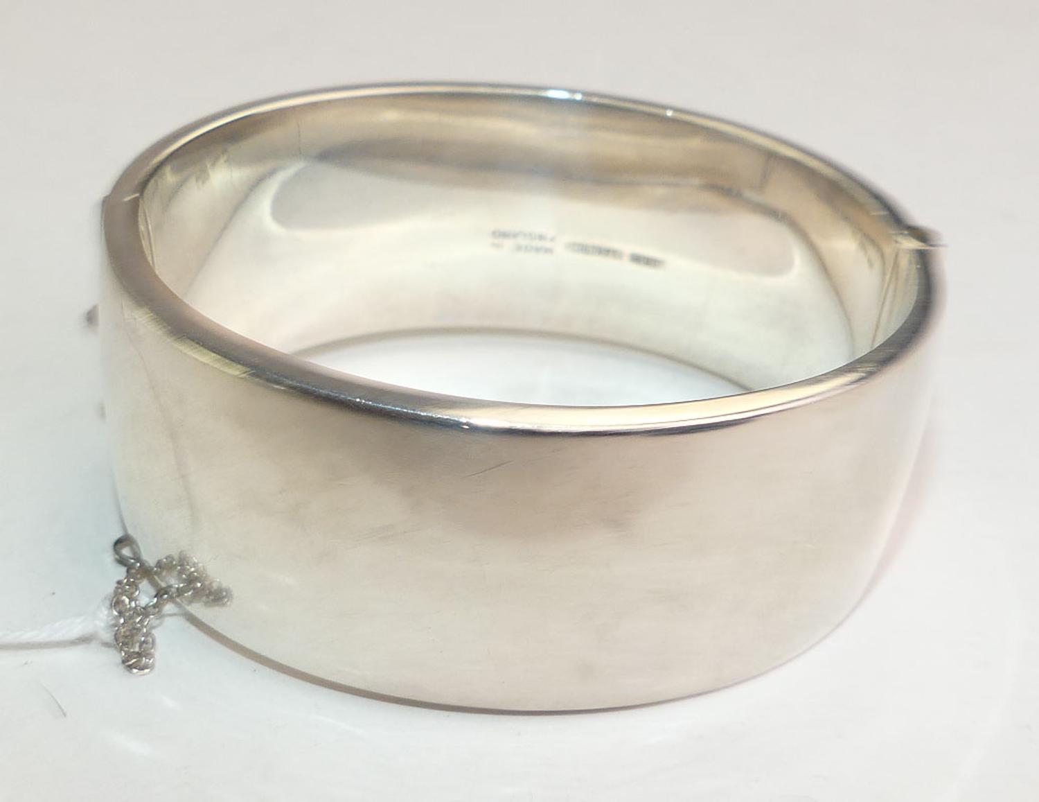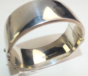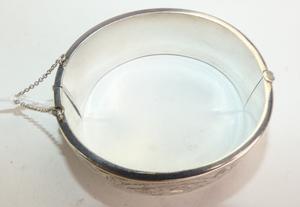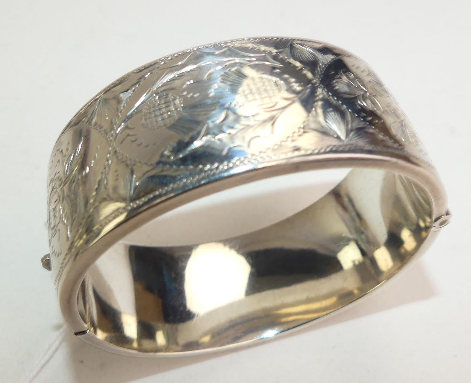 birks sterling silver thistle motif etched manchette bangle, 2 3/8" across, weighing approx 43.8 grams