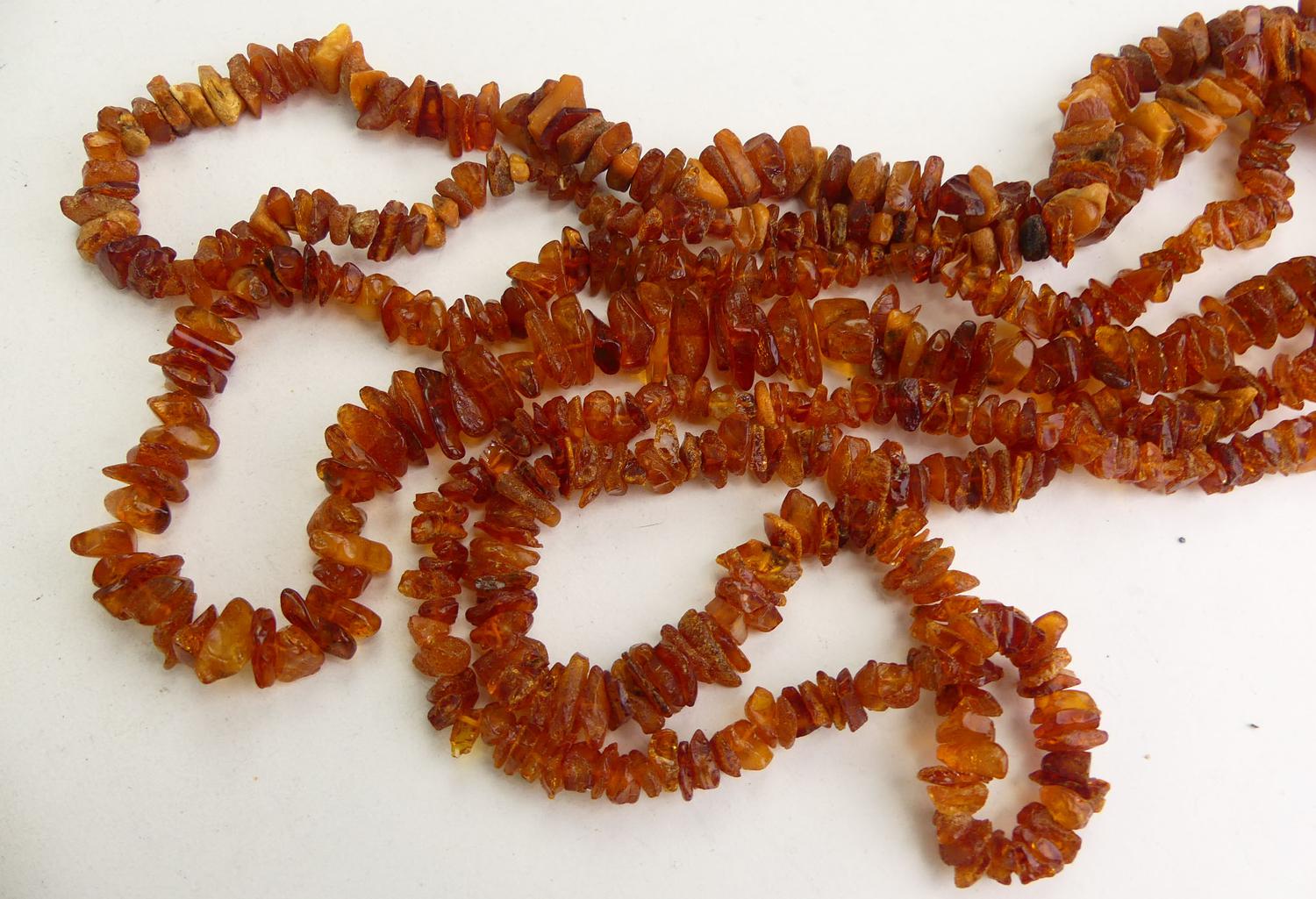 3 vintage amber tumbled bead necklacs, length 32" and 24"
