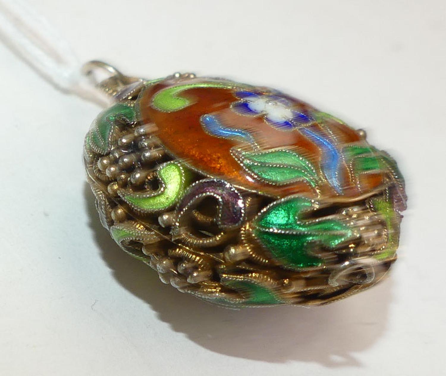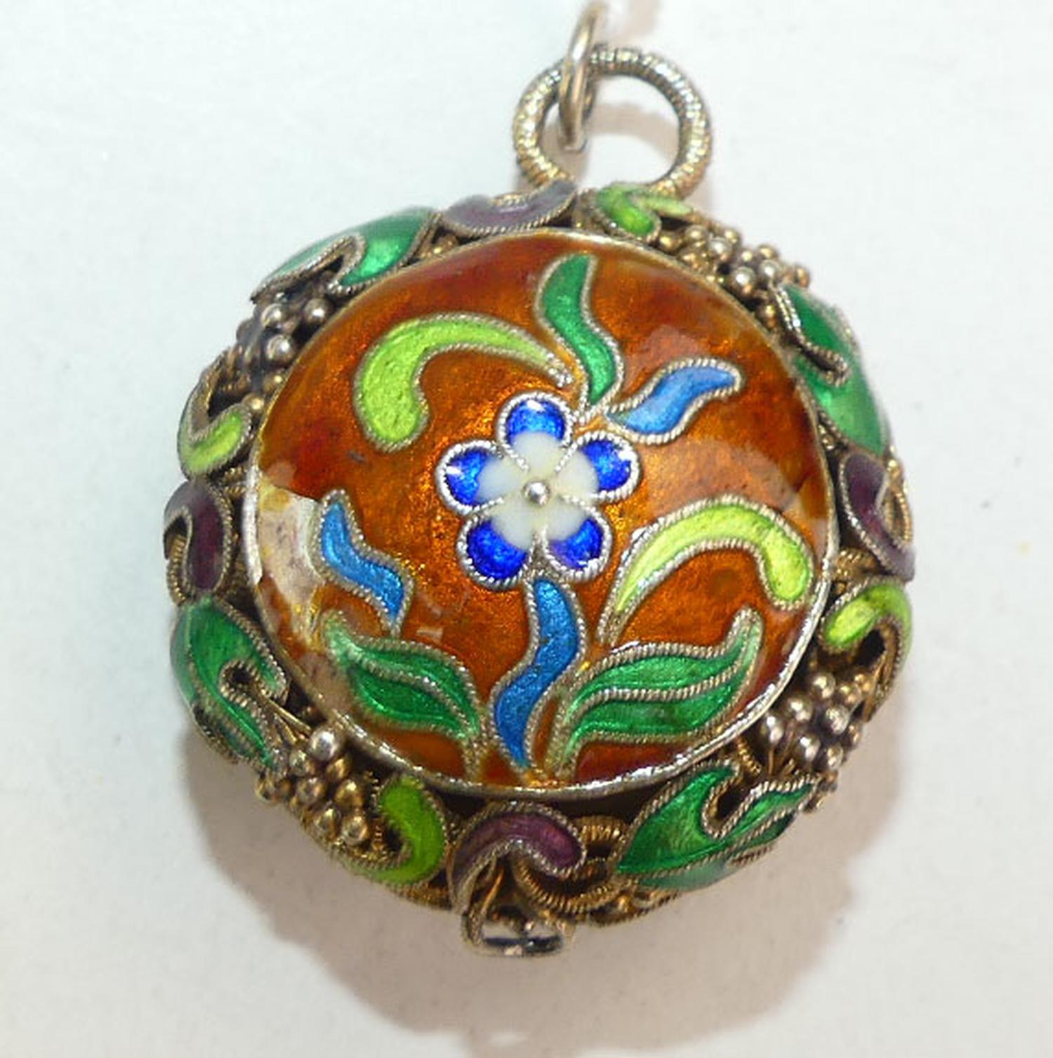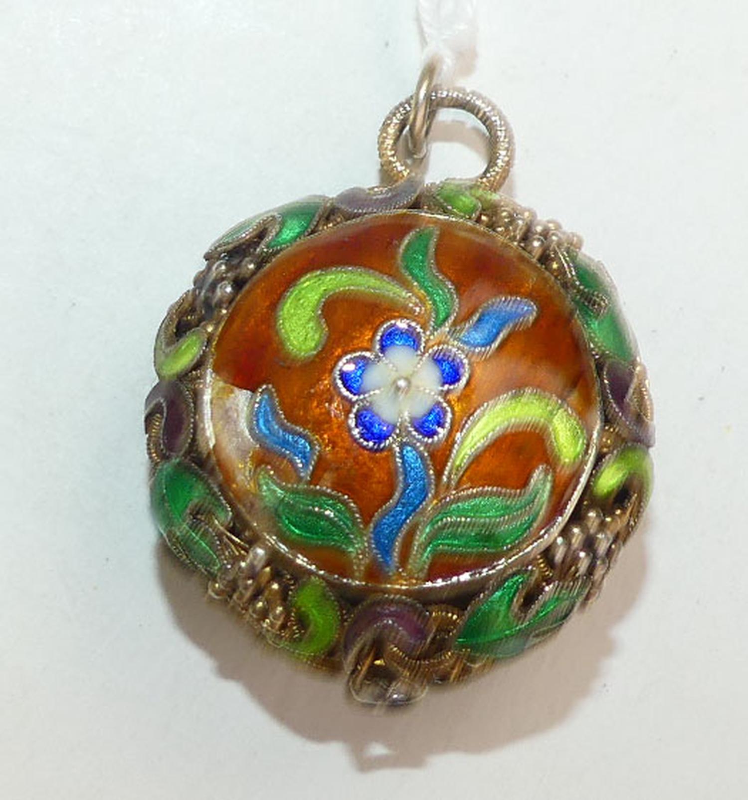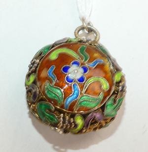 antique chinese enamel silver vermeil pendant, width 1 1/4"