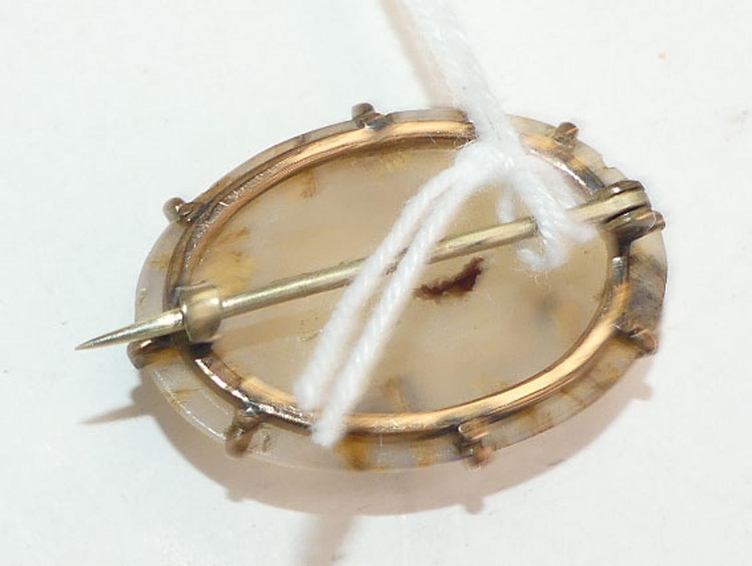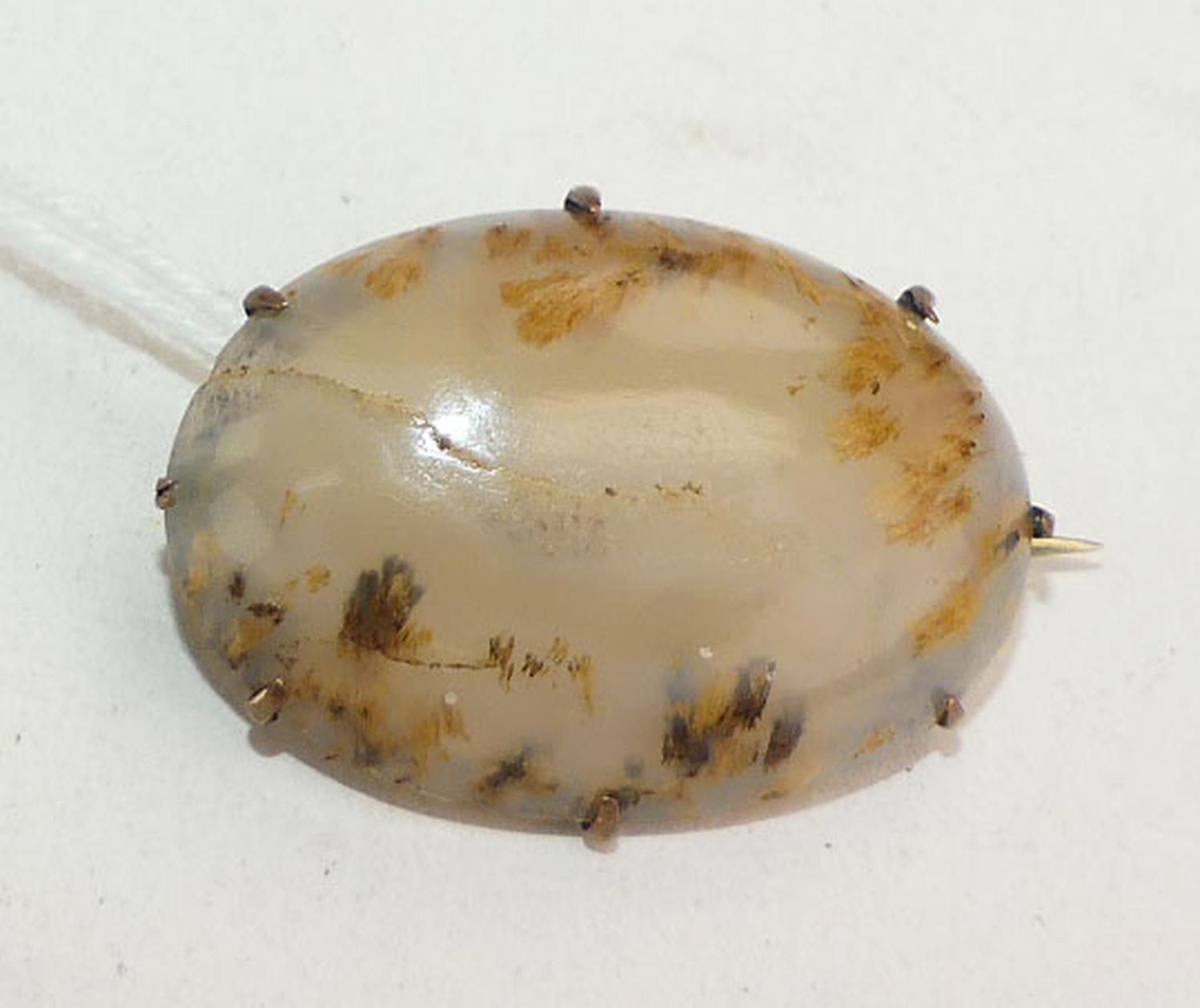 victorian gold filled moss agate brooch, width 1 1/4"