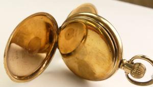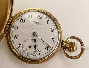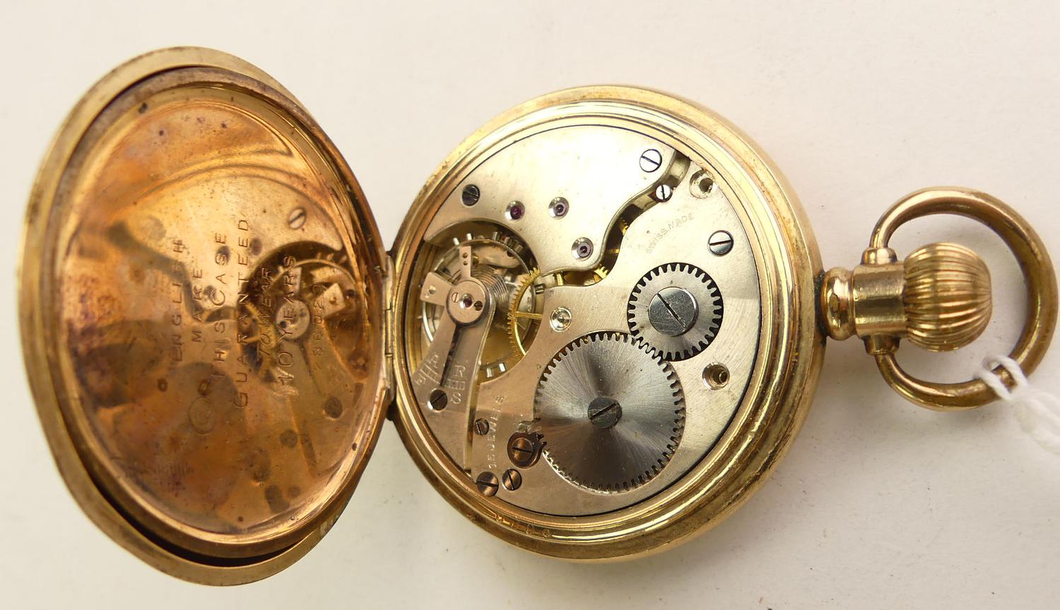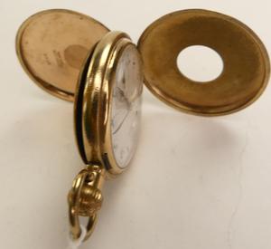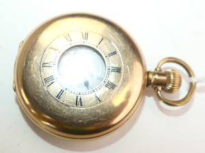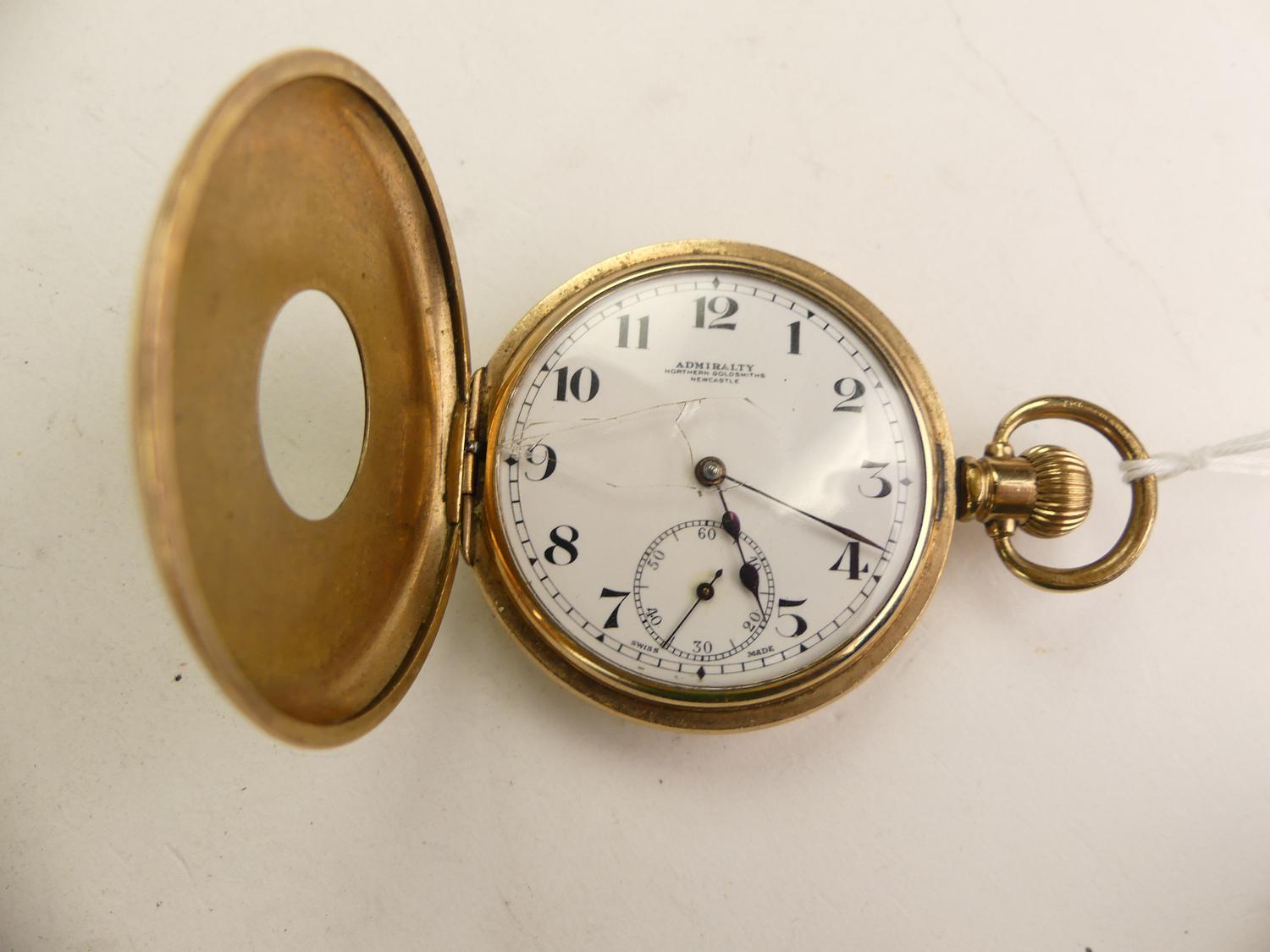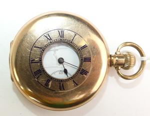 half huntercase gold filled enamel pocketwatch, admiralty goldsmiths, newcastle, case #286023, 15 jewel