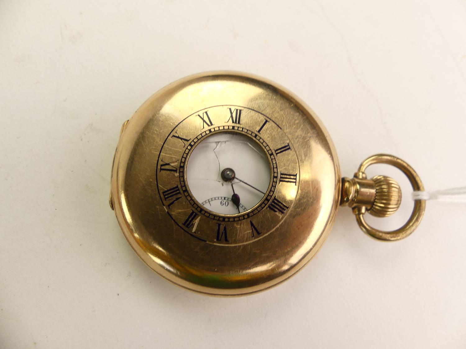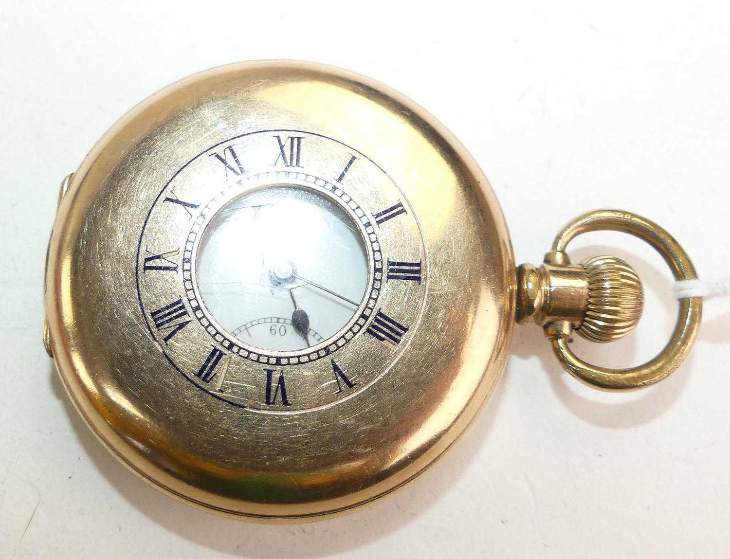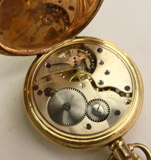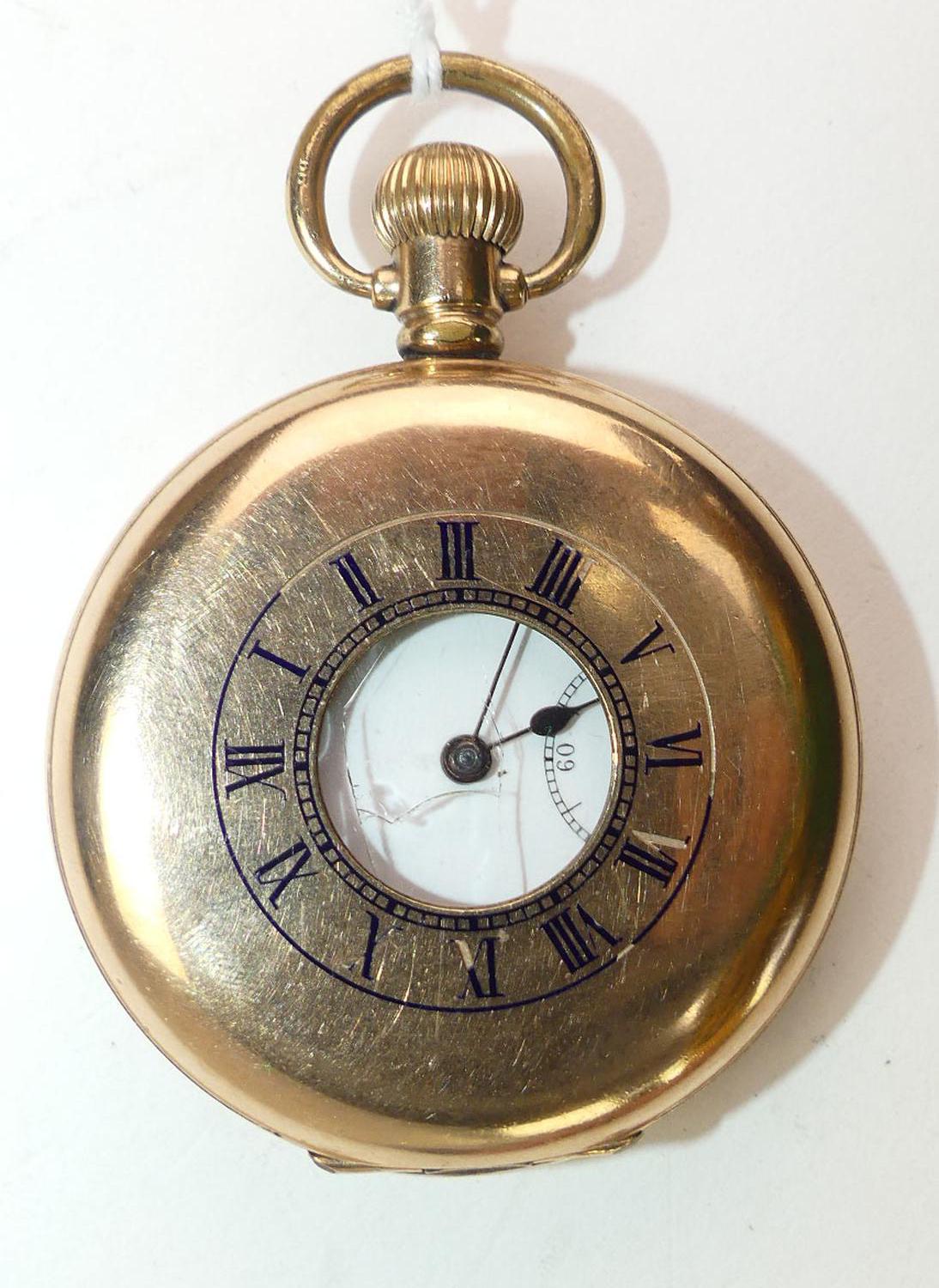 half huntercase gold filled enamel pocketwatch, admiralty goldsmiths, newcastle, case #286023, 15 jewel