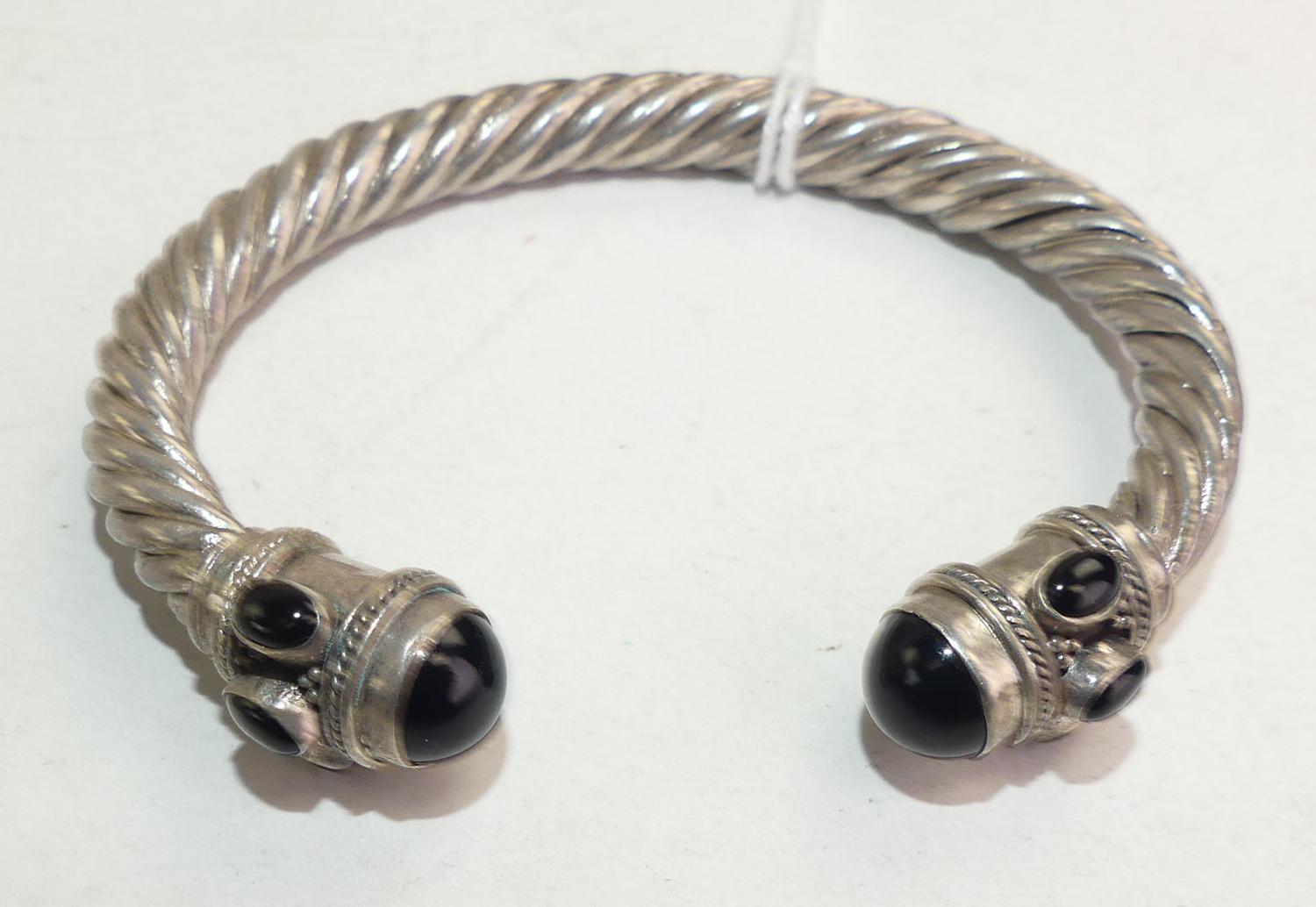 vintage sterling silver onyx cable style cuff bracelet, weighing approx 35 grams