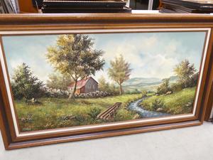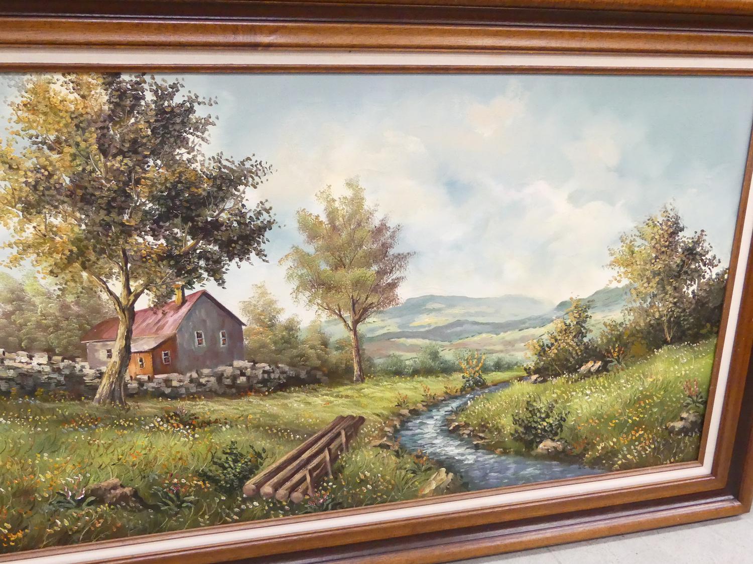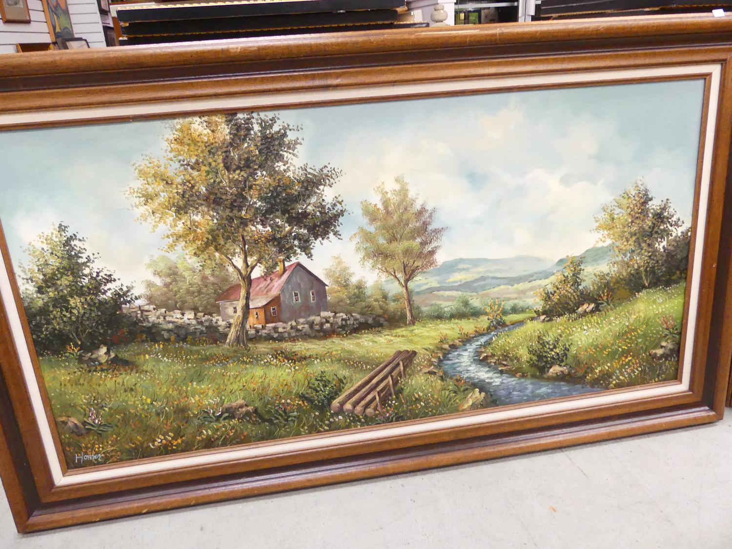 large decorative oil painting signed homer, 32" x 56"