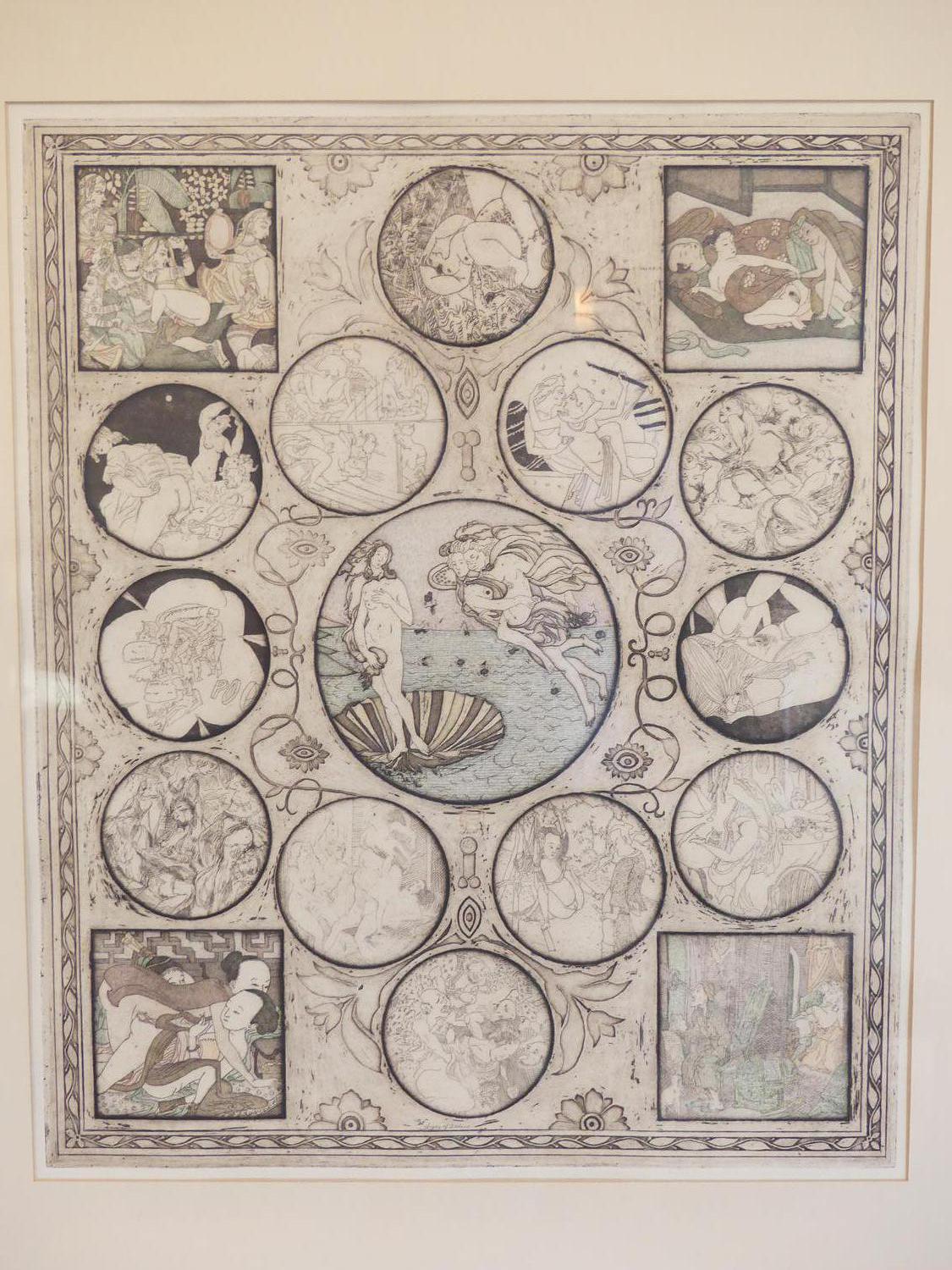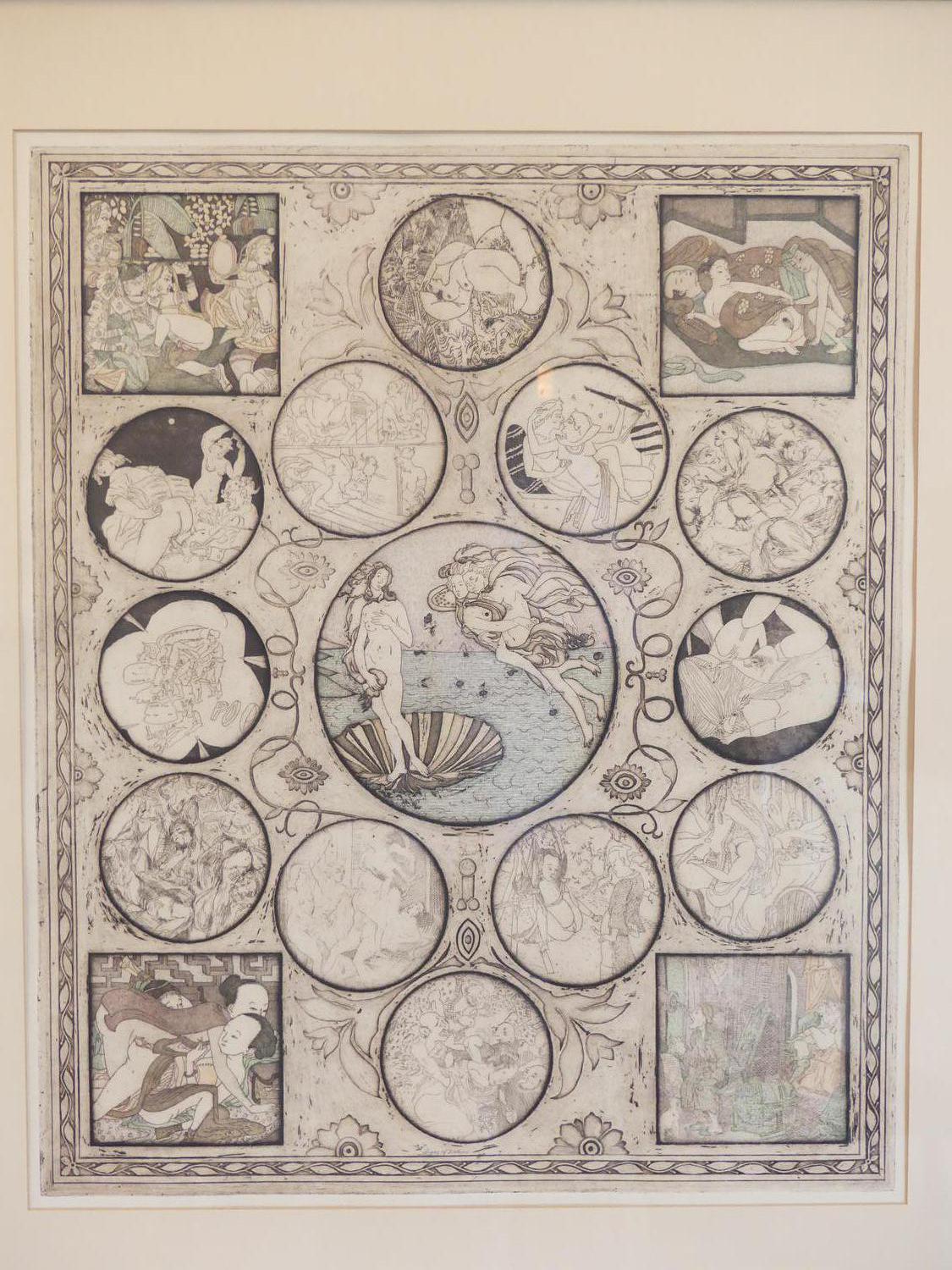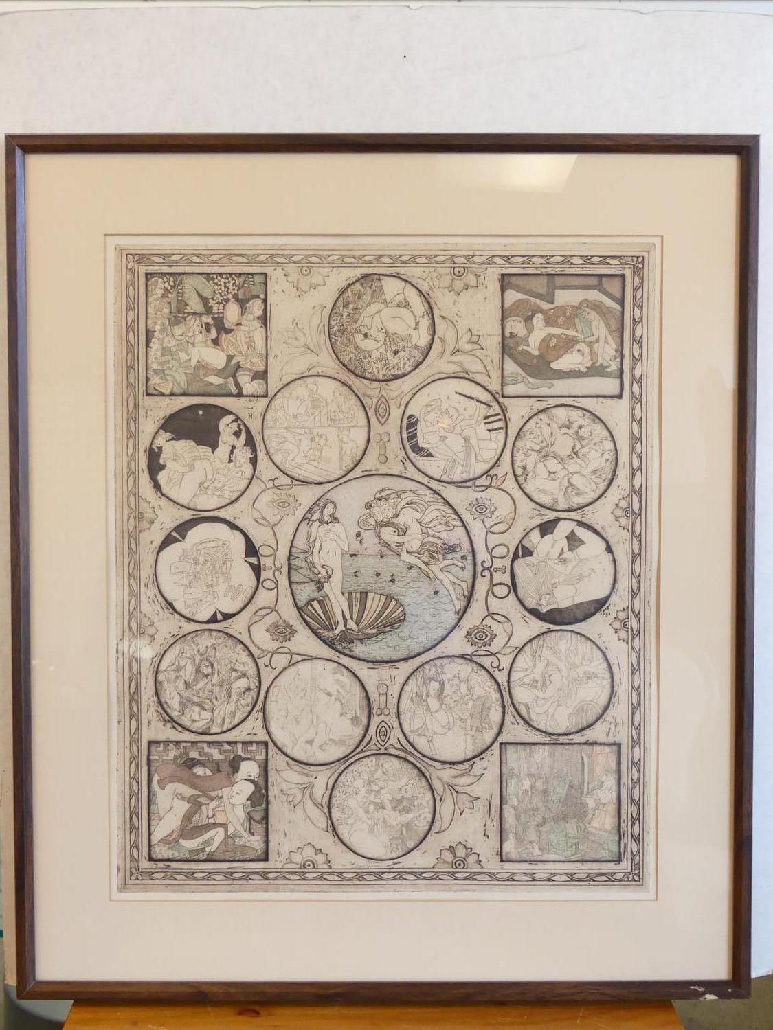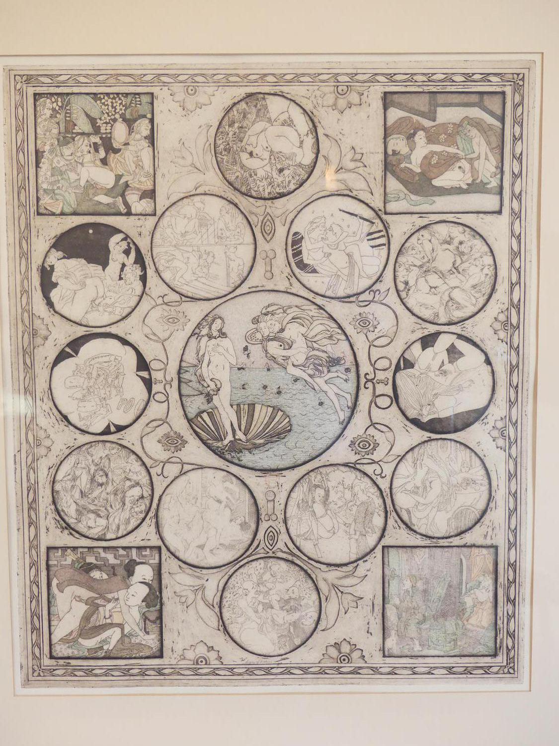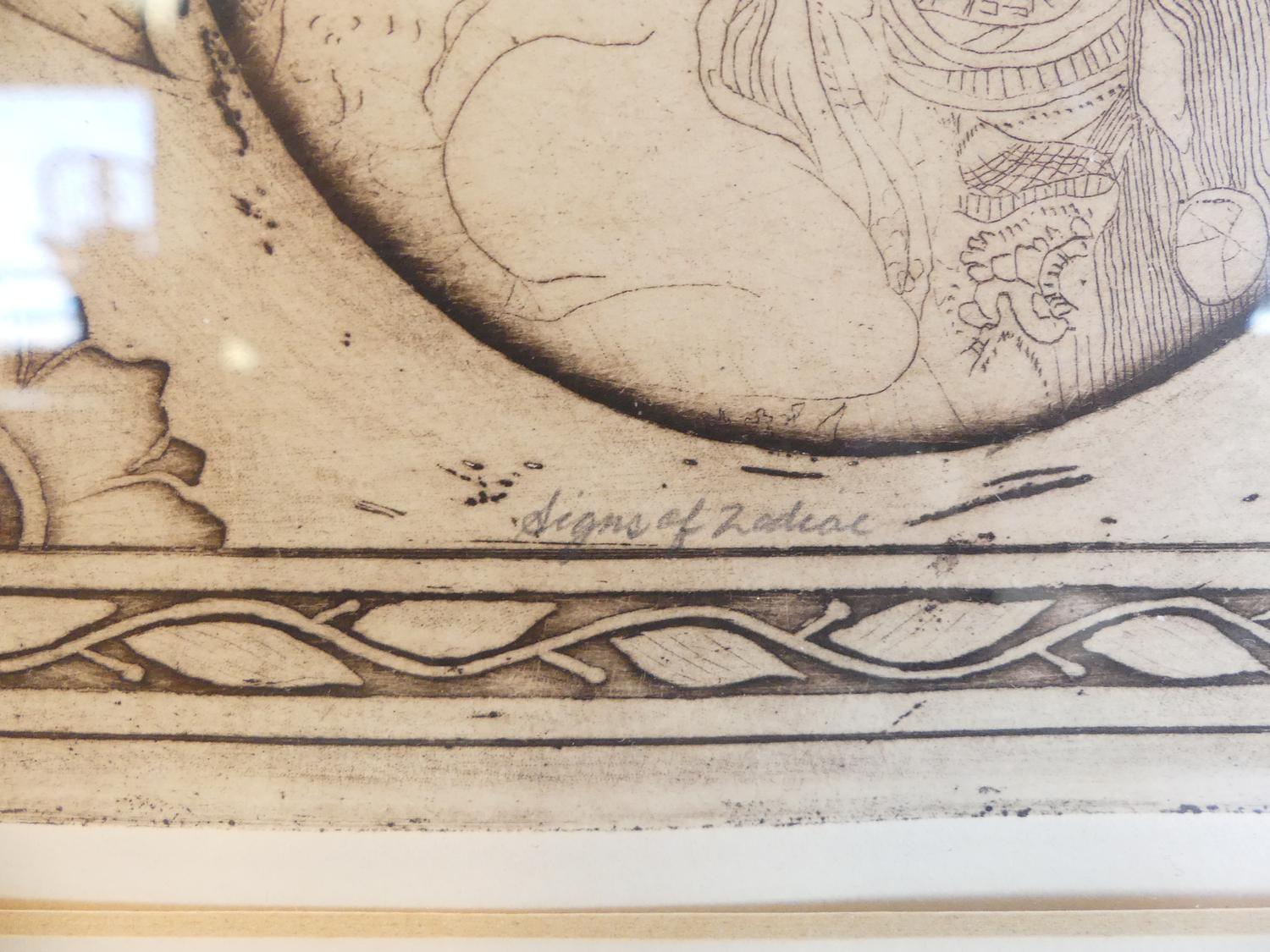 noboru sawai (b.1931), woodblock print, 24" x 20", "signs of zodiac"