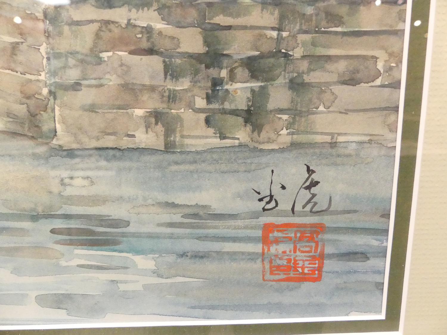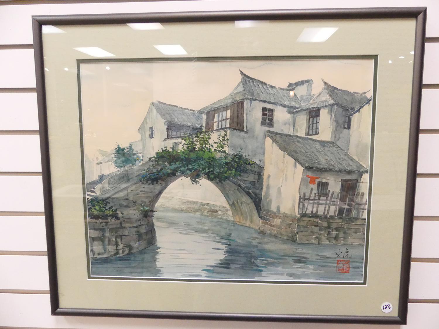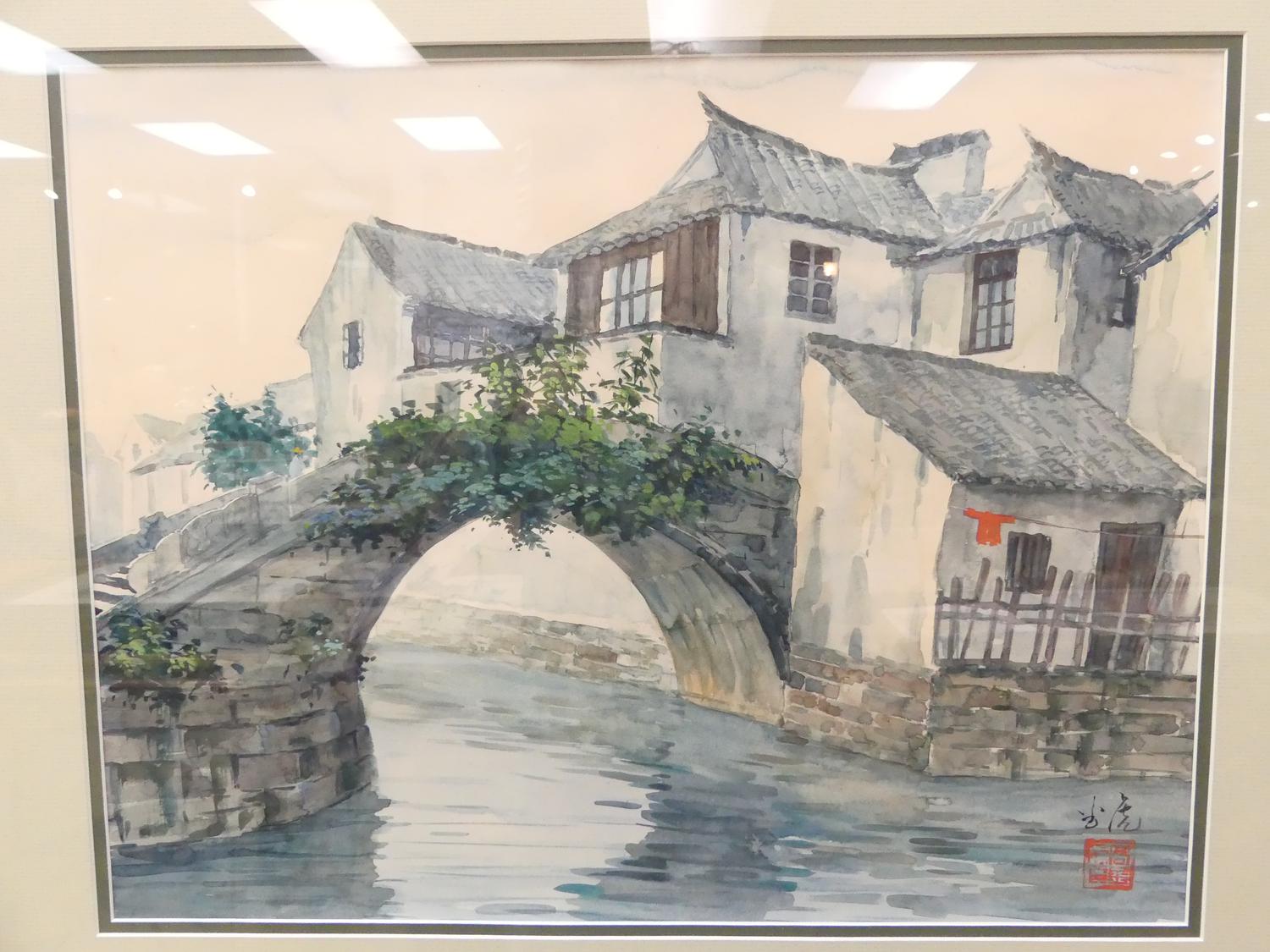 20th century chinese school watercolour, 15" x 19", "stone bridge"