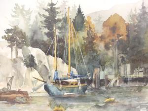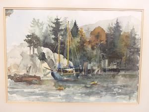 unsigned watercolour, 13 1/2" x 19 1/2", "quiet waters"