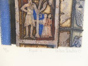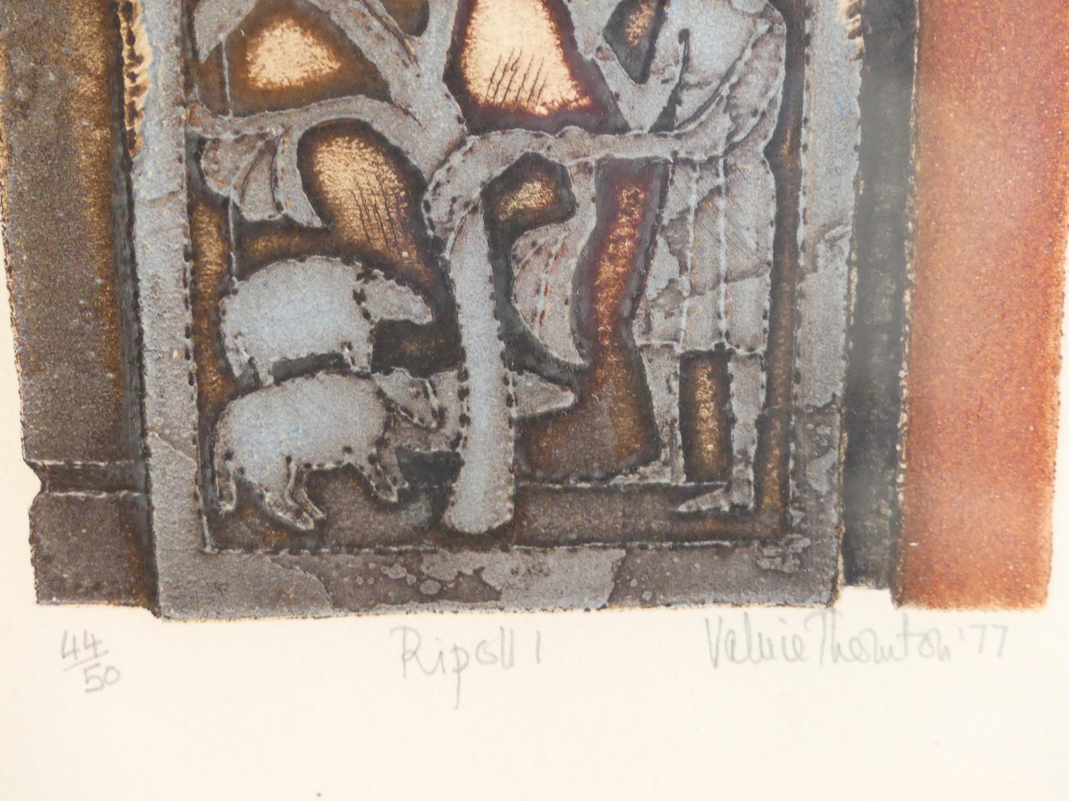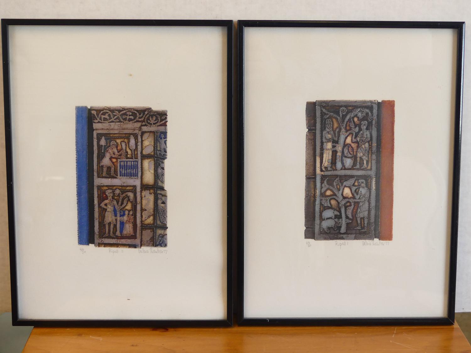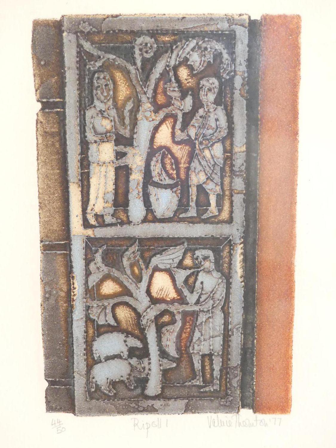 valerie thornton (1931-1991), two etchings #44/50, dated 1977, 8" x 4 1/2", "ripoll 1" & "ripoll 2"