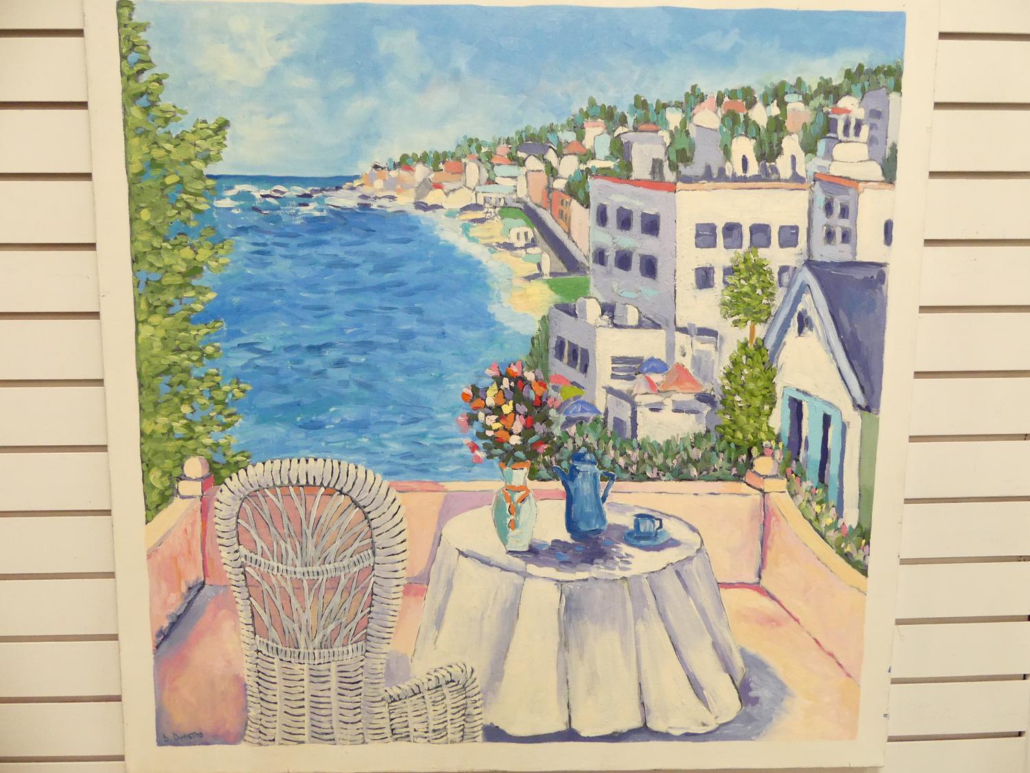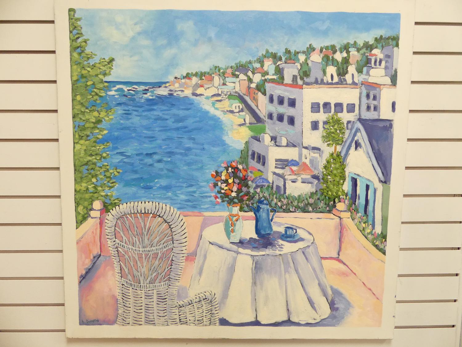 delores dykstra, oil on canvas, 36" x 36", "mediterranean view"