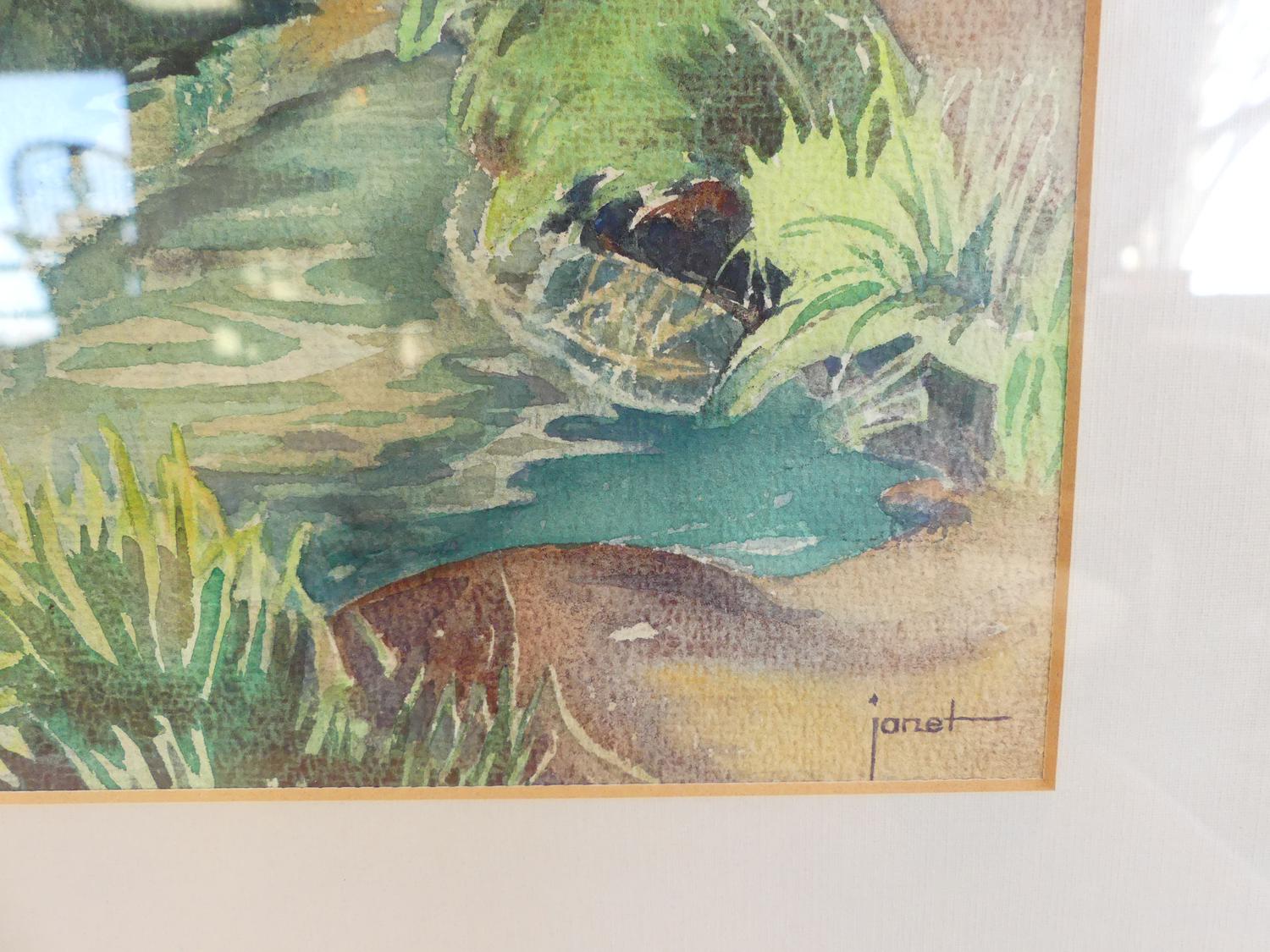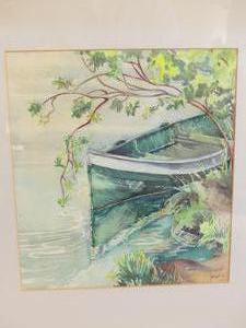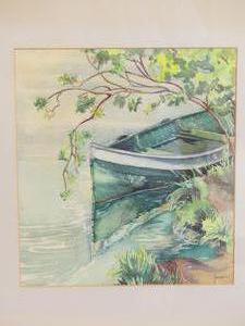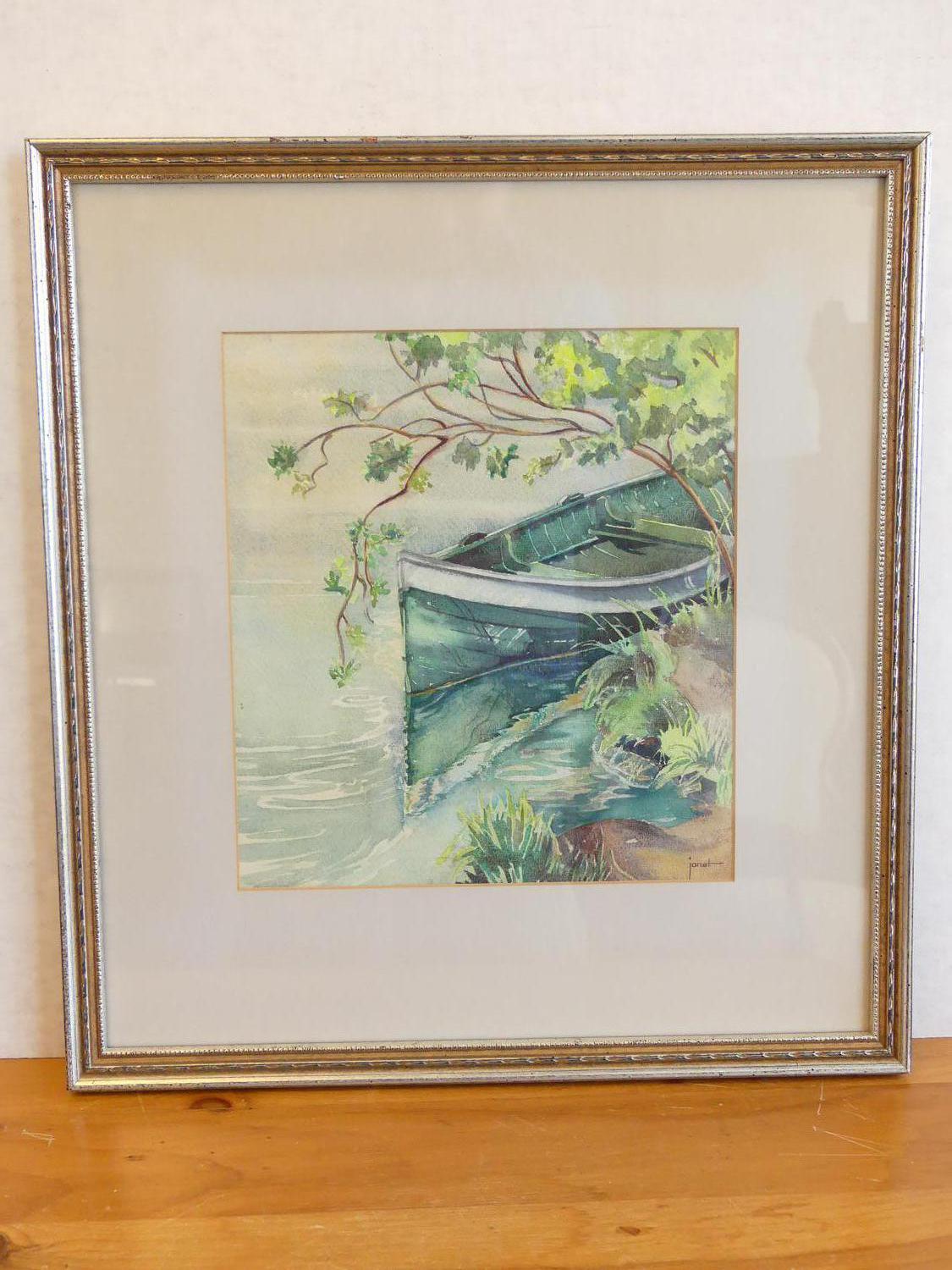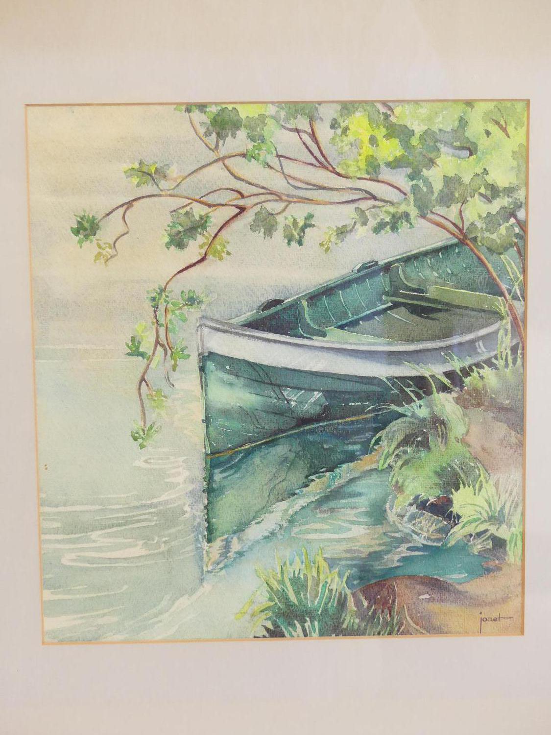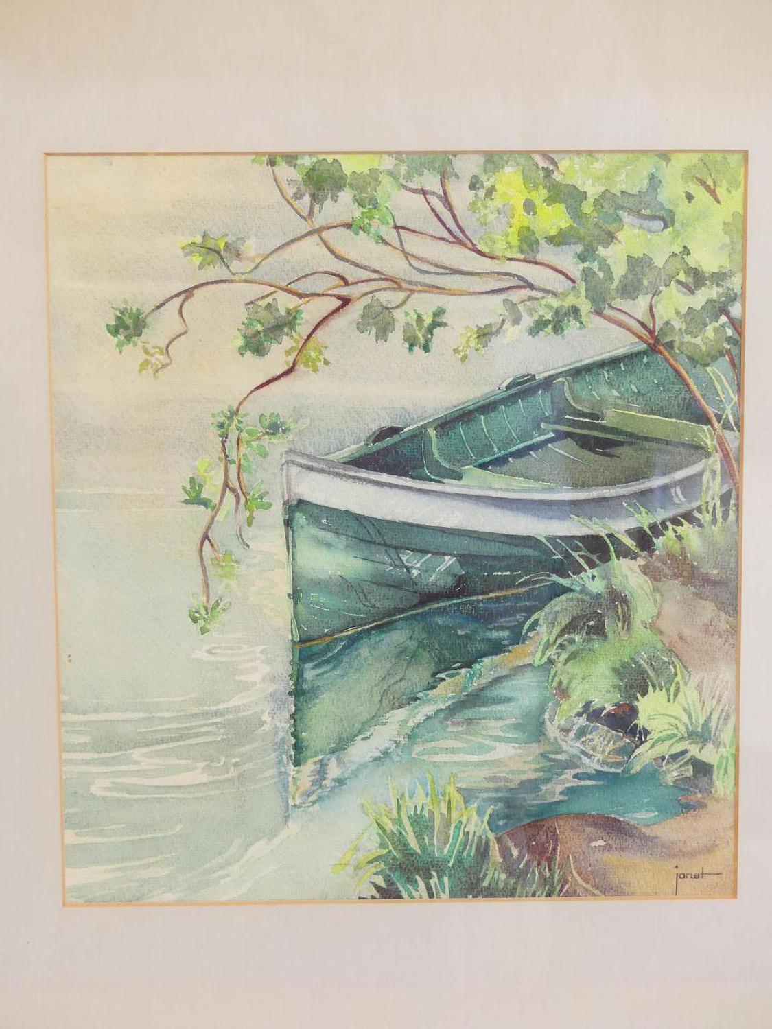 janet holly middleton (1922-2018), watercolour, 11" x 10", "untitled - green canoe"
