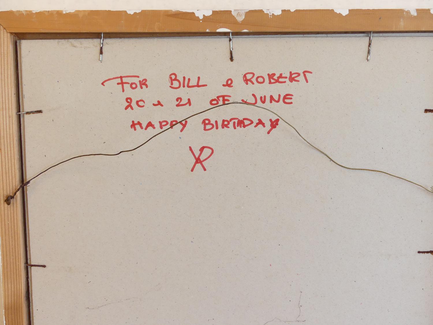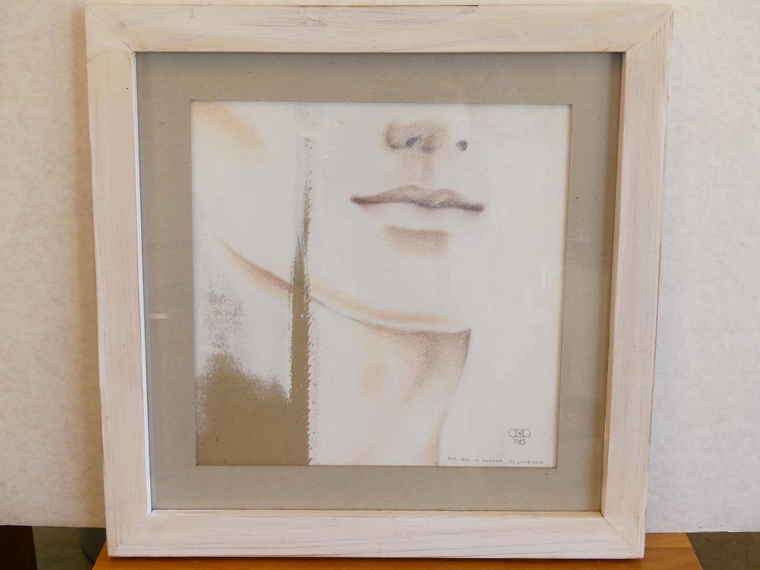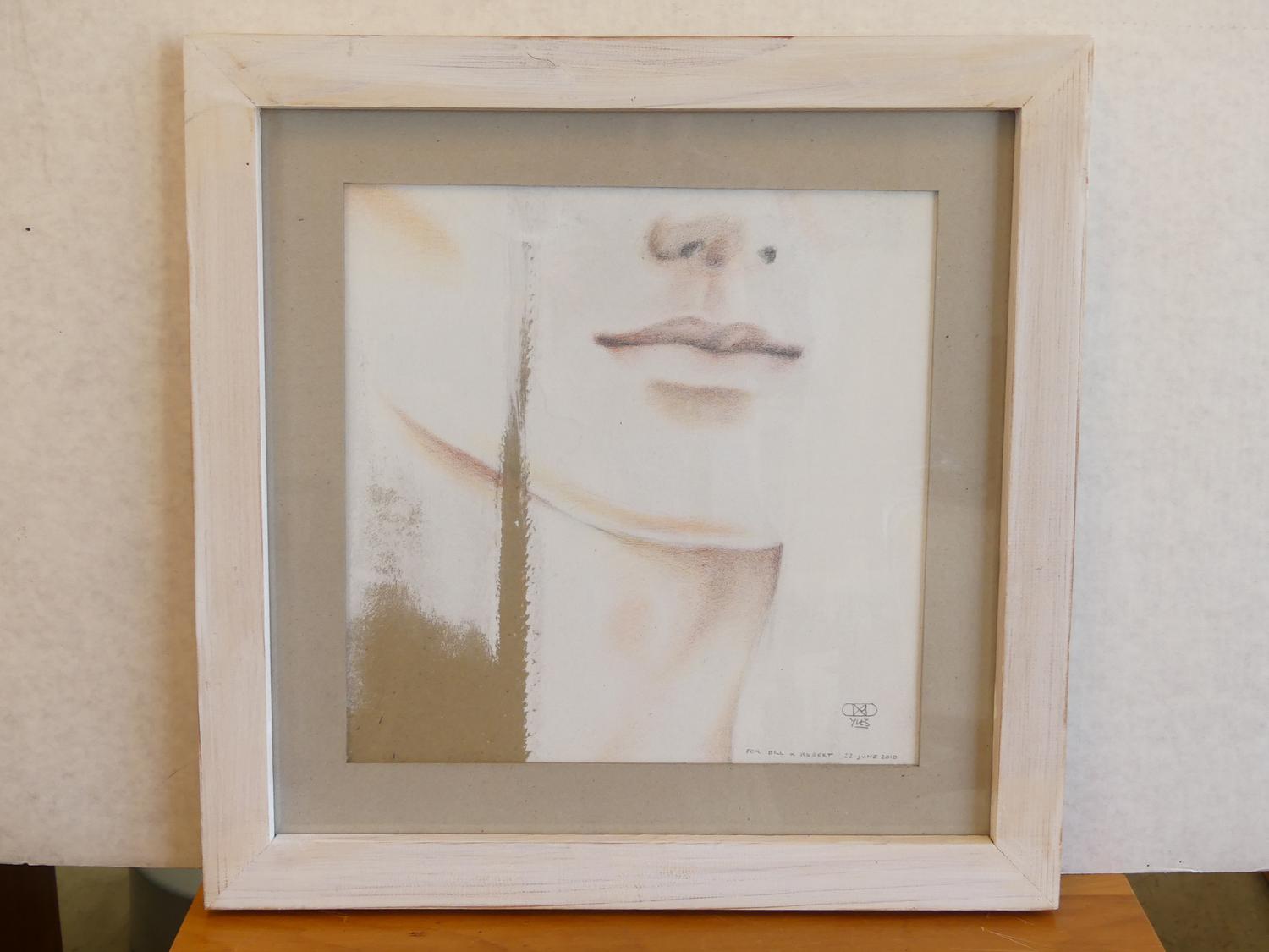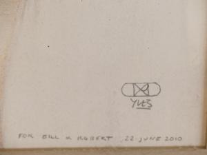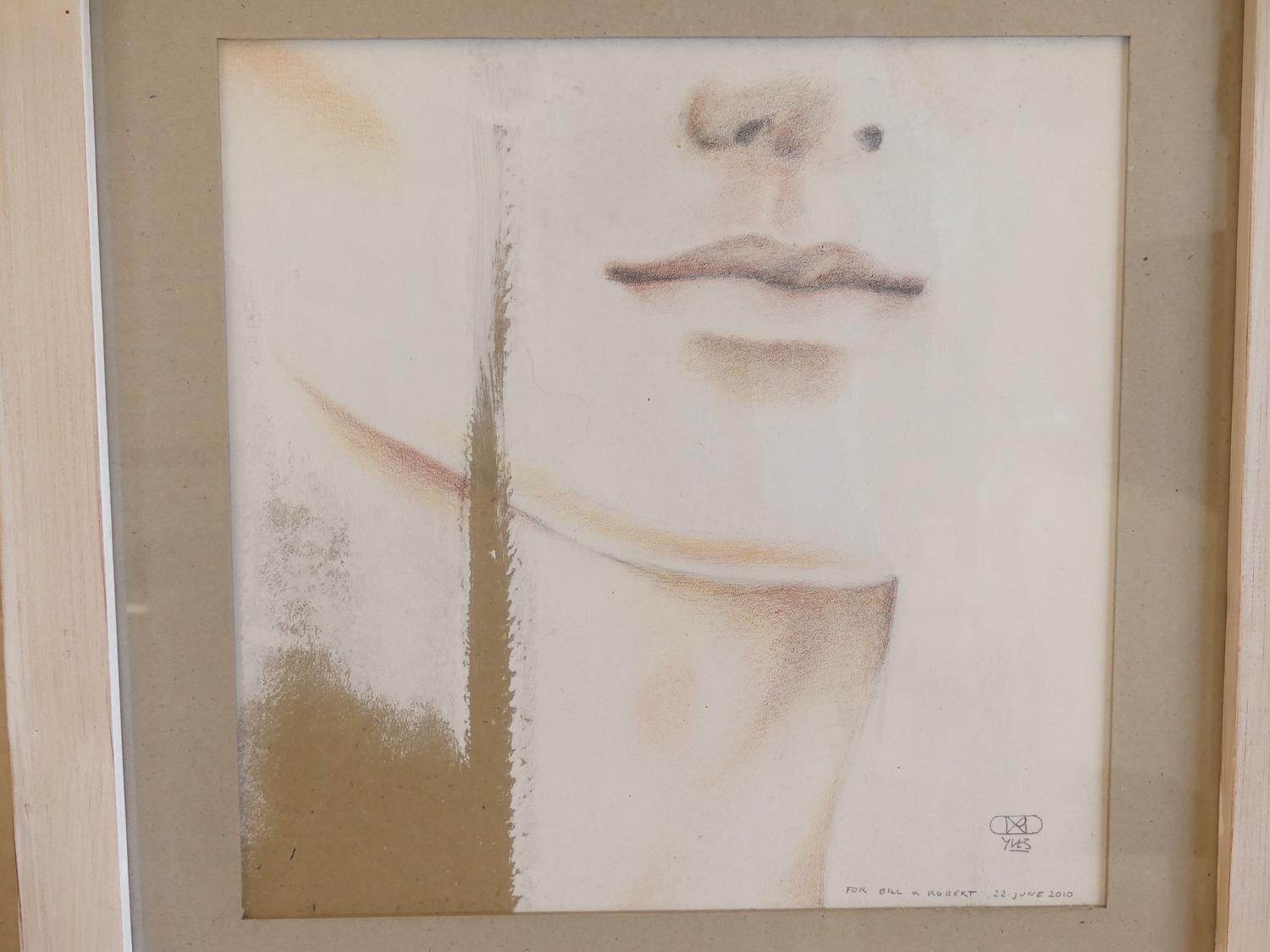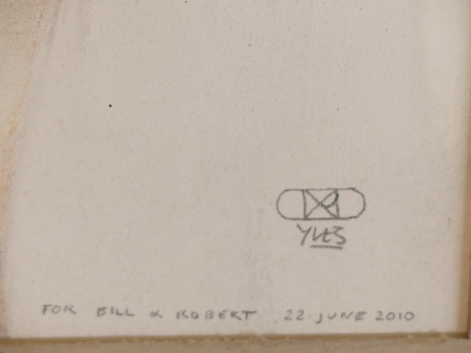 yves vial (b.1954), mixed media drawing on paper, 13" x 13", "for bill & robert"
