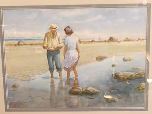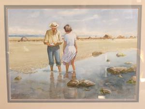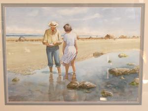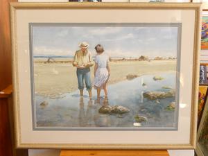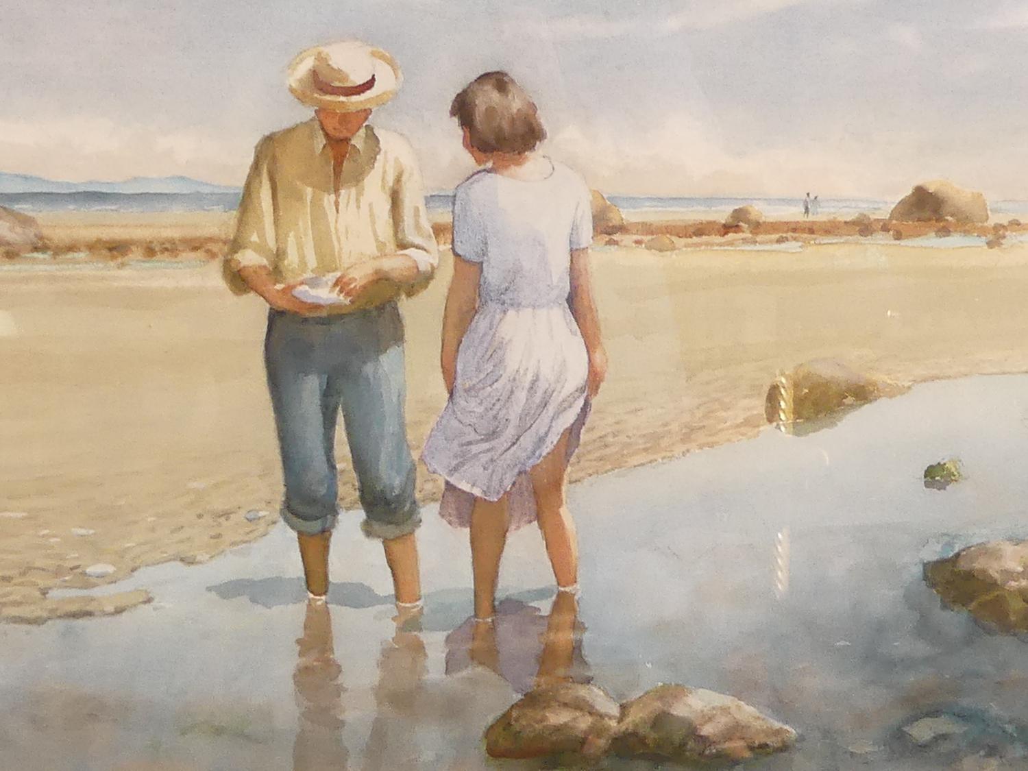 sid barron (1917-2006), watercolour, 21" x 29", "figures on beach"