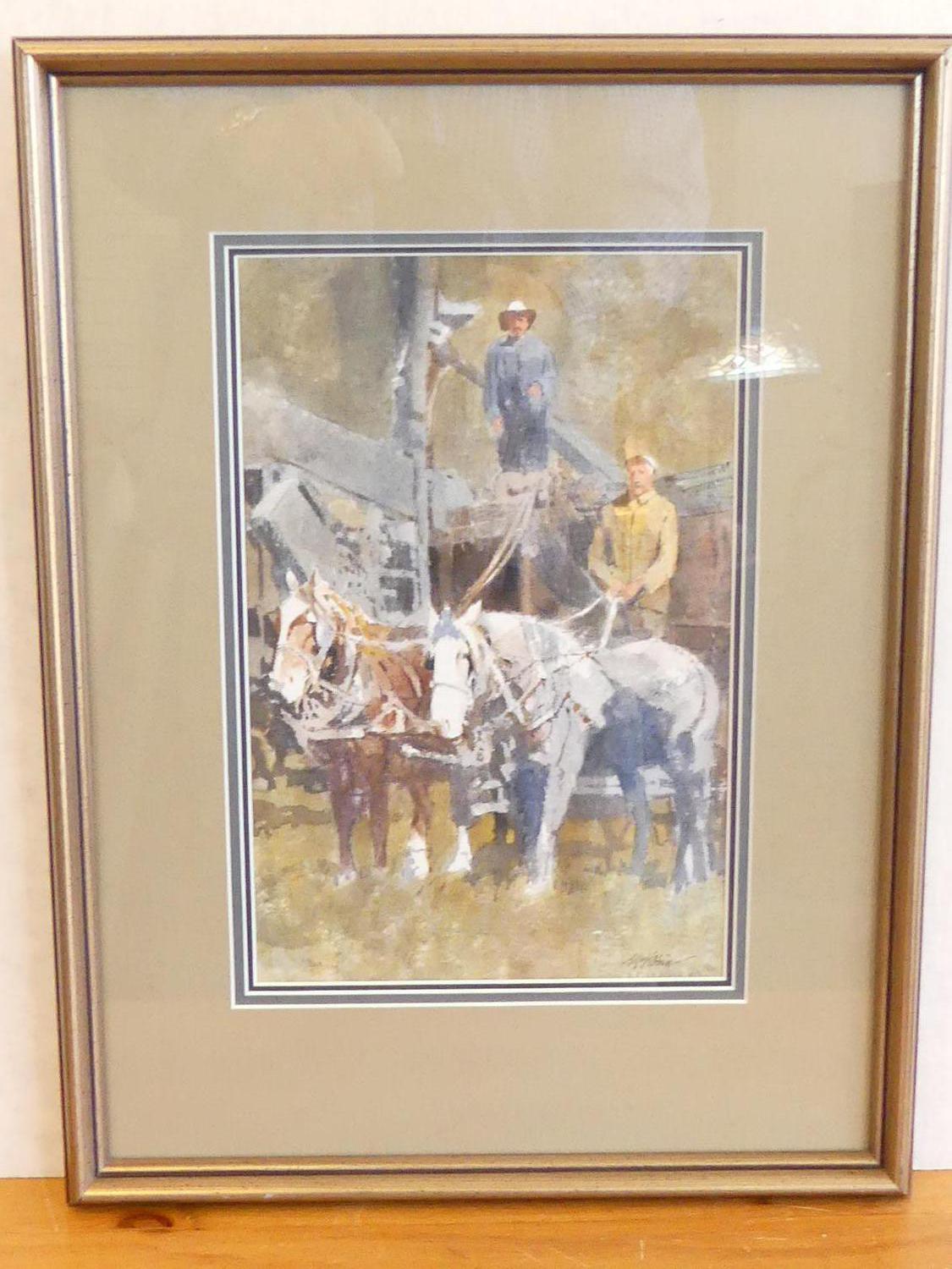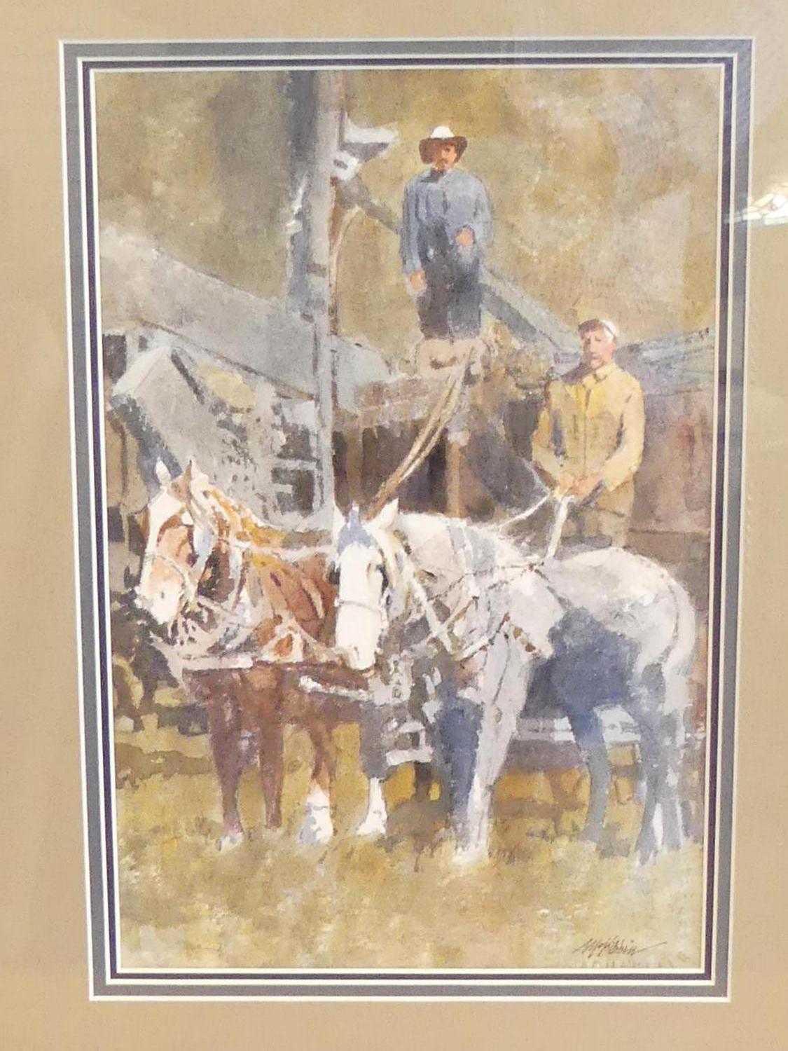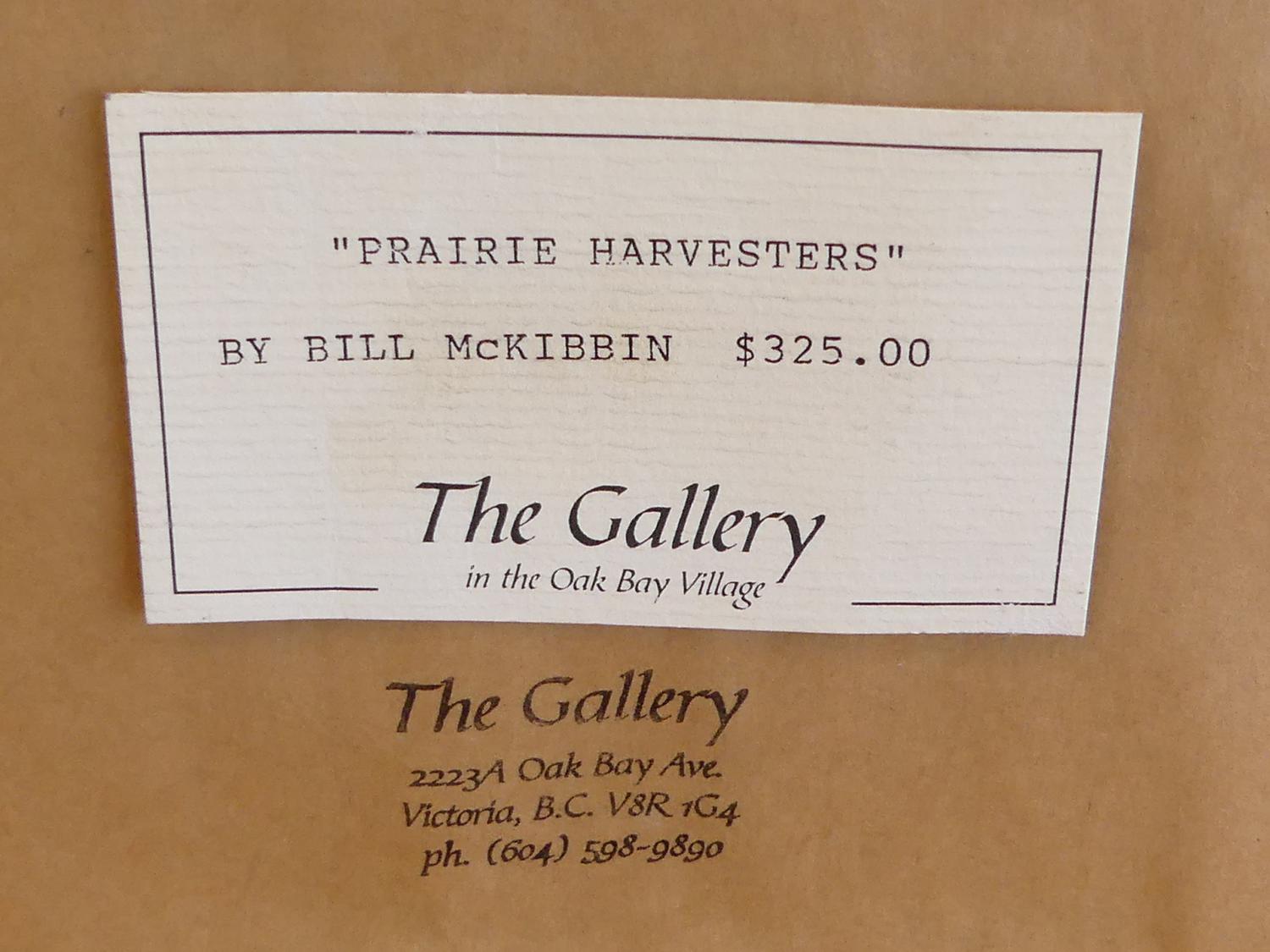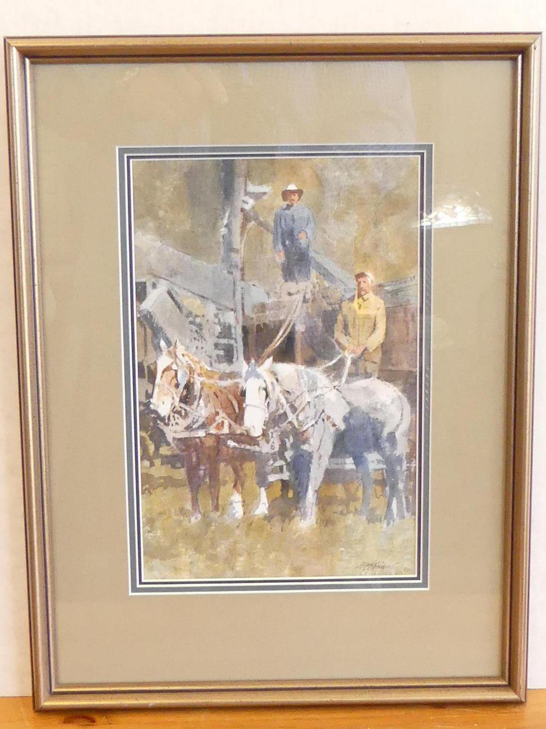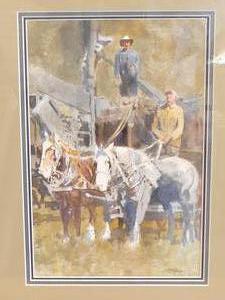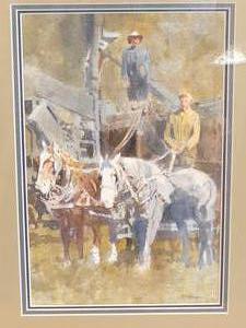 william (bill) mckibbin (b.1932), watercolour, 11" x 7", "prairie harvesters"