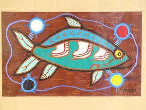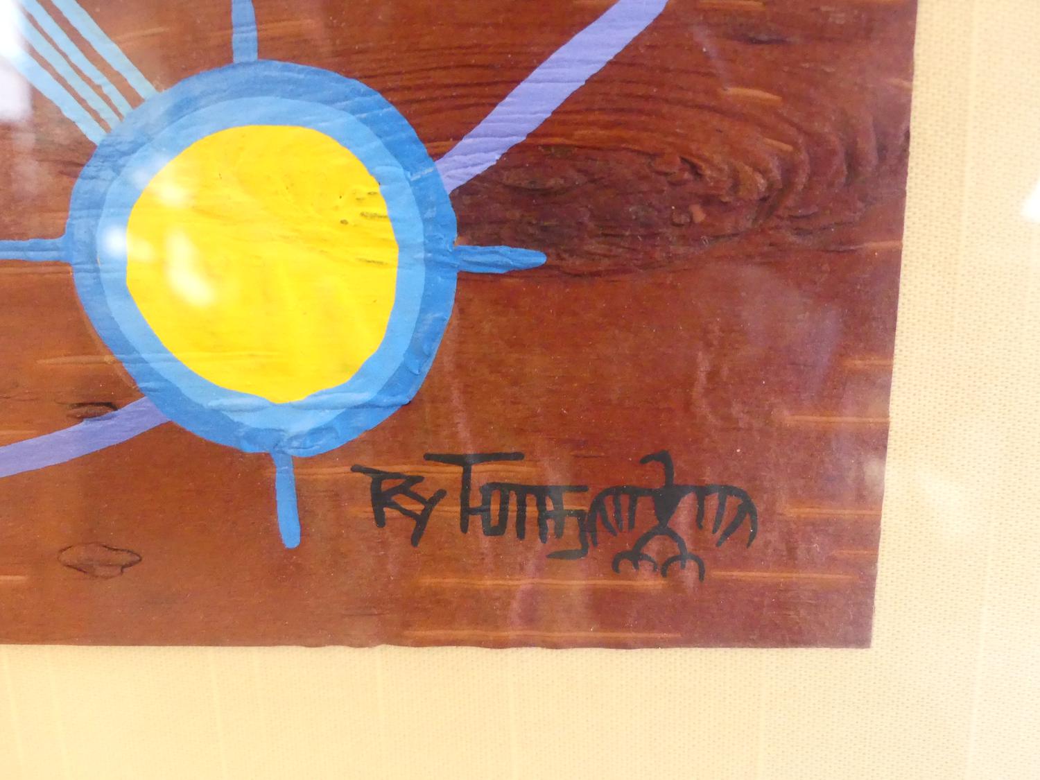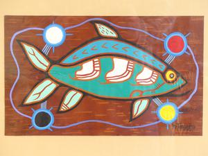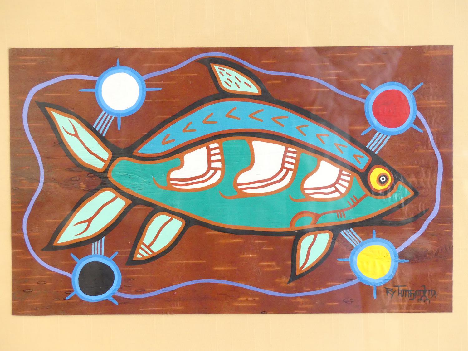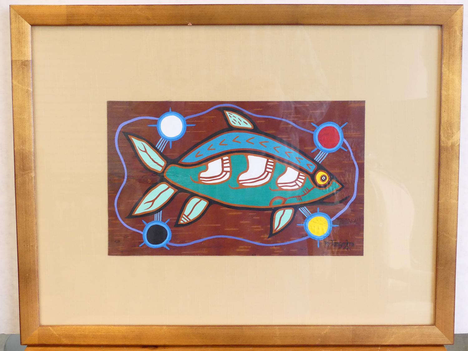 roy thomas (1949-2004), oil on birch bark, 8" x 13 1/2", "untitled - fish"