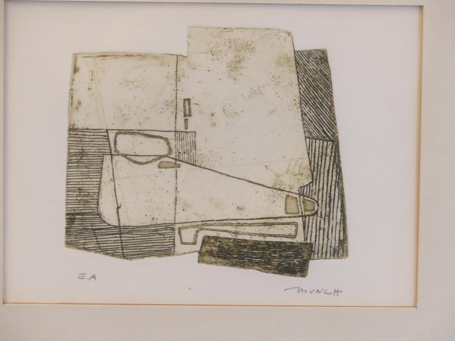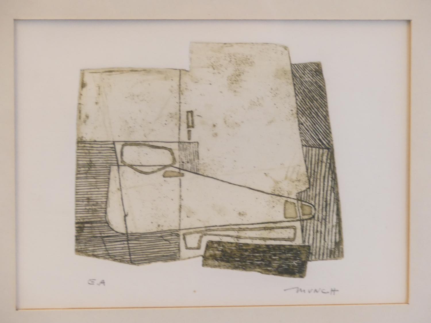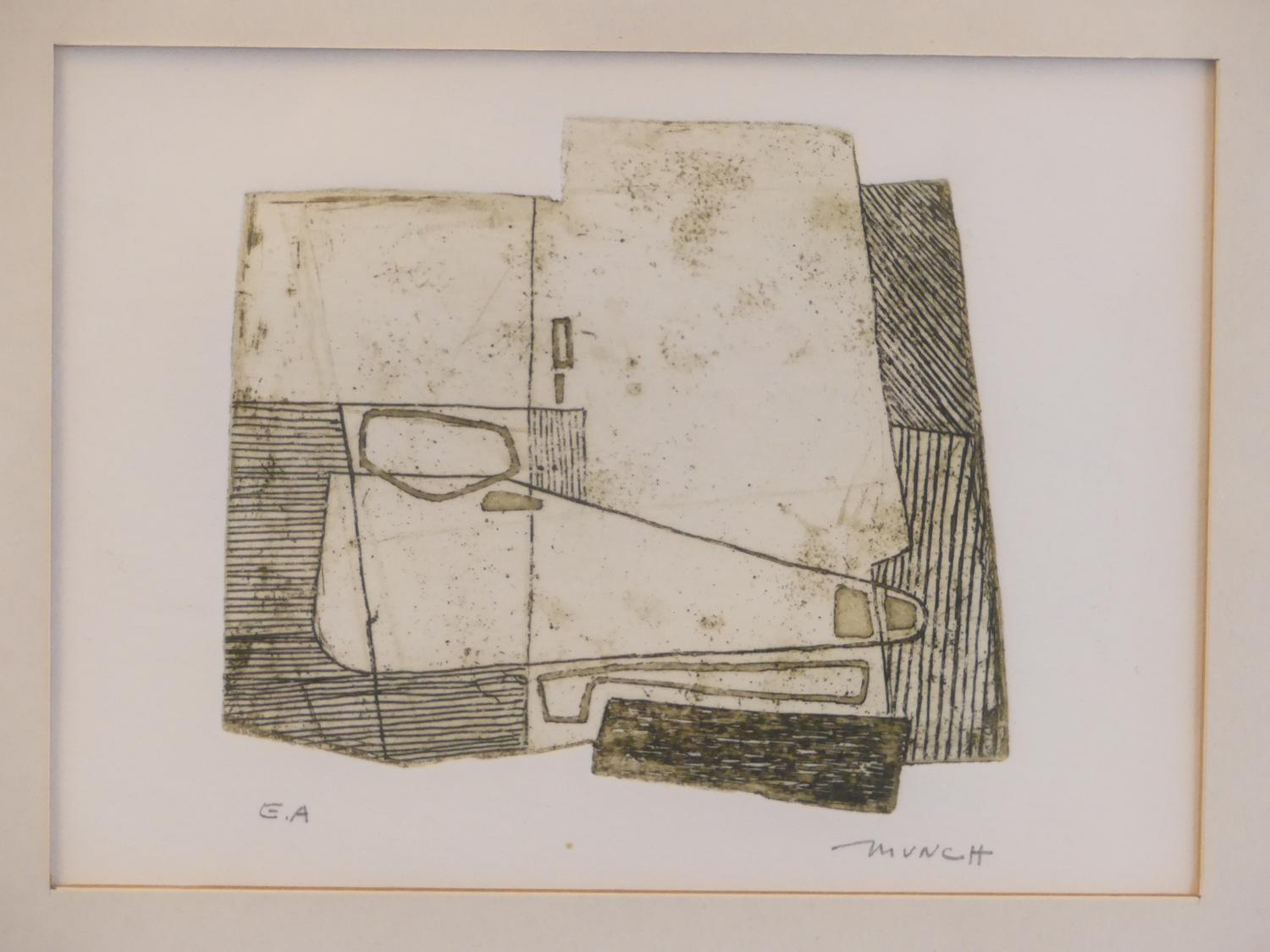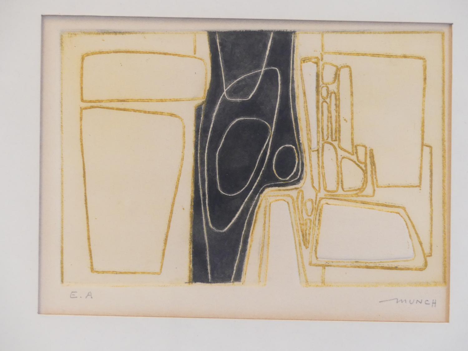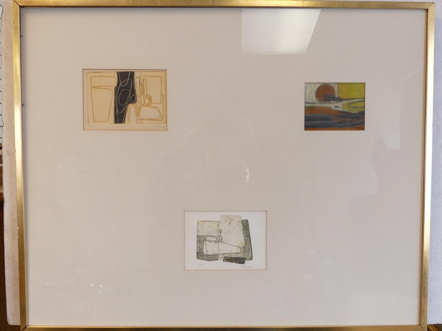 bernard munch (1921-2009), triptych of prints, 4 1/2" x 6", "untitled abstract"