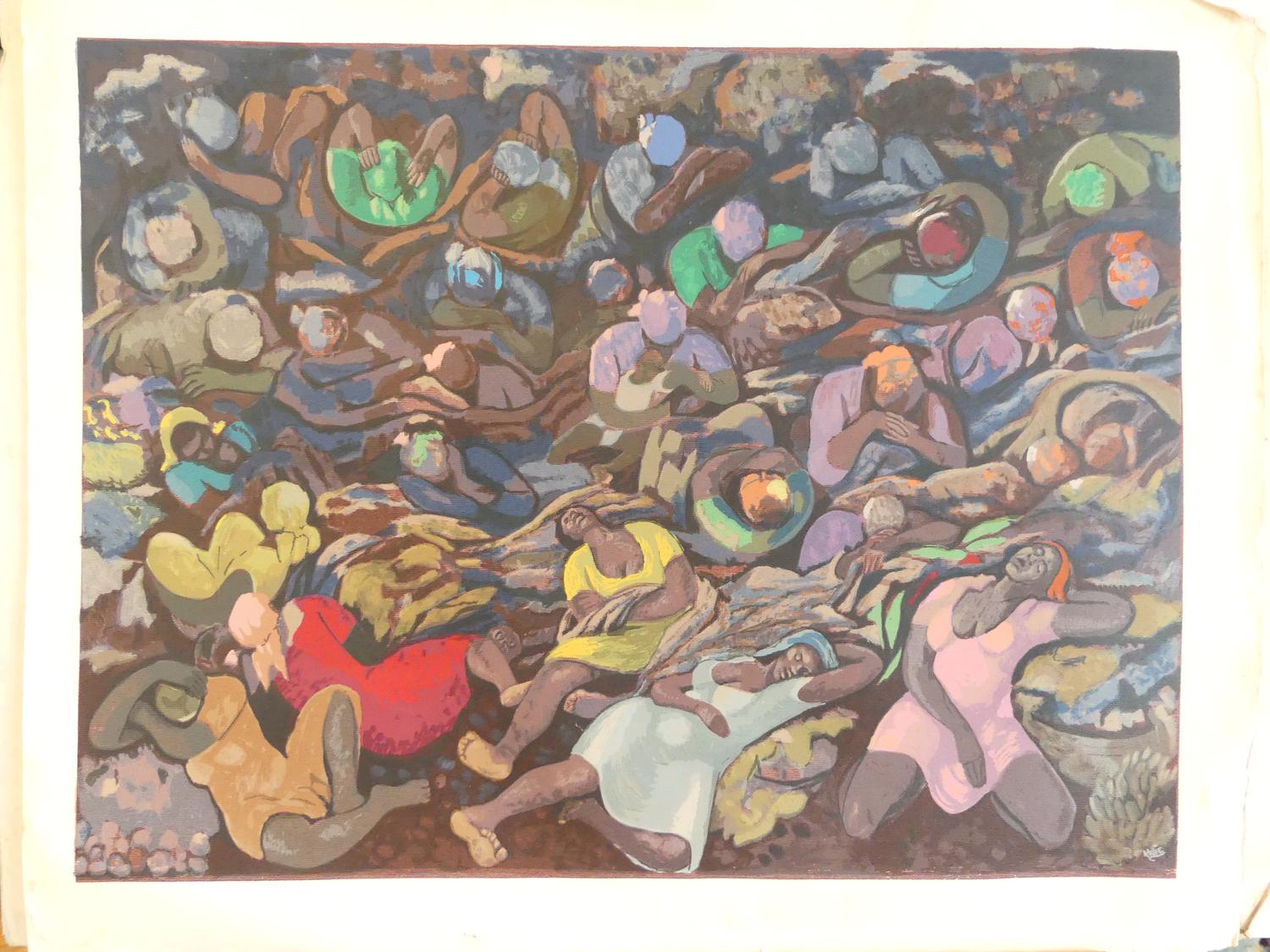 after albert huie (1920-2010), serigraph, 22" x 29", "the wake"