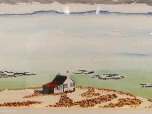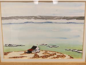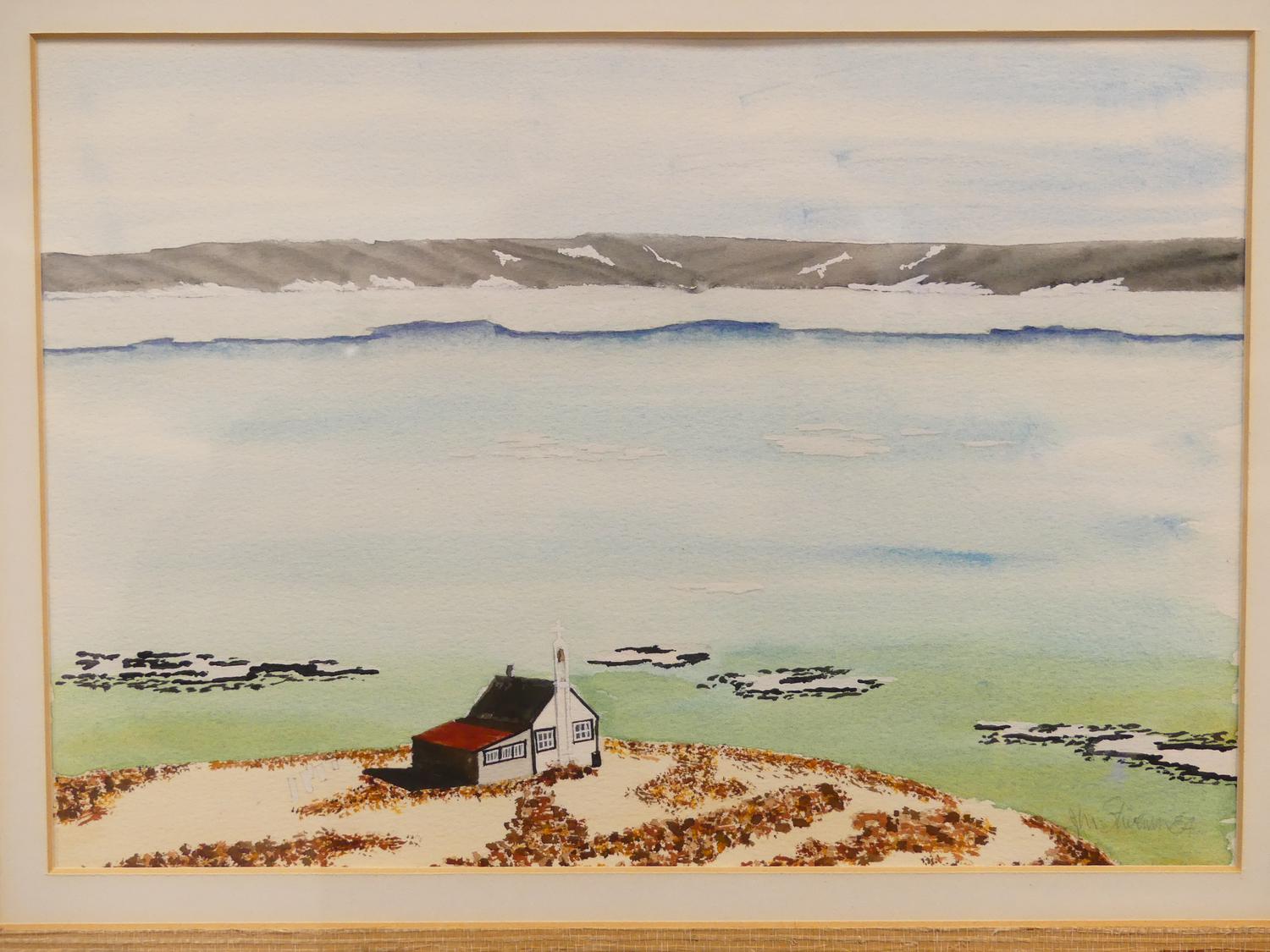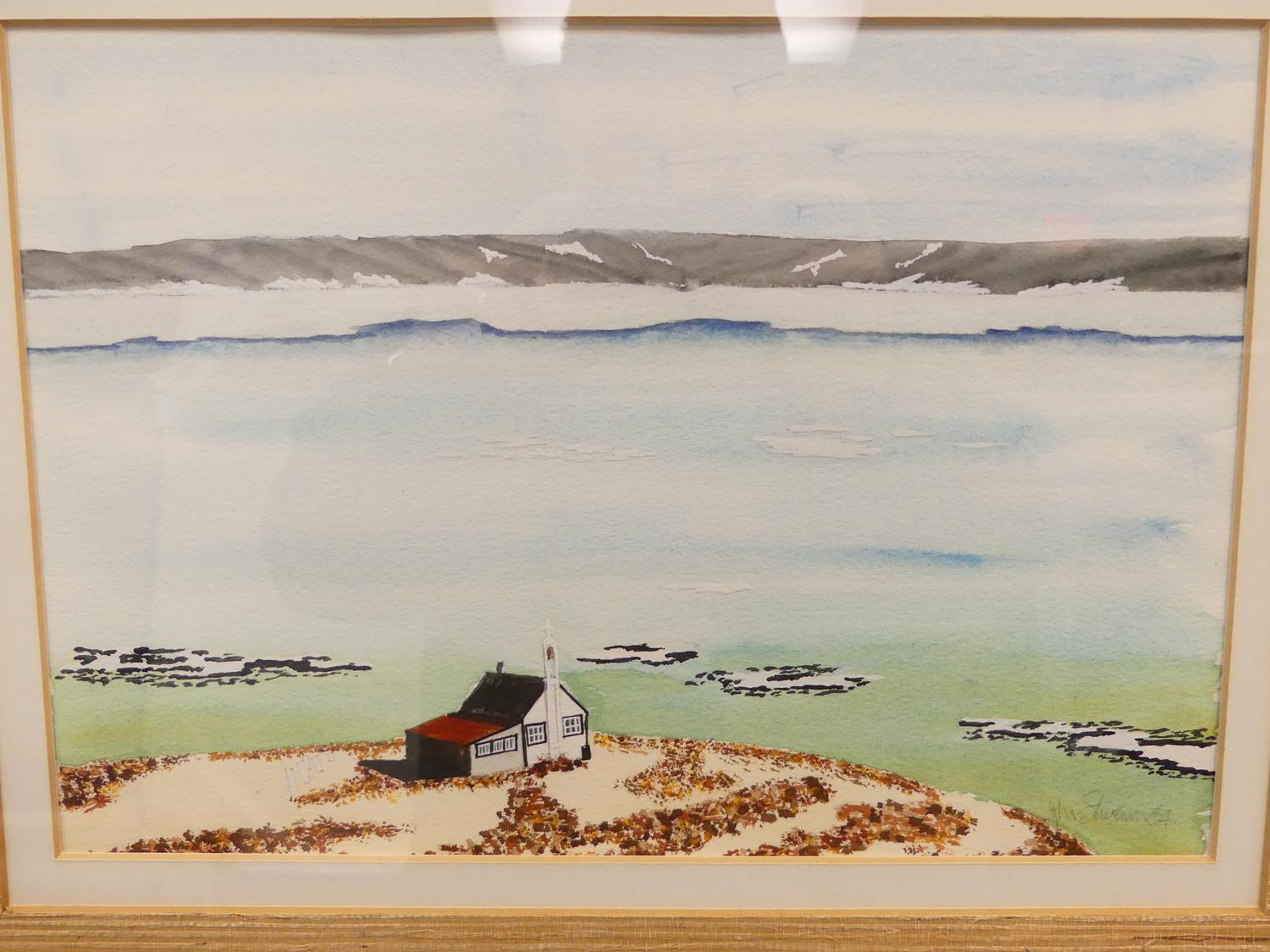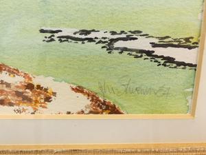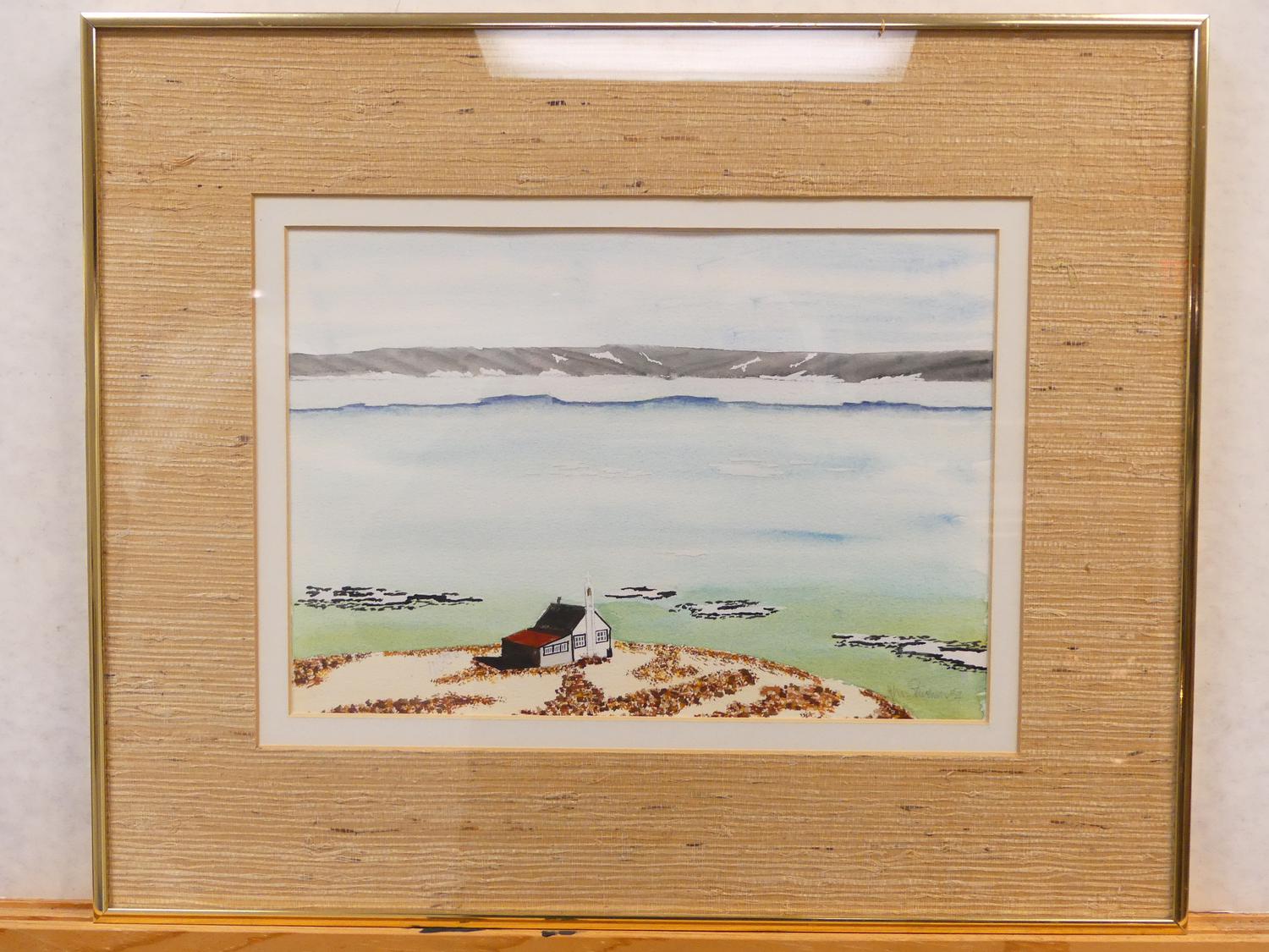 j. m. stevenson, dated 1984, watercolour, 8 1/2" x 12", "shore landscape"