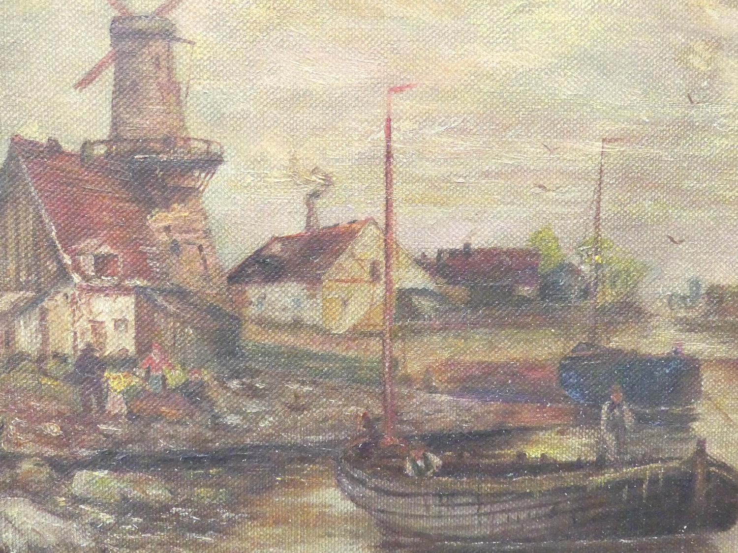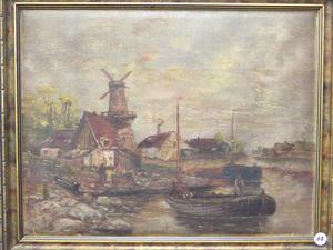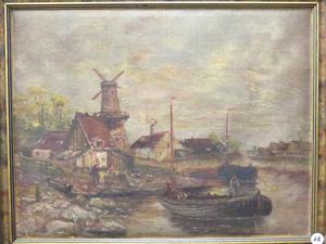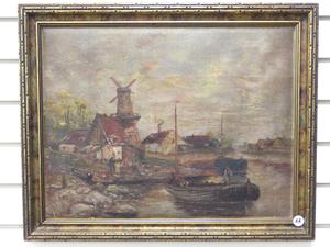 early 20th century english school, oil on board, 13 1/2" x 17 1/2", "landscape with windmills"