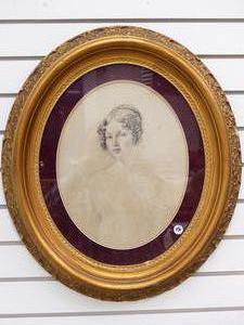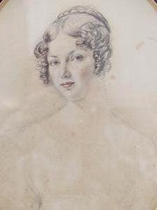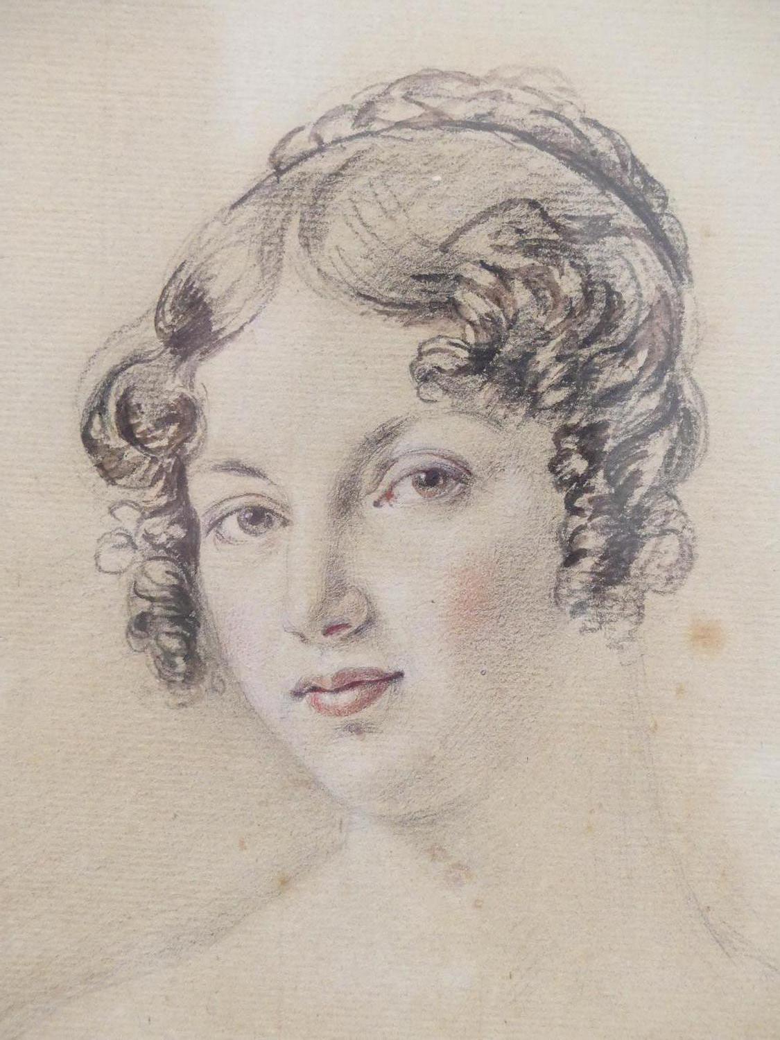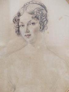 19th century hand coloured drawing, 13" x 10", "young beauty"