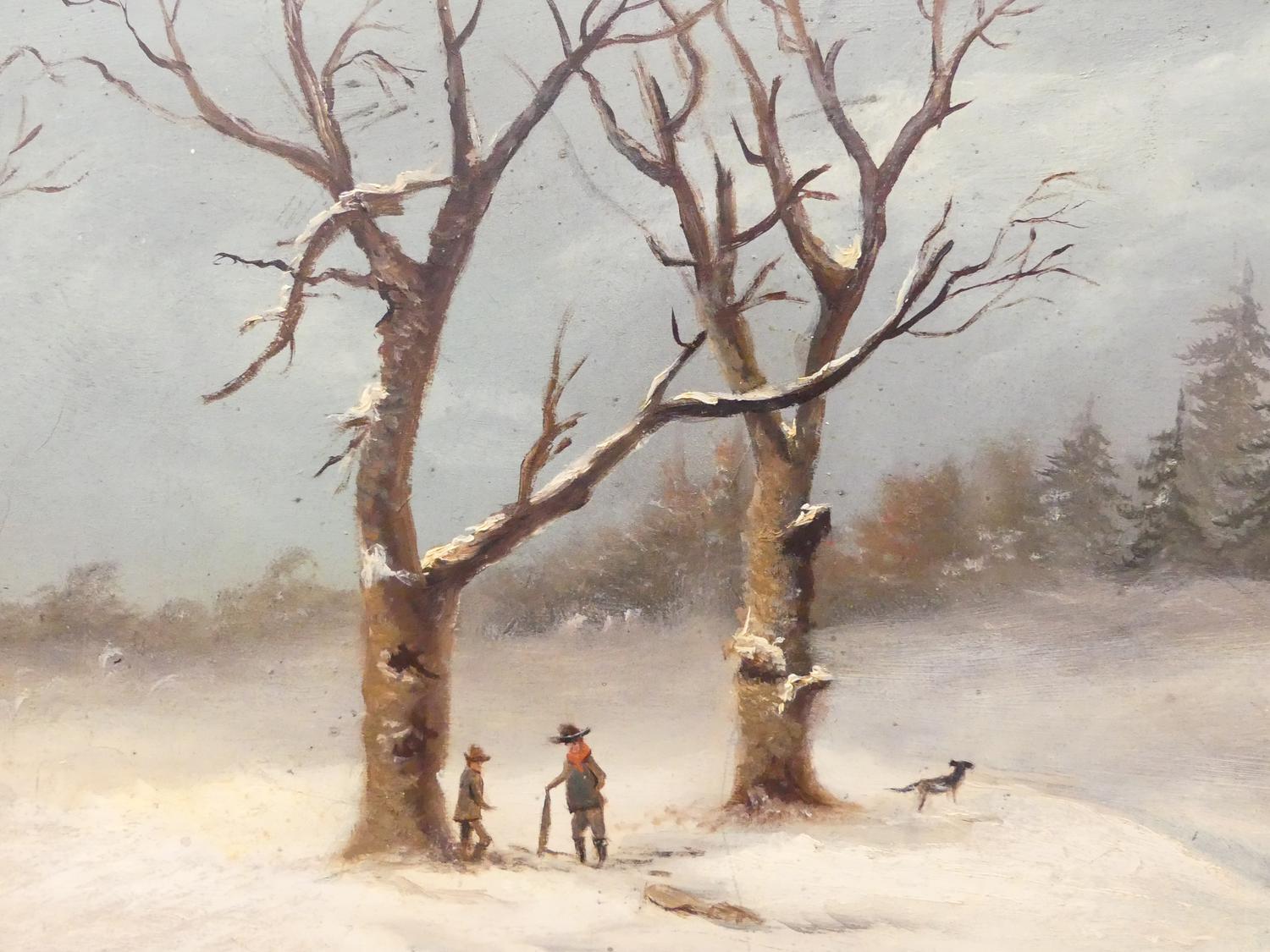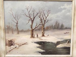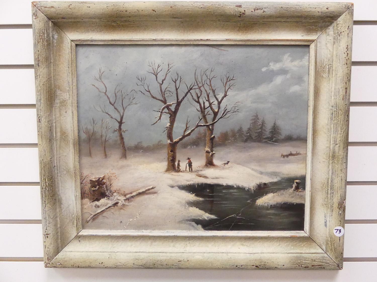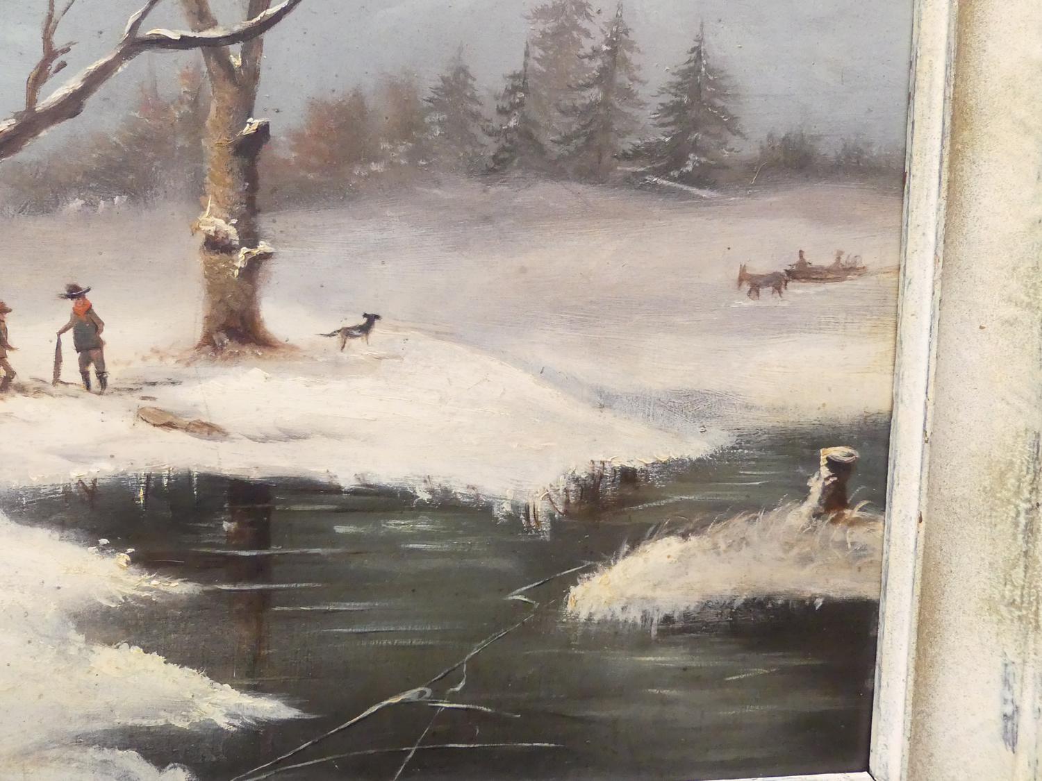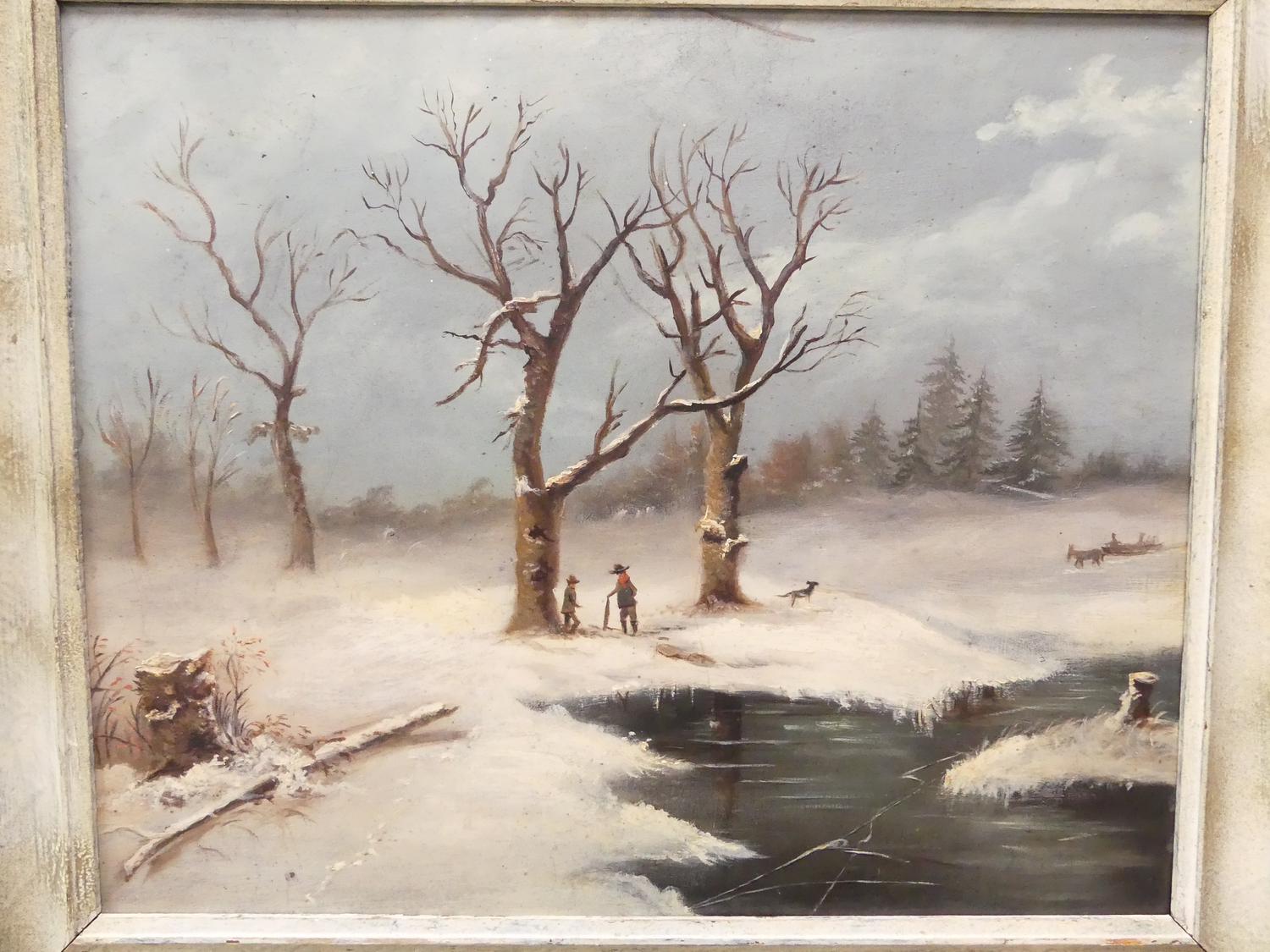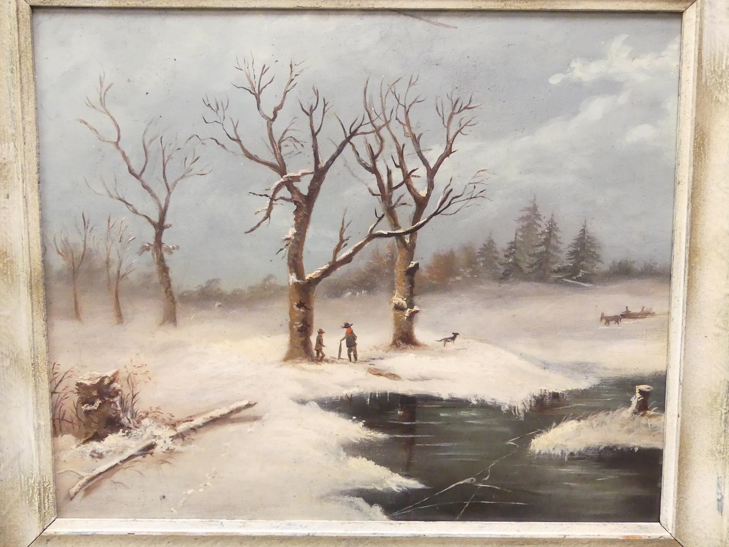 early 20th century dutch school, oil on borad, 14" x 19", "winter scene"