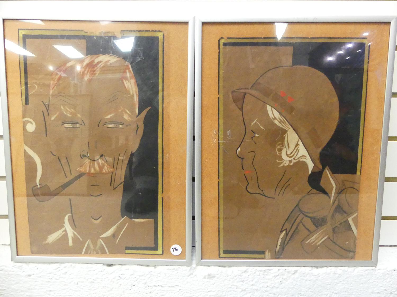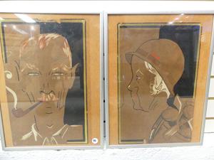 pair of art deco portraits, 15" x 10"