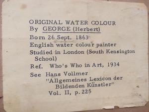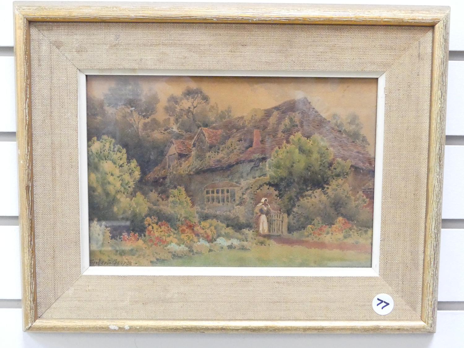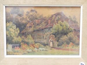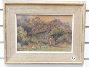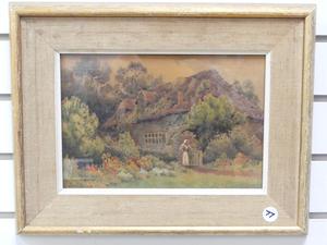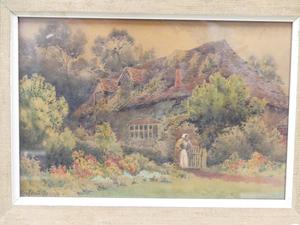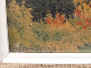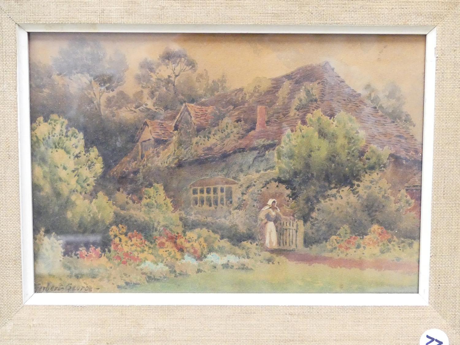 herbert george, watercolour, 6 1/2" x 10", "english cottage scene"