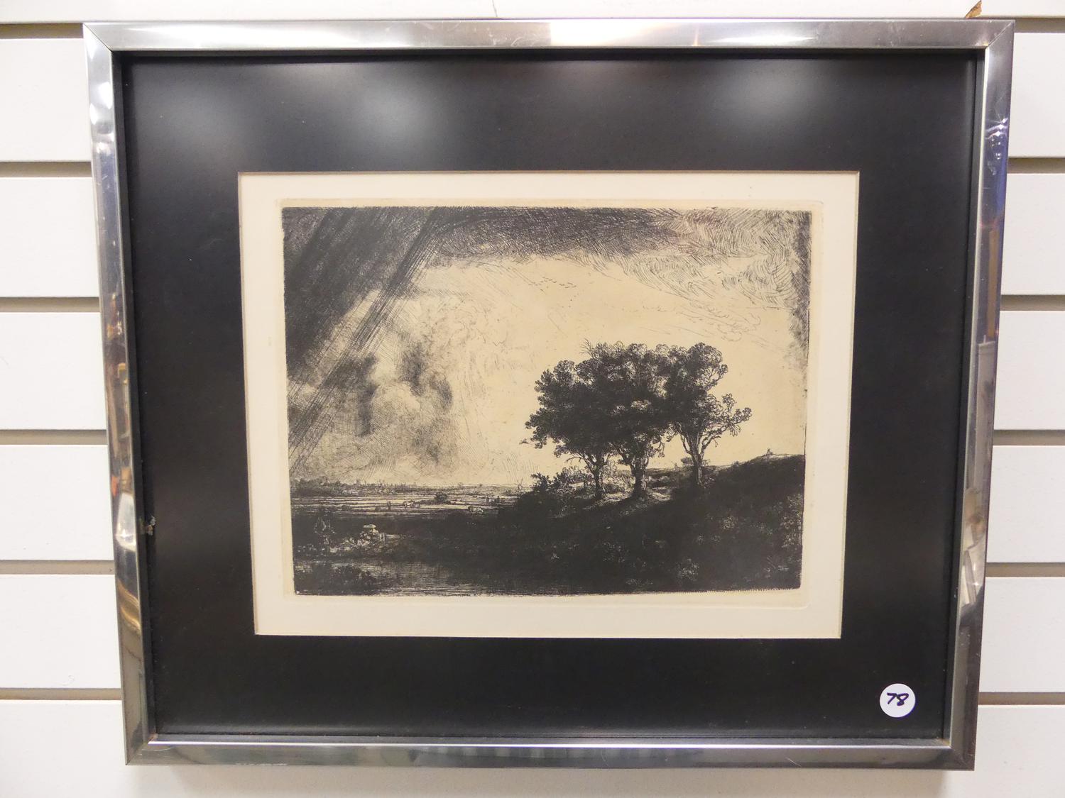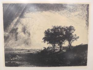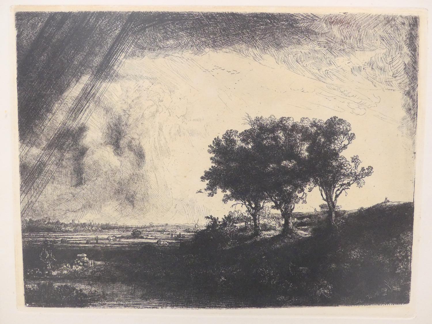 after rembrandt, etching, 9" x 11", "the three trees"