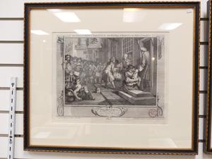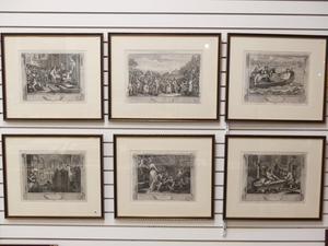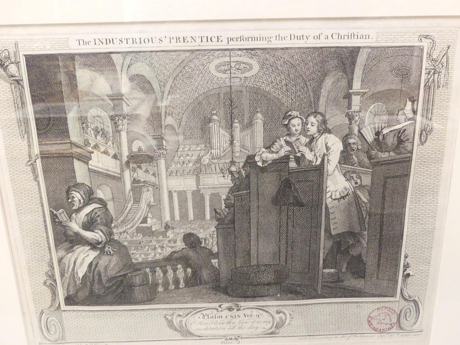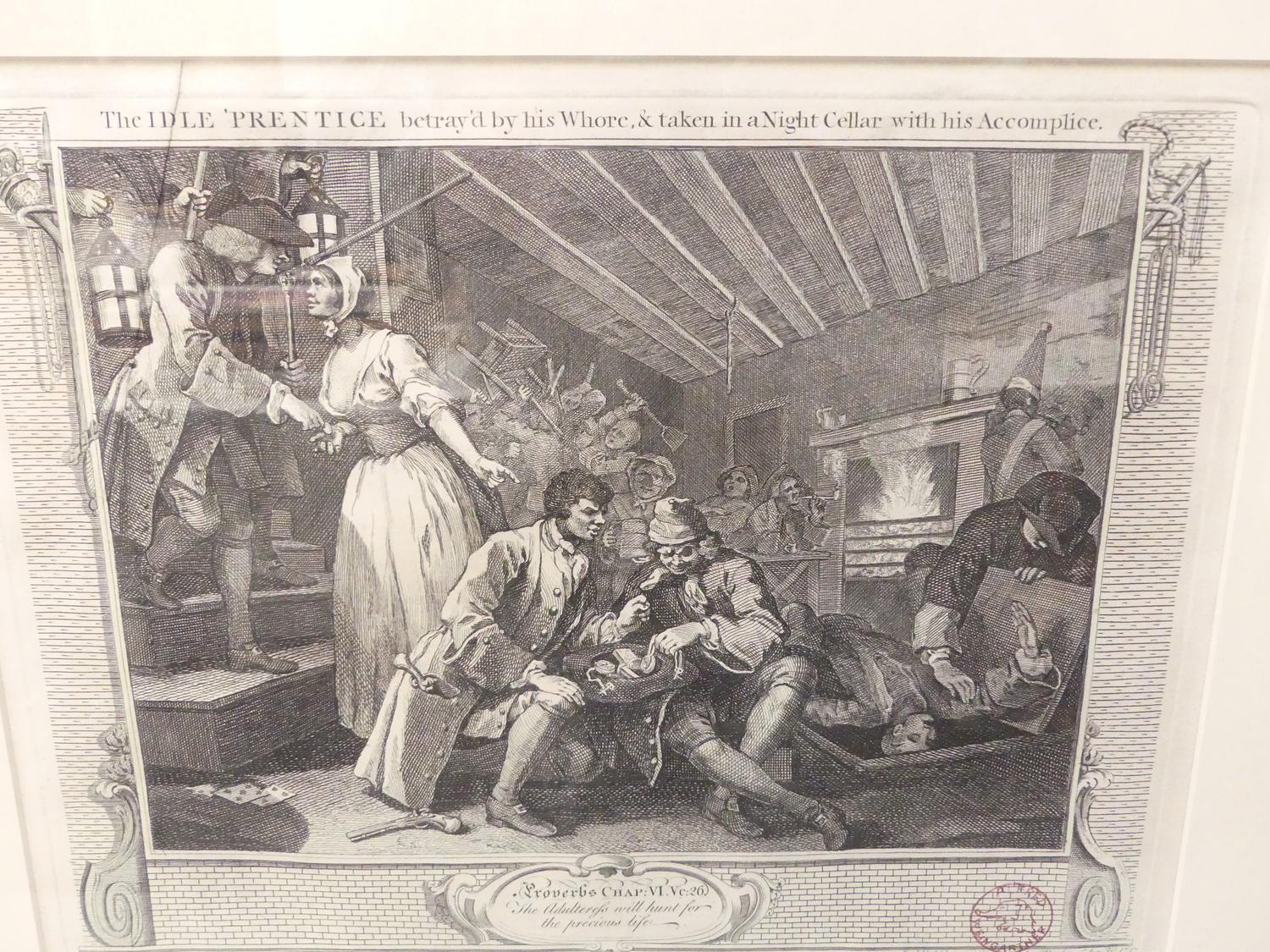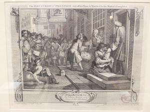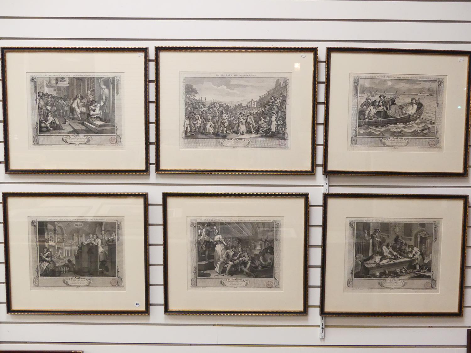 william hogarth, set of six engravings from the industry and idleness series, 11" x 16"