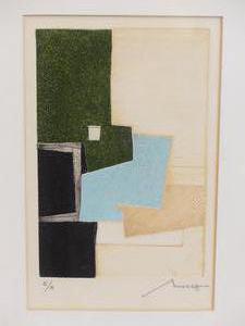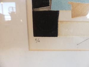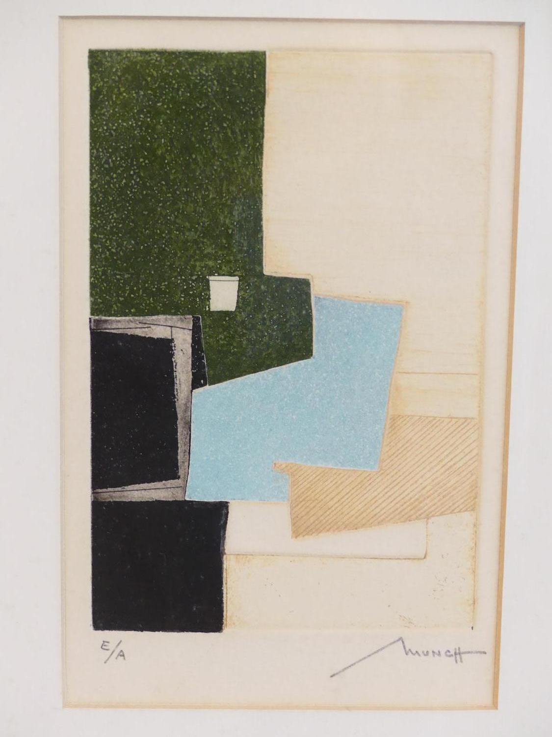 bernard munch (1921-2009), edition proof engraving in colours, 5 3/4" x 3 3/4", "untitled - abstract forms"