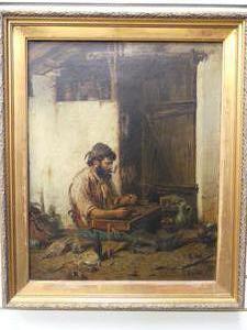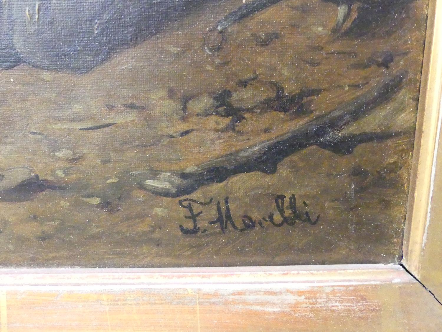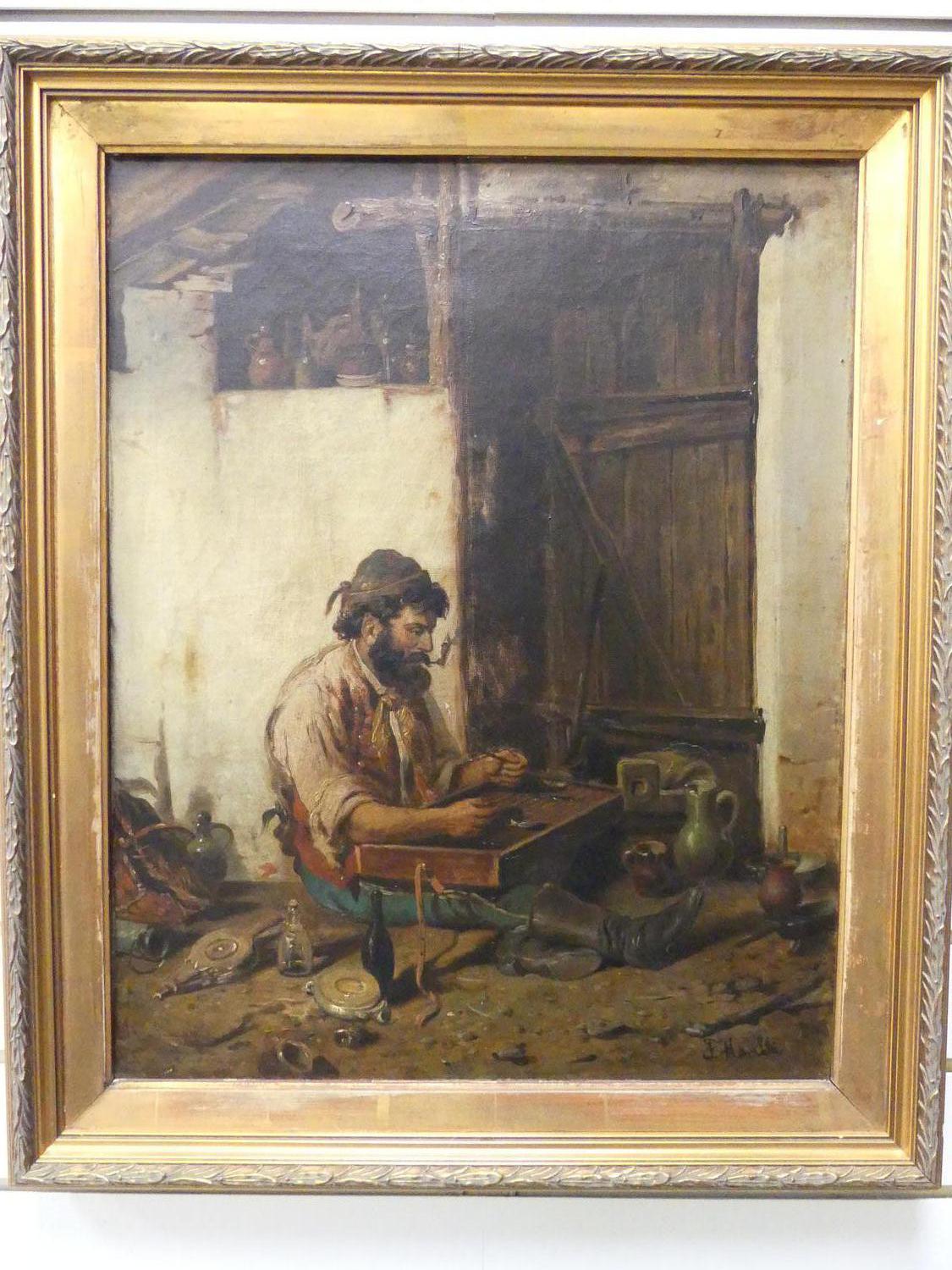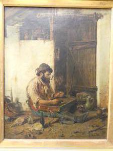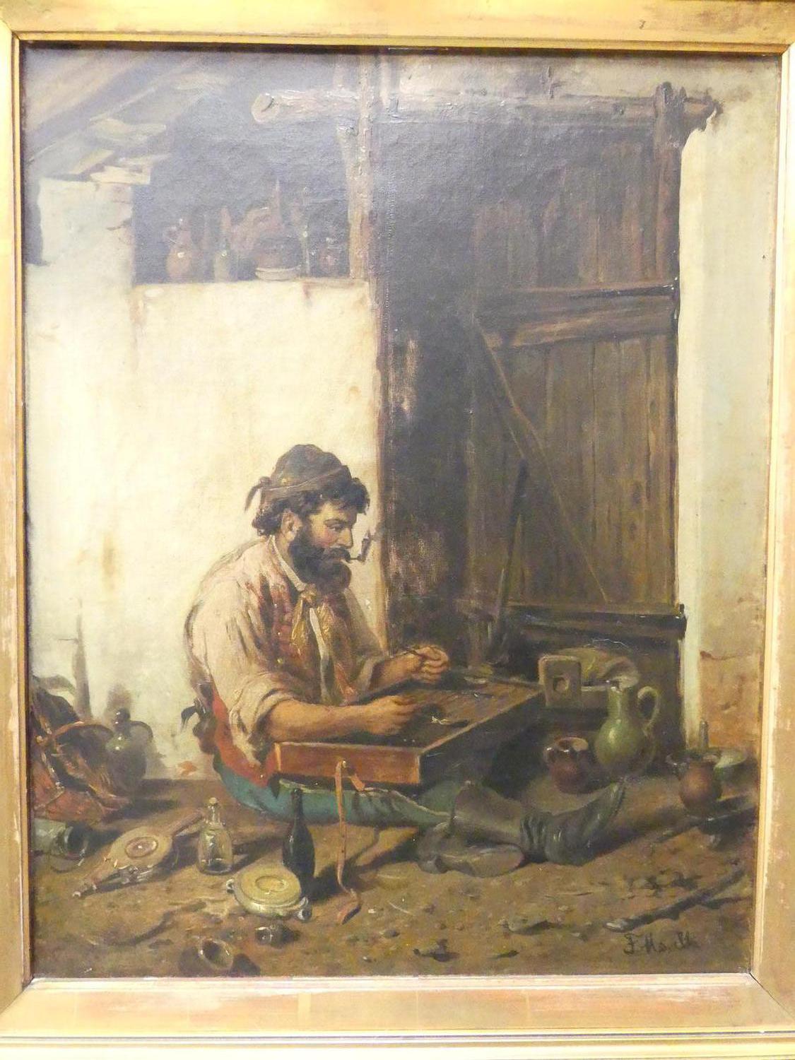 f. morbli, oilette on canvas, 21" x 16", "interior scene"