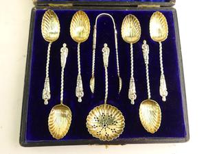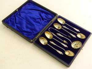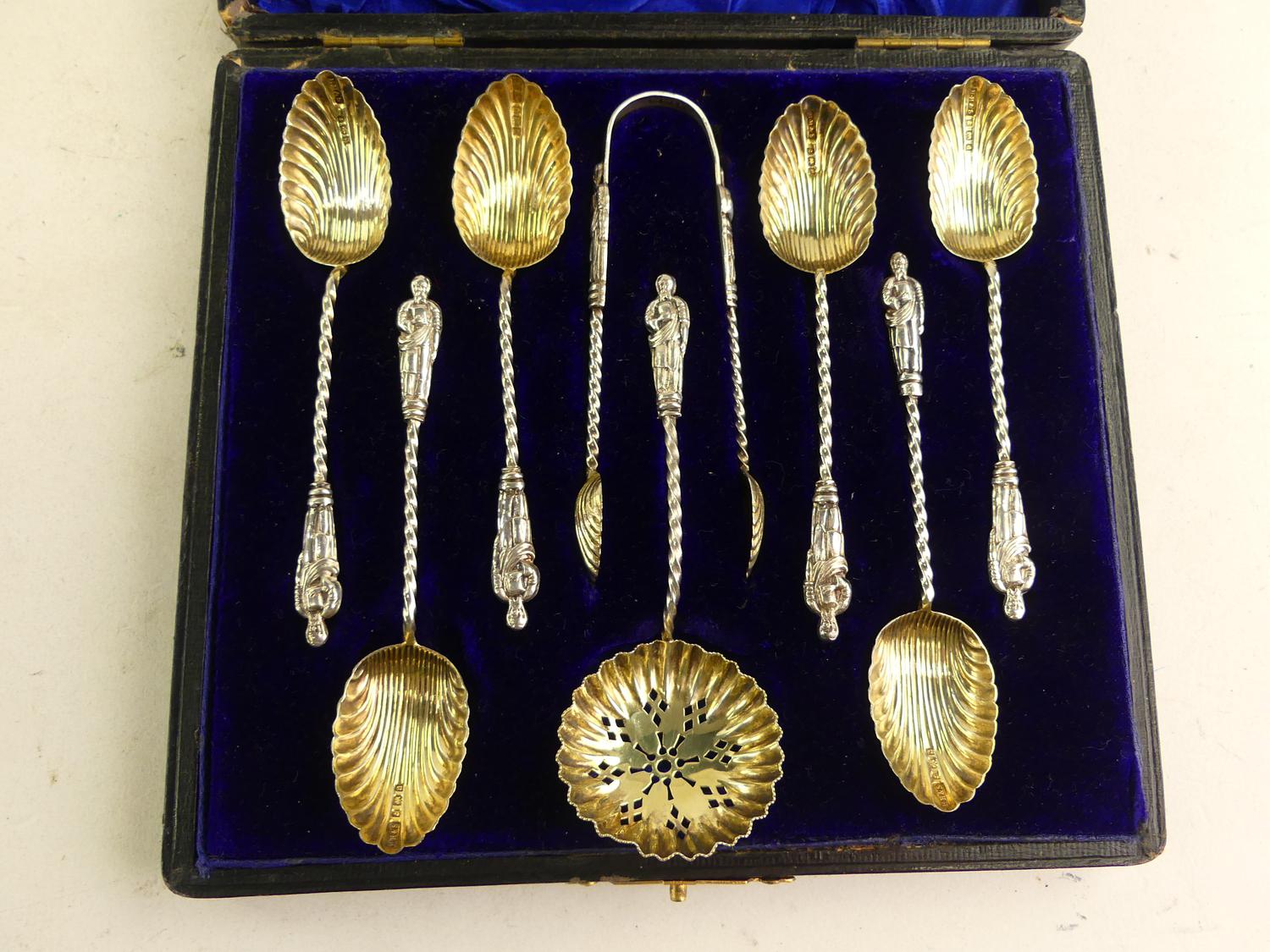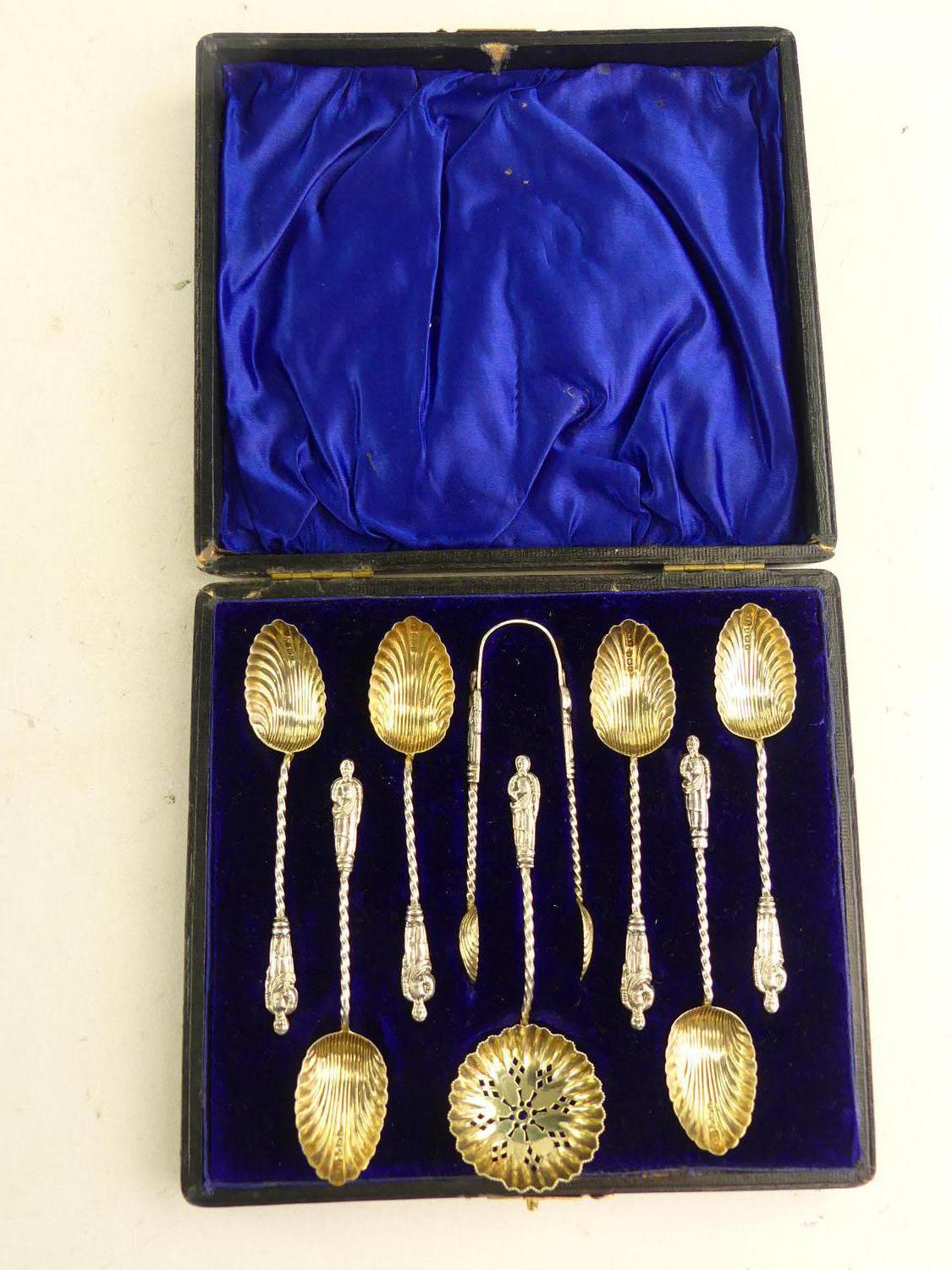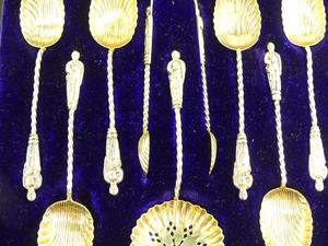 edwardian cased sterling silver "apostle" teaspoon set, henry hobson & sons, birmingham 1903, 58 grams