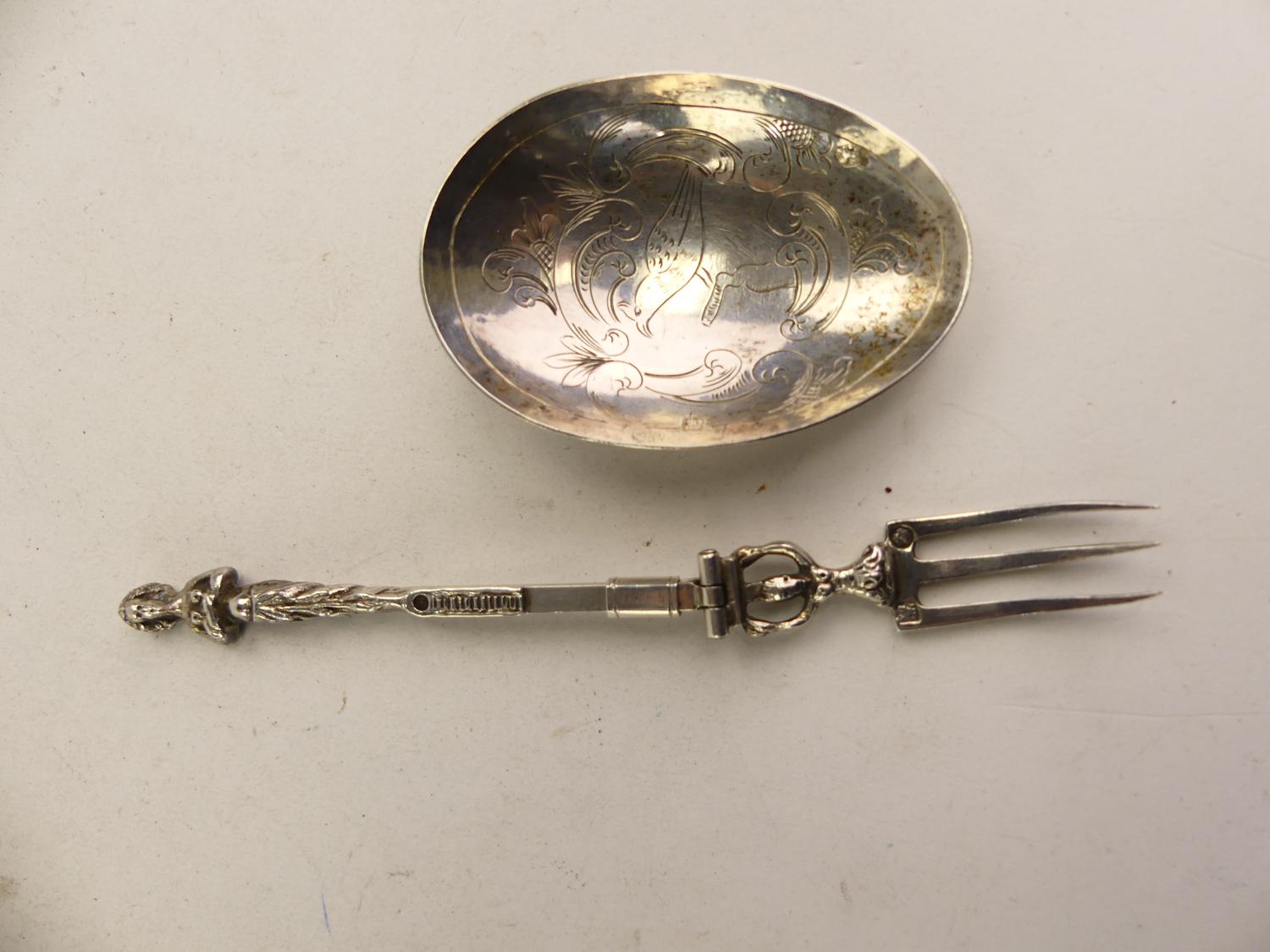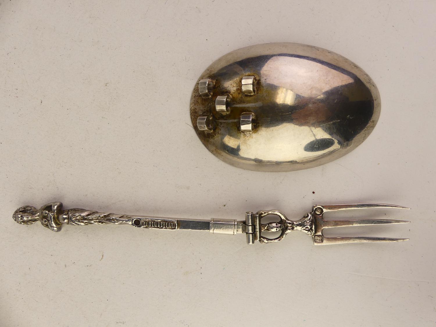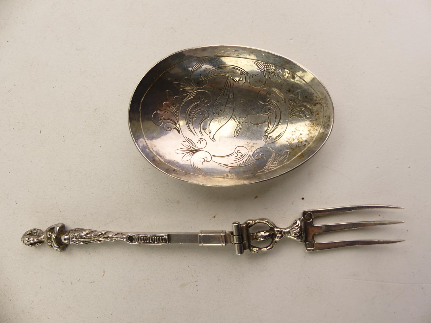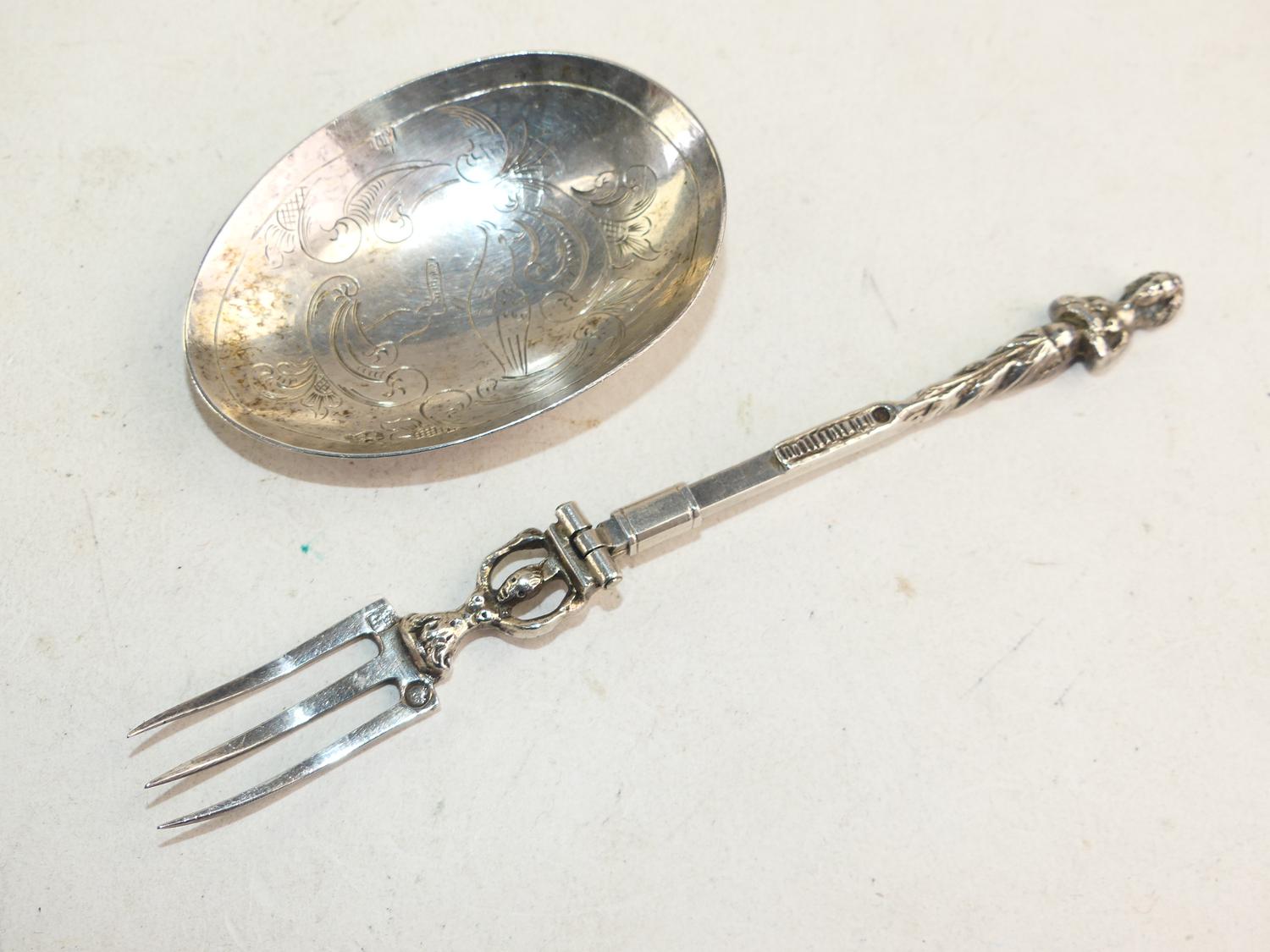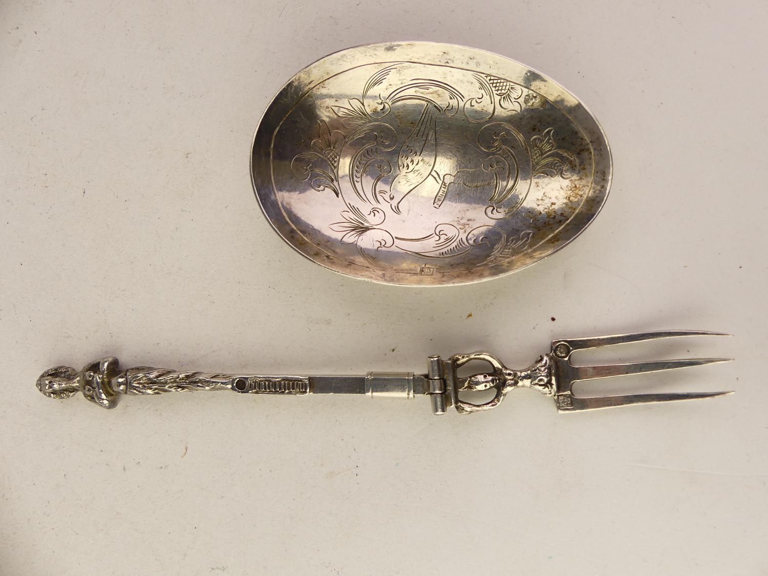 19th century dutch export silver metamorphic spoon fork, length 7"