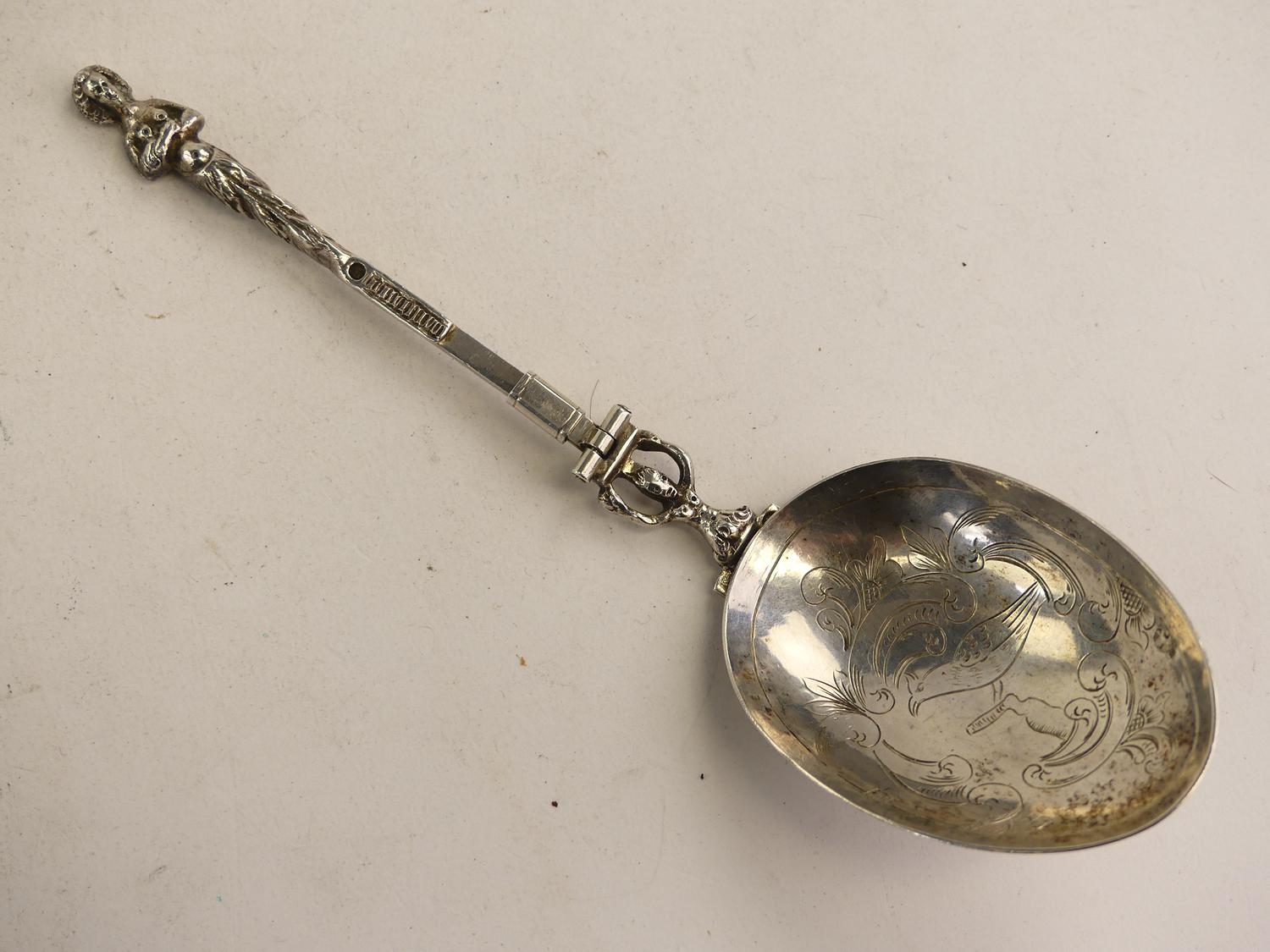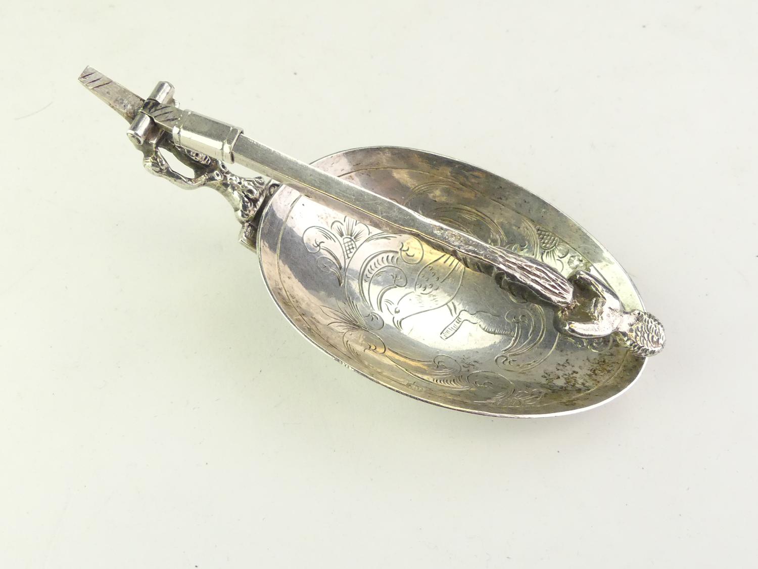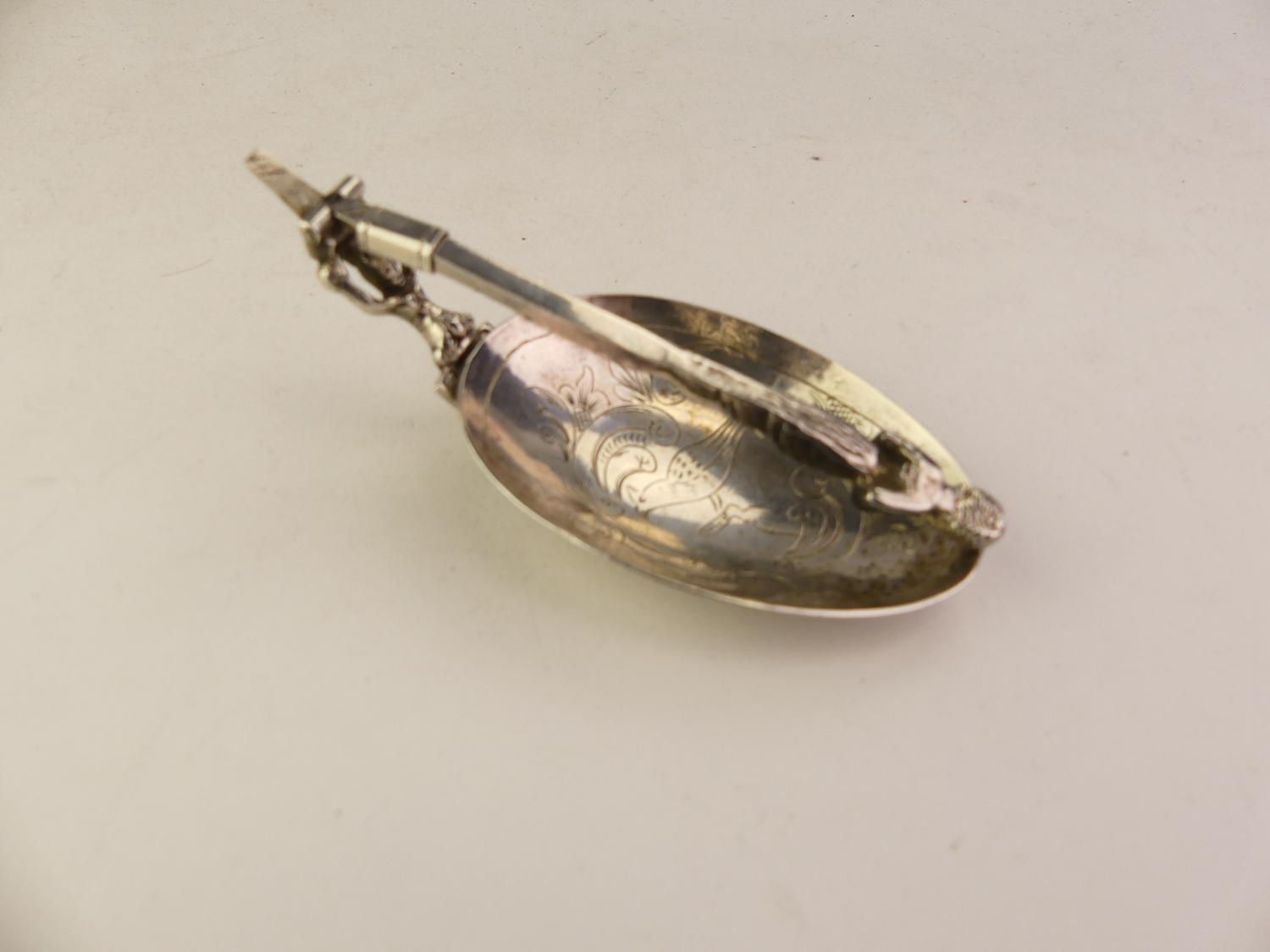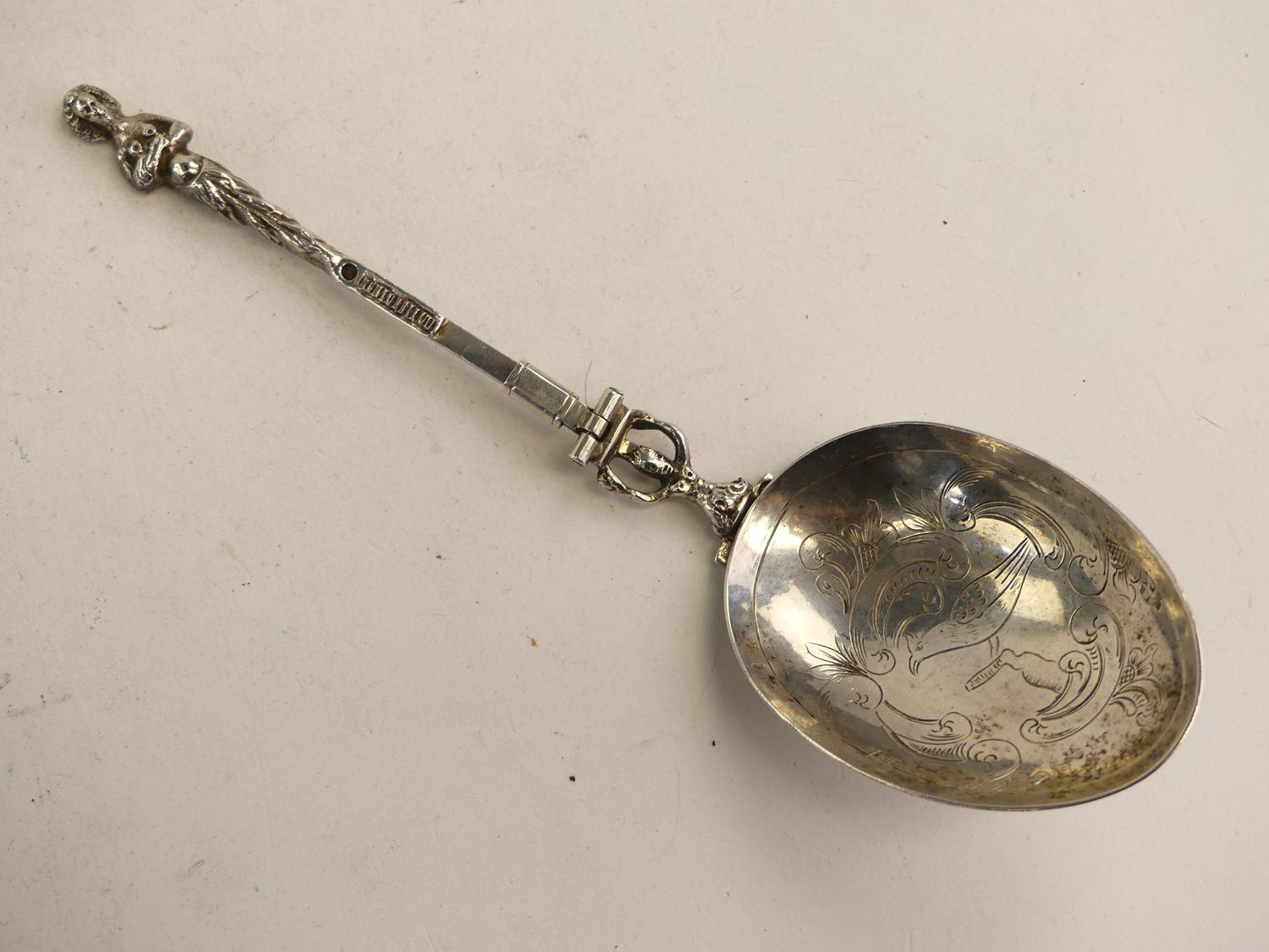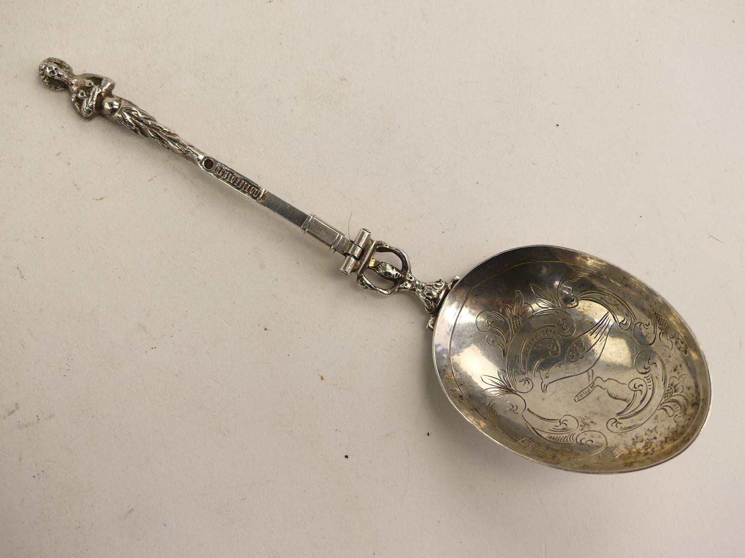 19th century dutch export silver metamorphic spoon fork, length 7"