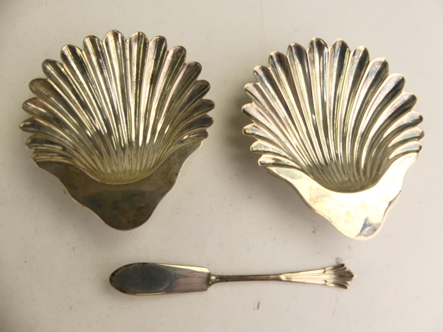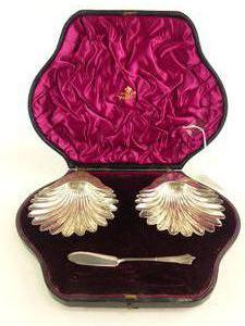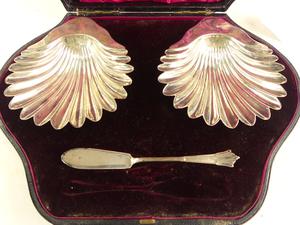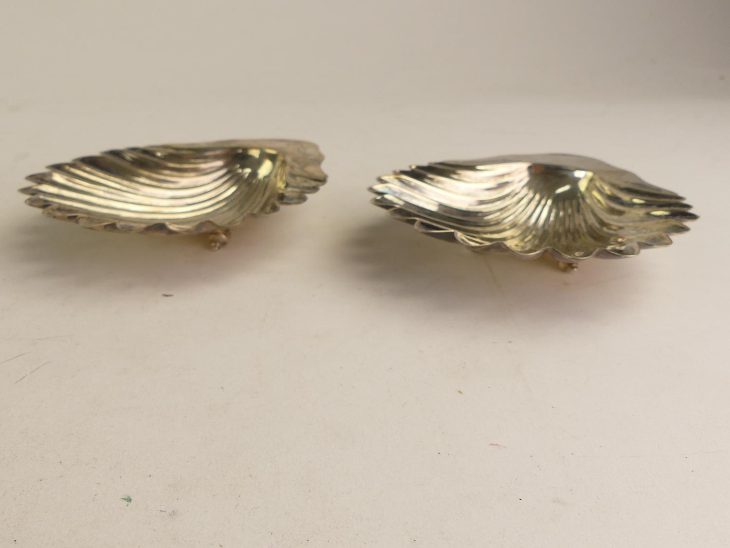 pair of victorian sterling silver shell-form dishes, henry wilkinson & co., london 1894, 5" x 4 1/4", 168 grams, in a fitted case