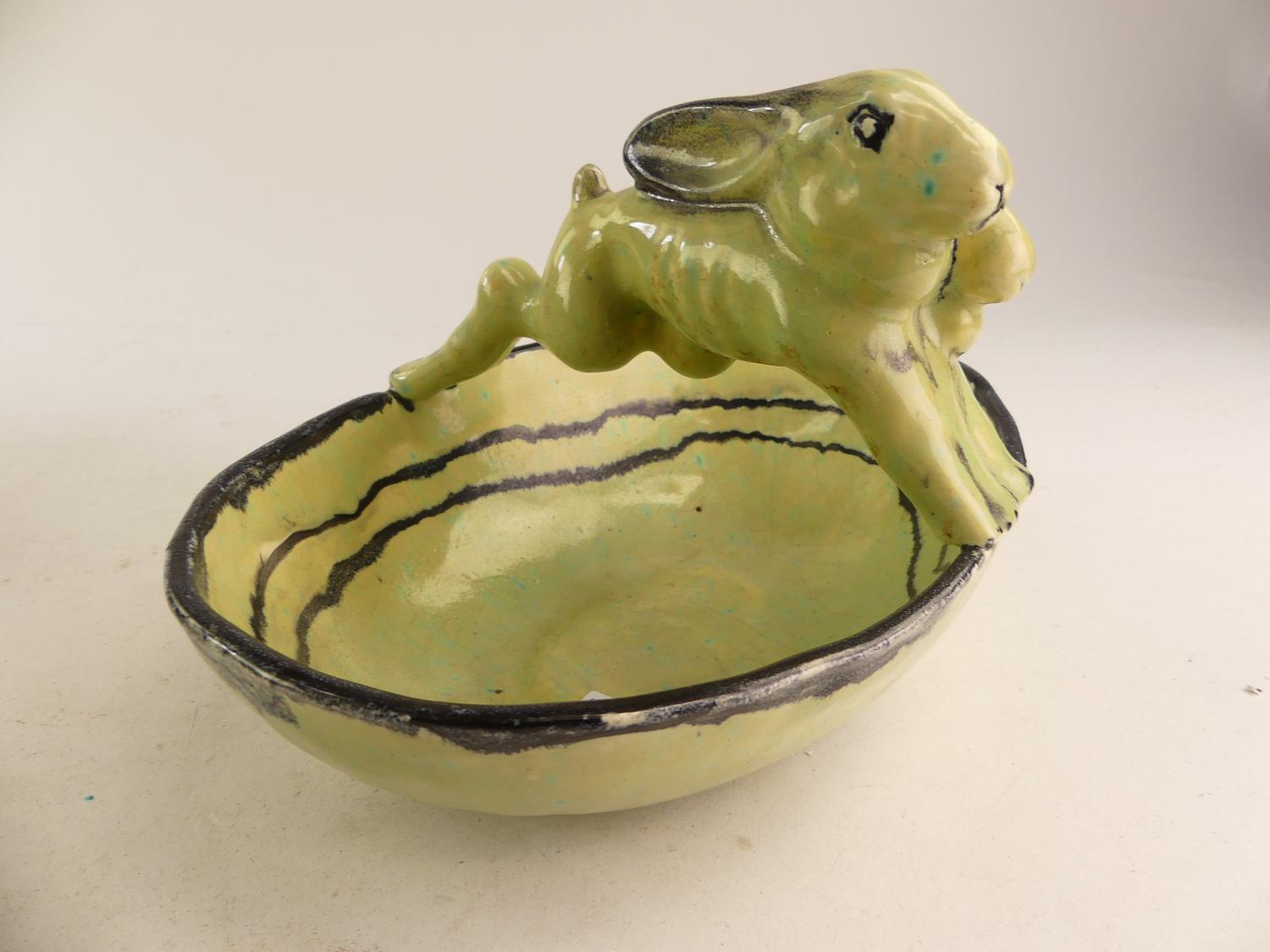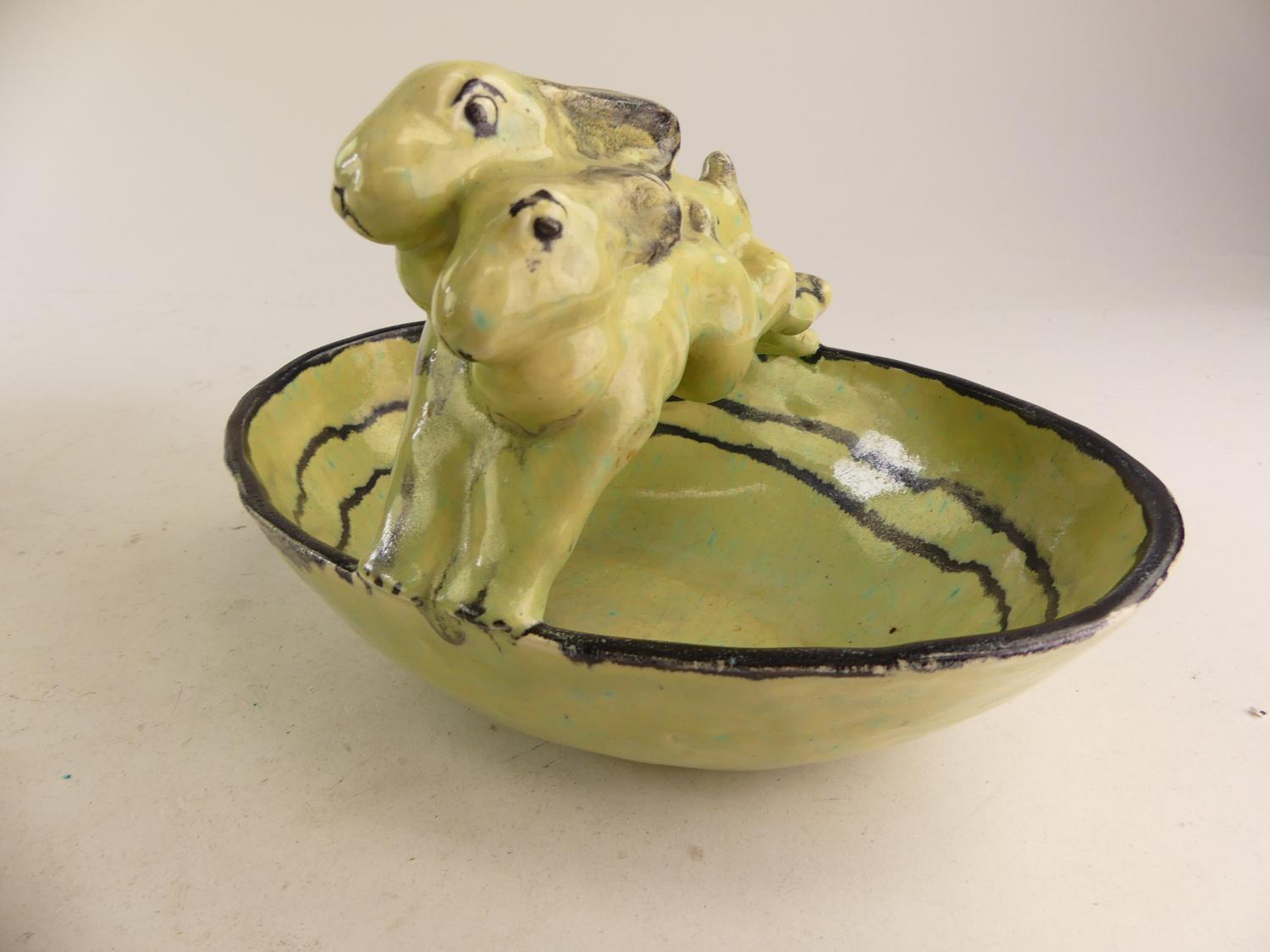 goldsheider austrian pottery bunny bowl, 7 1/2" x 11 1/2"x 8"