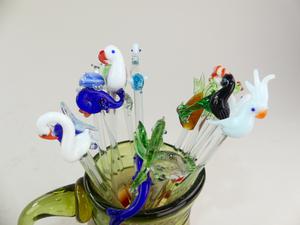 lot of art glass drink sticks, 9" in height