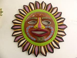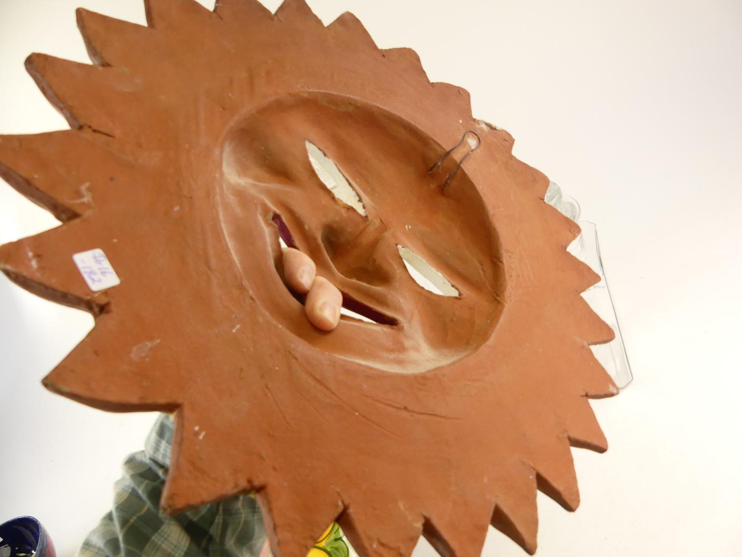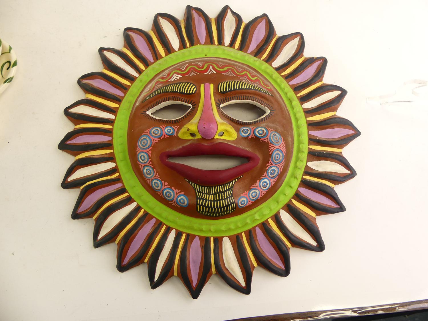 painted pottery sunburst mask, diameter 17"