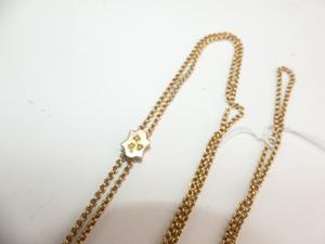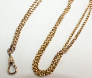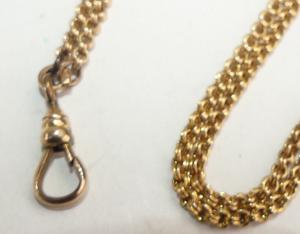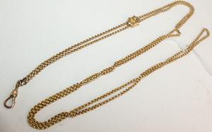 victorian ladies gold filled seed pearl slider watch chain, length 46"