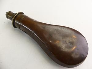 19th century copper brass powder flask, length 8"