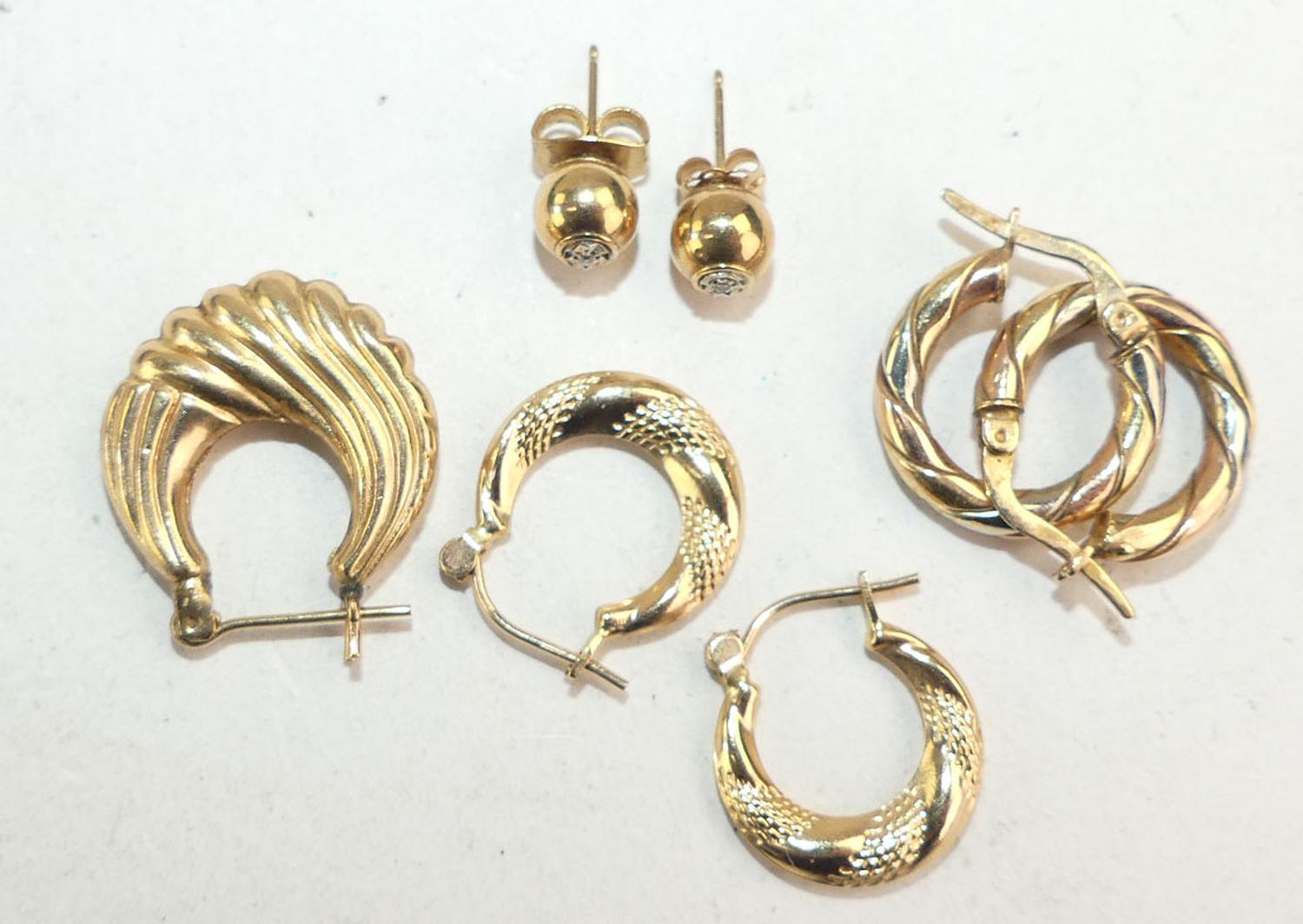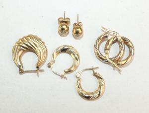 lot of 10k gold hoop earrings, single, weighing approx 4.4 grams