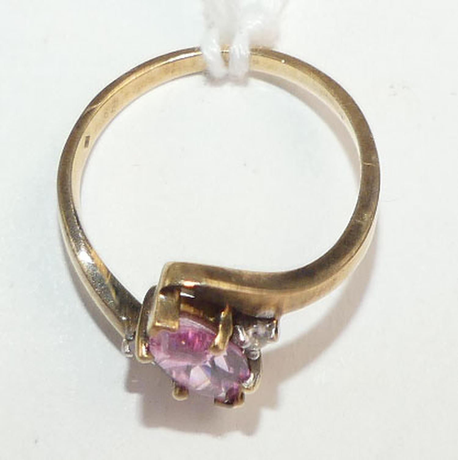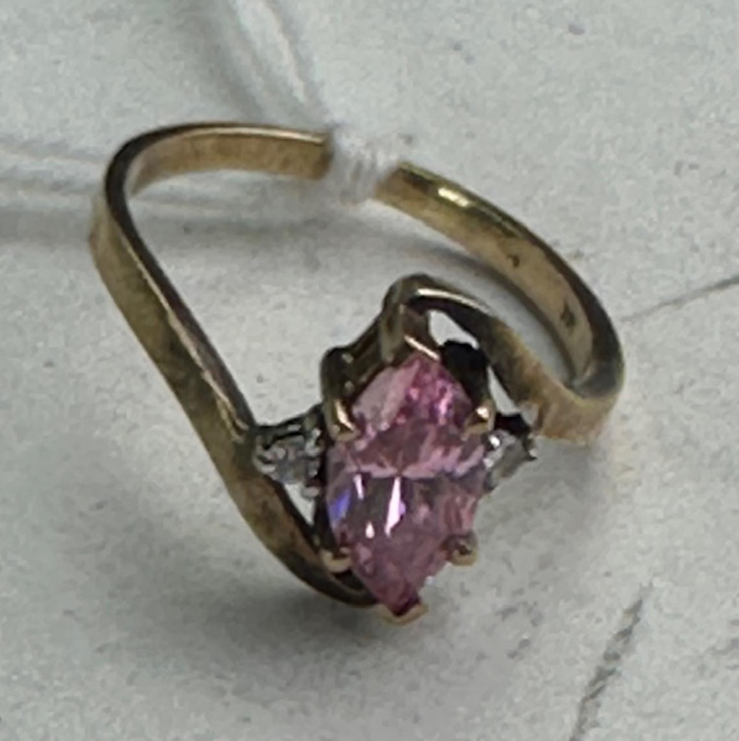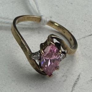 10k yellow gold pink crystal ring, size 6 1/4, w/a 2.3 grams