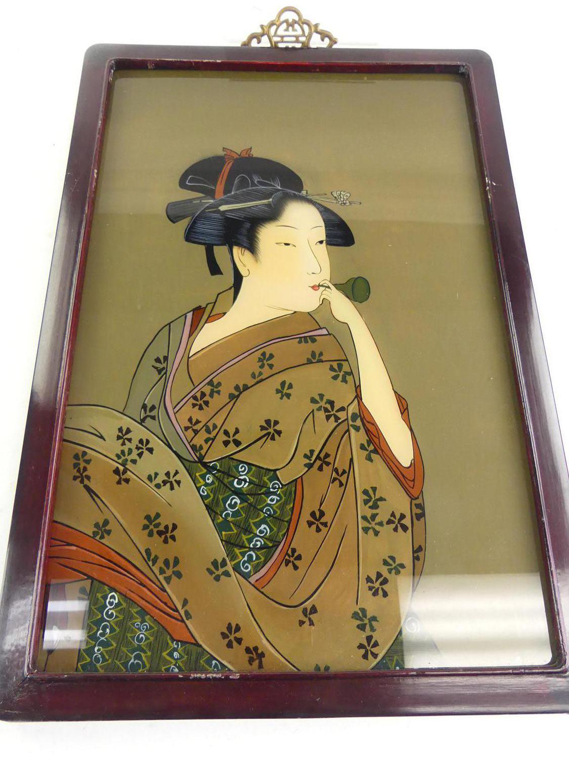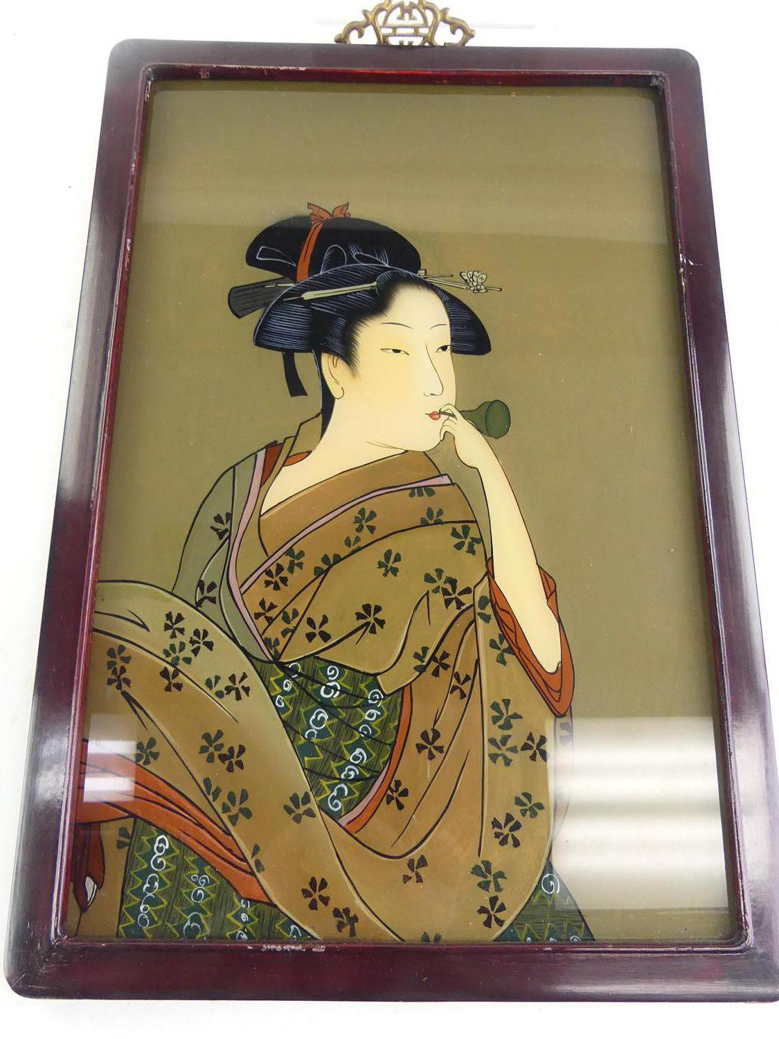 japanese reverse painting on glass