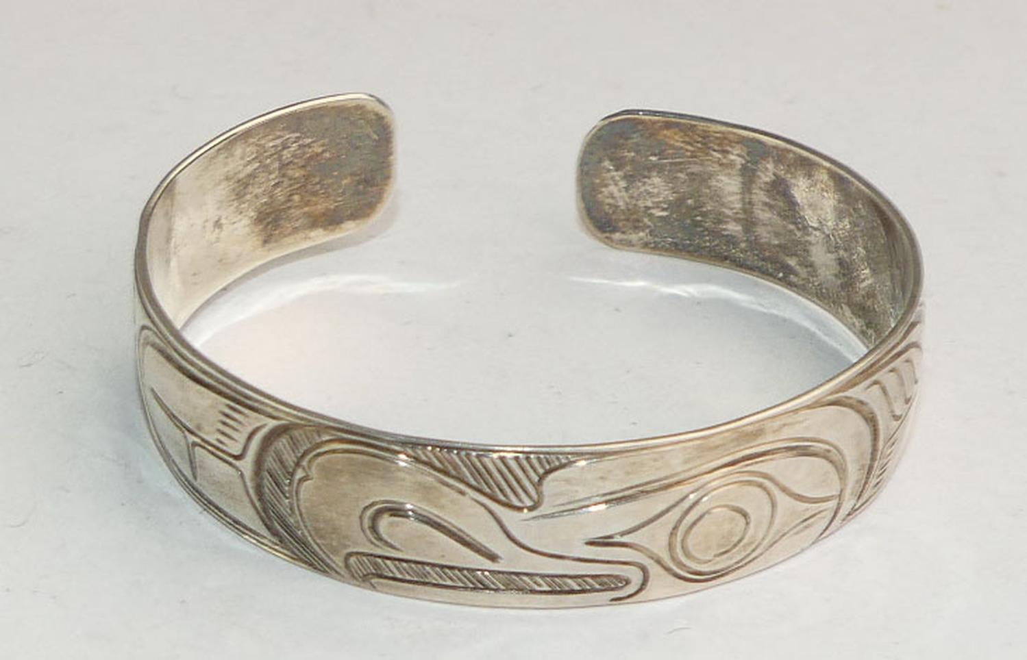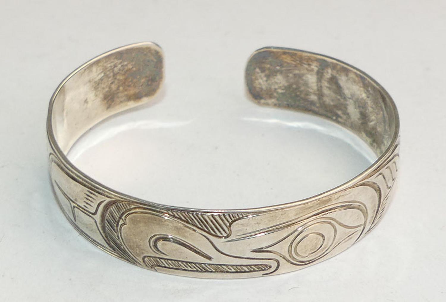 northwest coast native sterling cuff bracelet signed pas