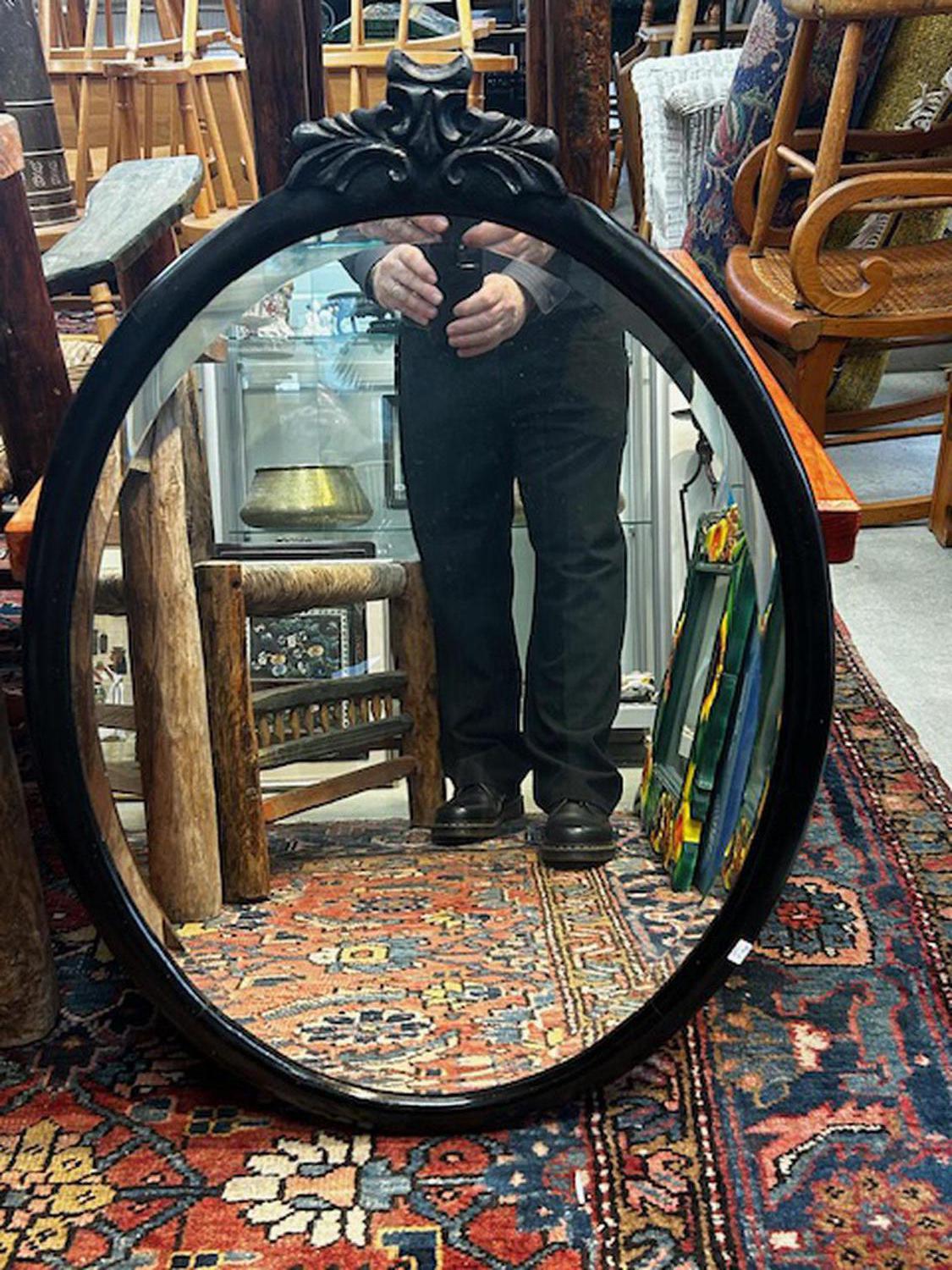 antqiue oval framed bevelled mirror, 33" x 24"