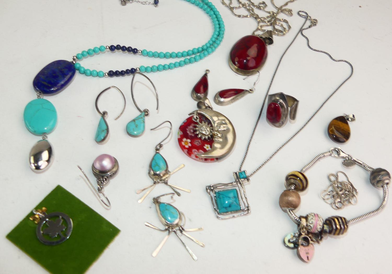 lot of silver jewelery with gemstones, weighing approx 142 grams