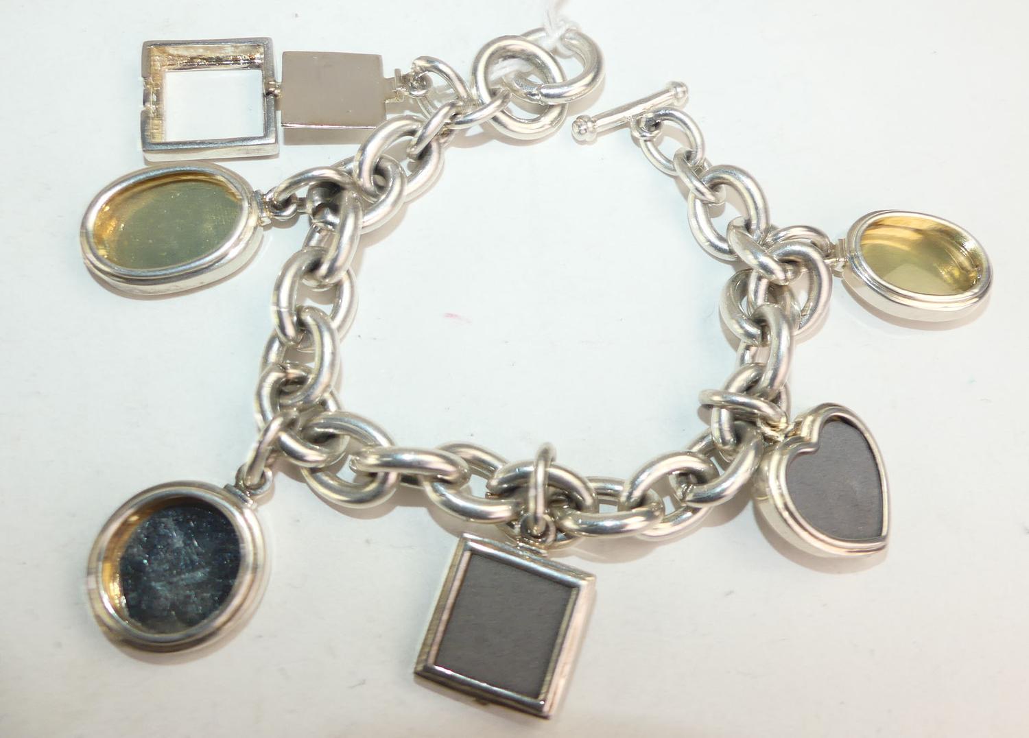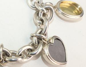 sterling silver locket charm bracelet, length 7", weighing approx 74.6 grams