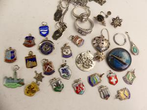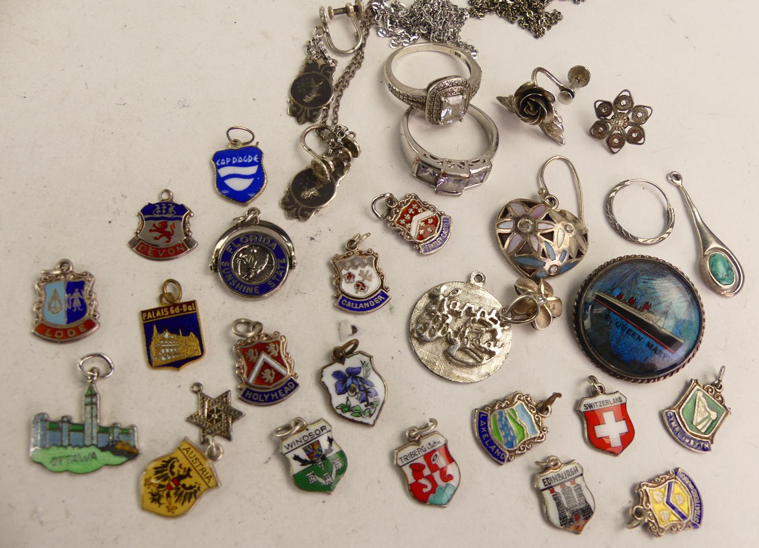 lot of sterling silver charms, with enamel etc., weighing approx 64 grams