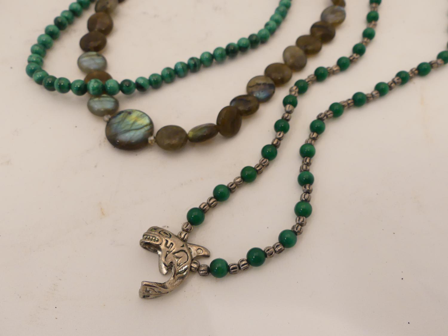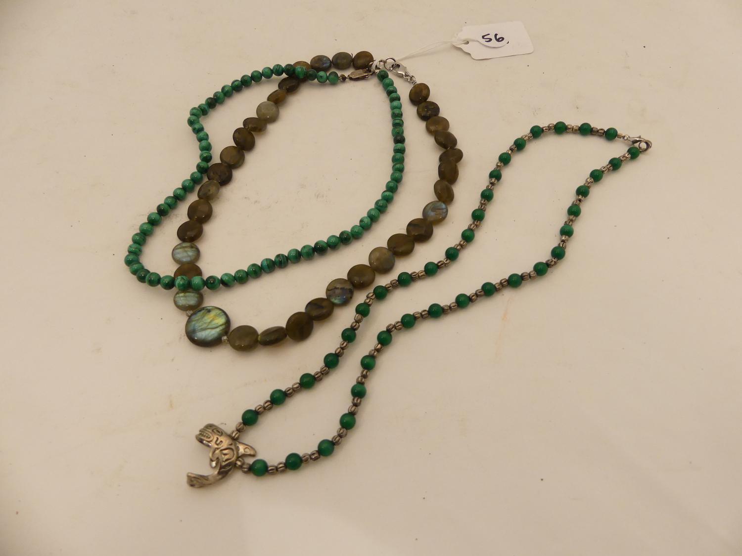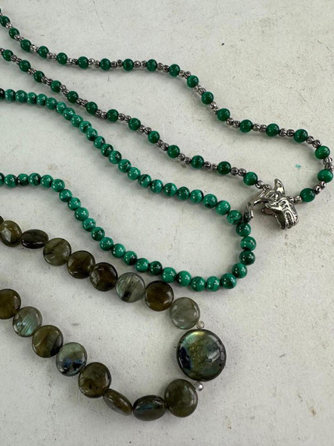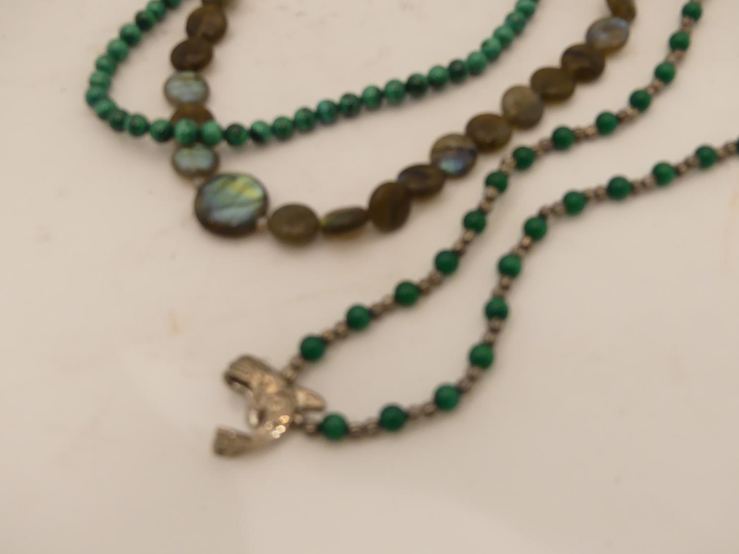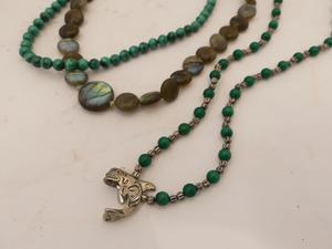 malachite and labradorite beaded necklaces, 17" , 16", with another