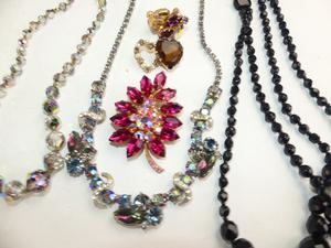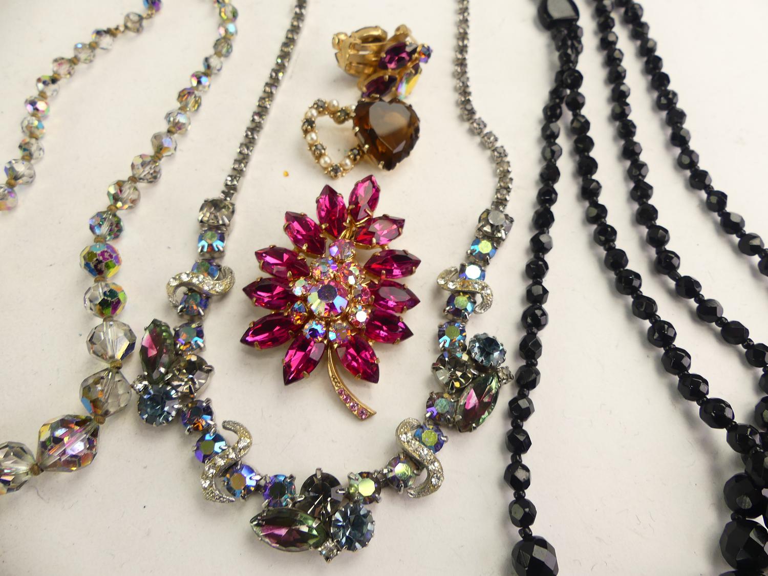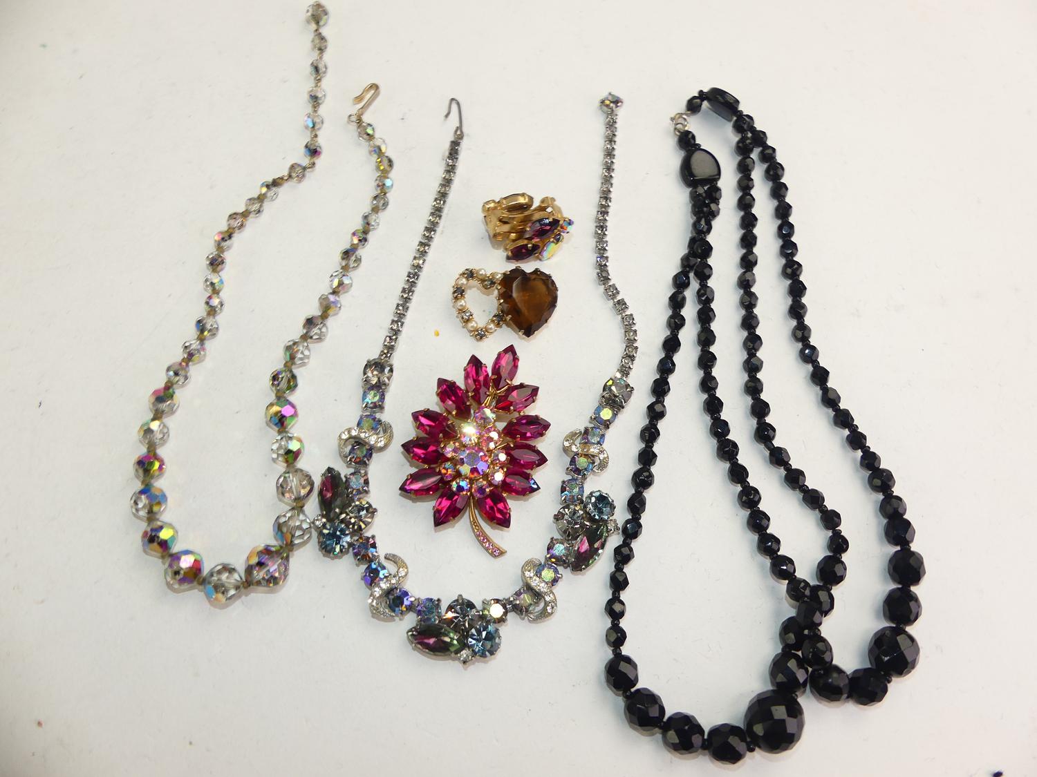 vintage french jet necklace with 1950s rhinestone items